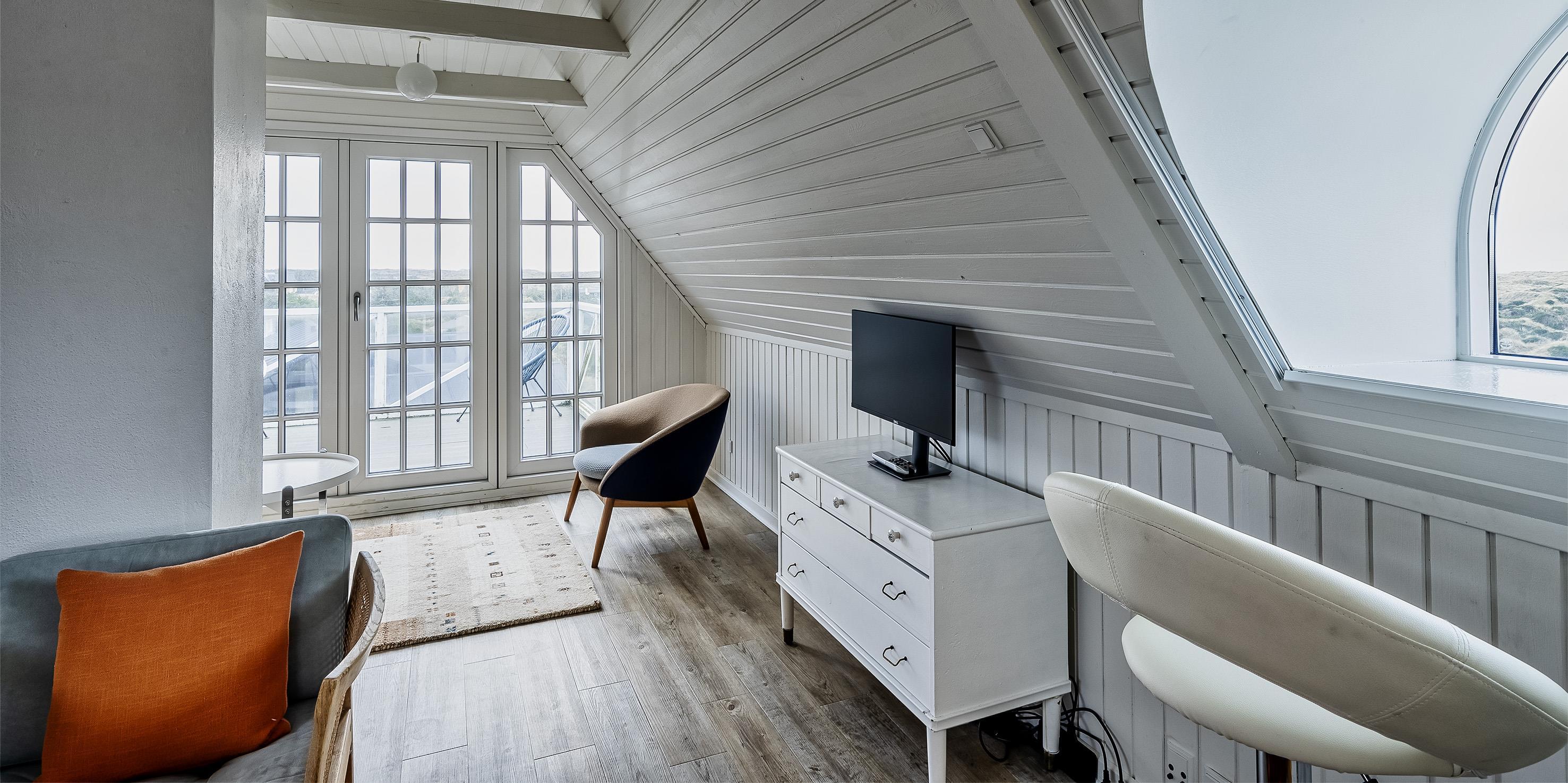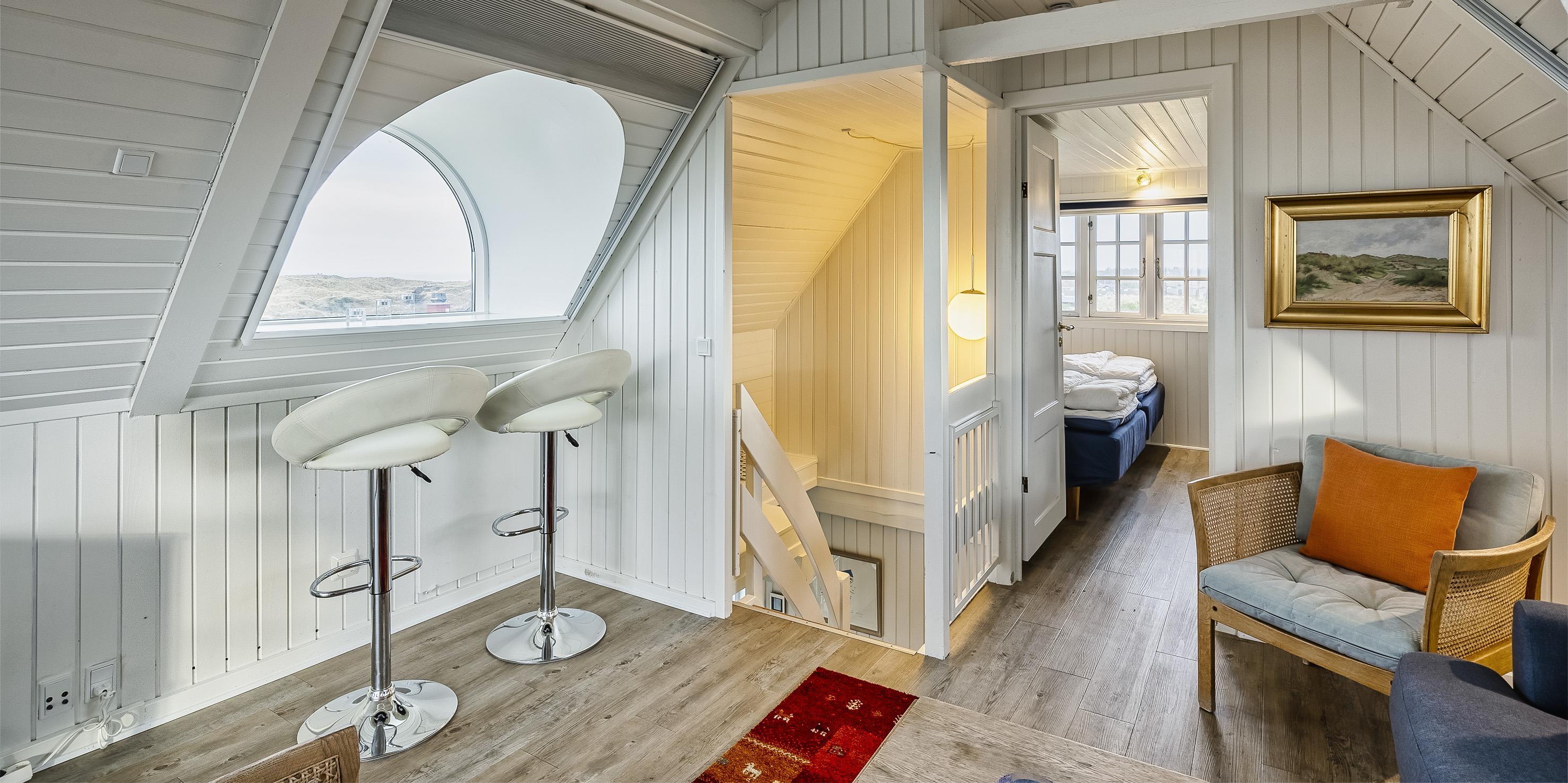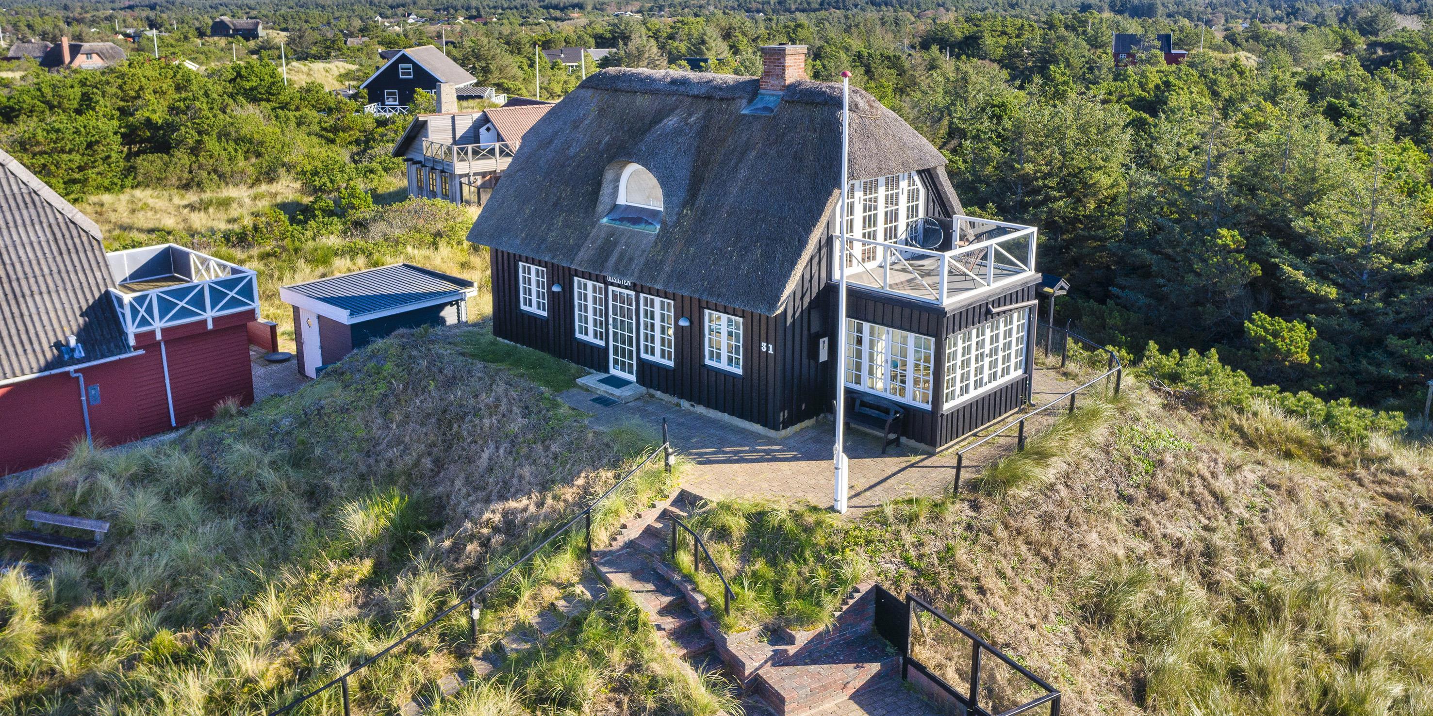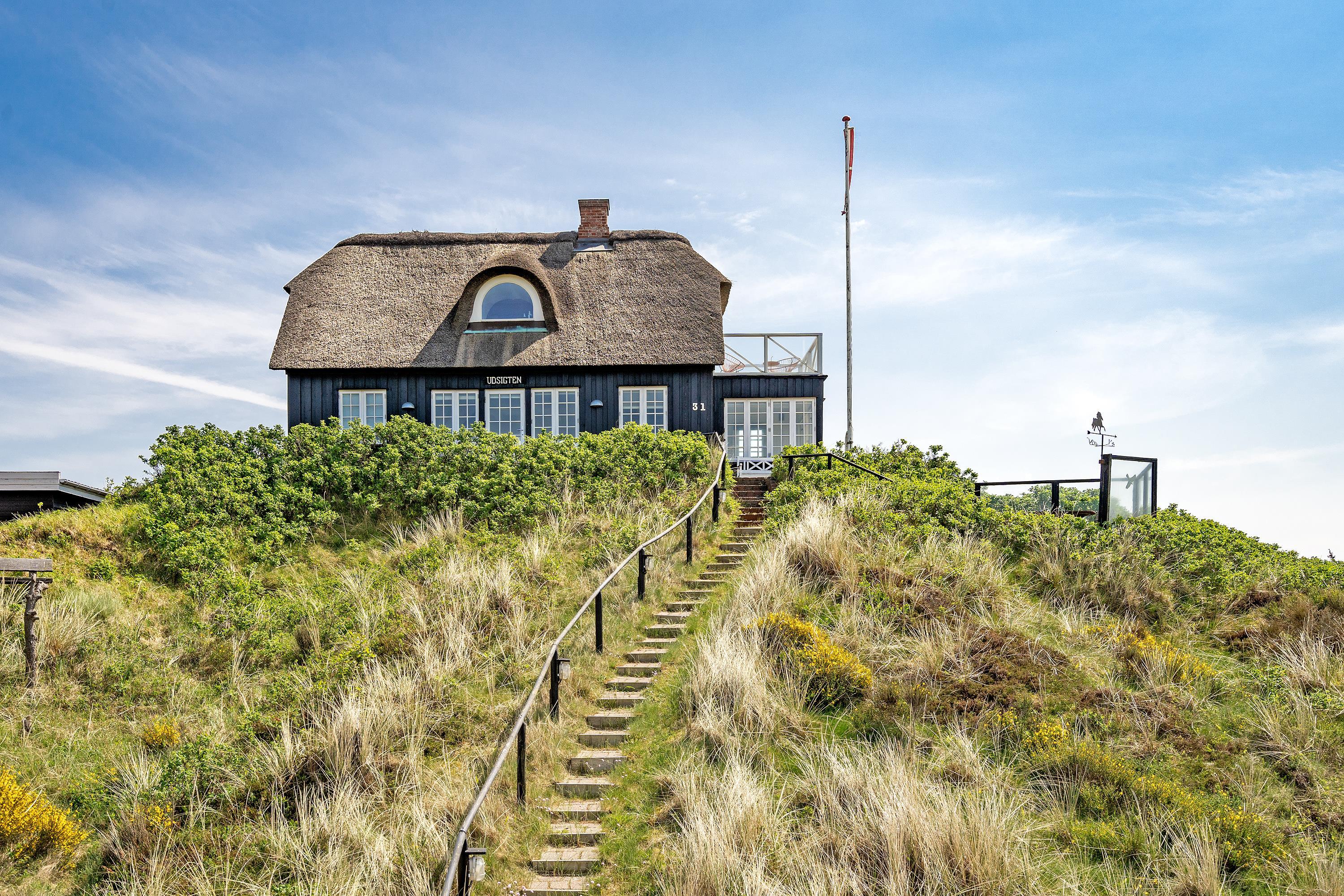 ”Havudsigten” er en af de få perler i Vejers der er beliggende på en klittop med kun 100 meter til Vejers Sydstrand. Sommerhuset er fordelt på 2 etager til 6 personer med et fantastisk panoramablik over klitterne samt havkig fra stueplan, og fra 1. sal er der panoramaudsigt og havudsigt fra de stor gavlvinduer.
