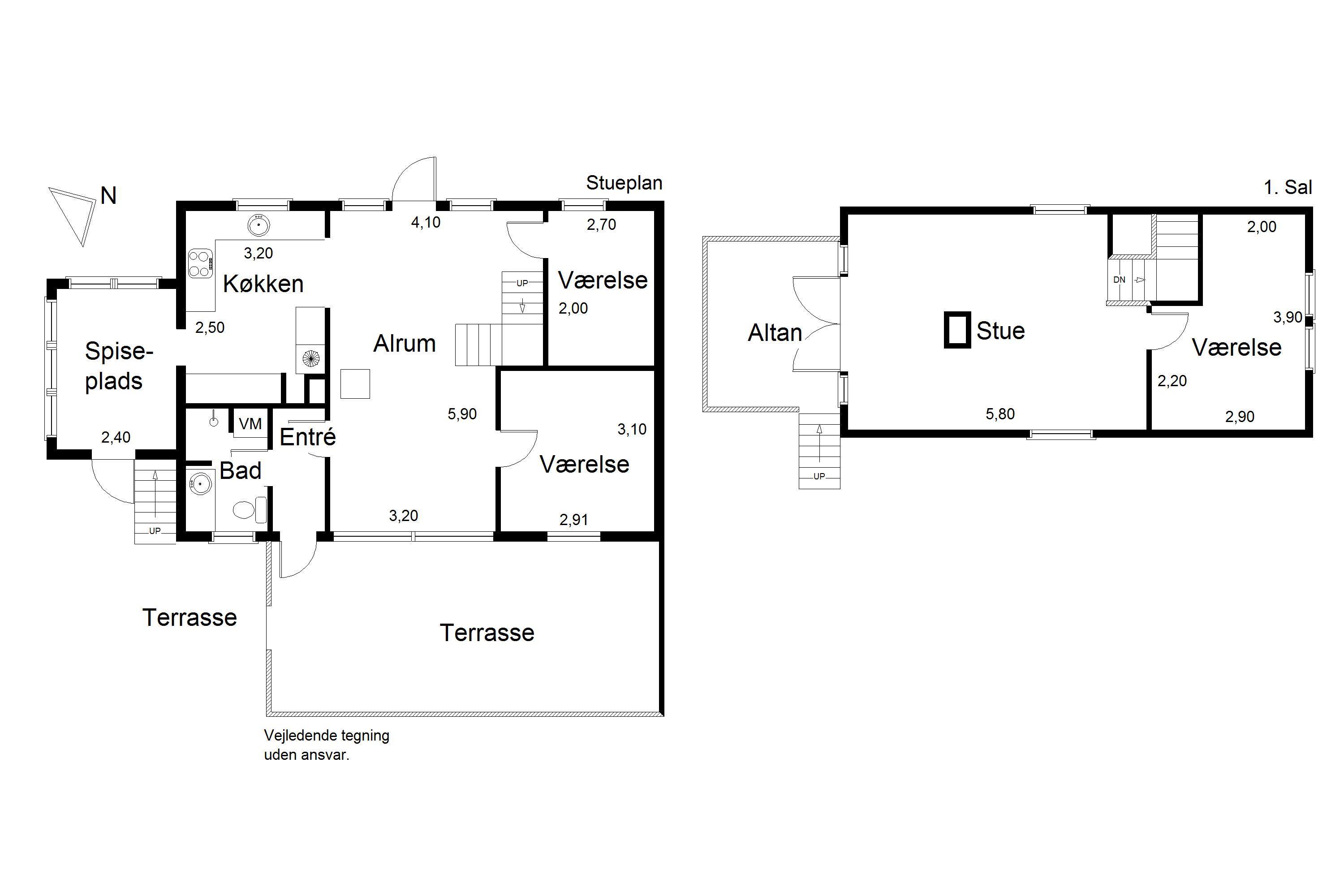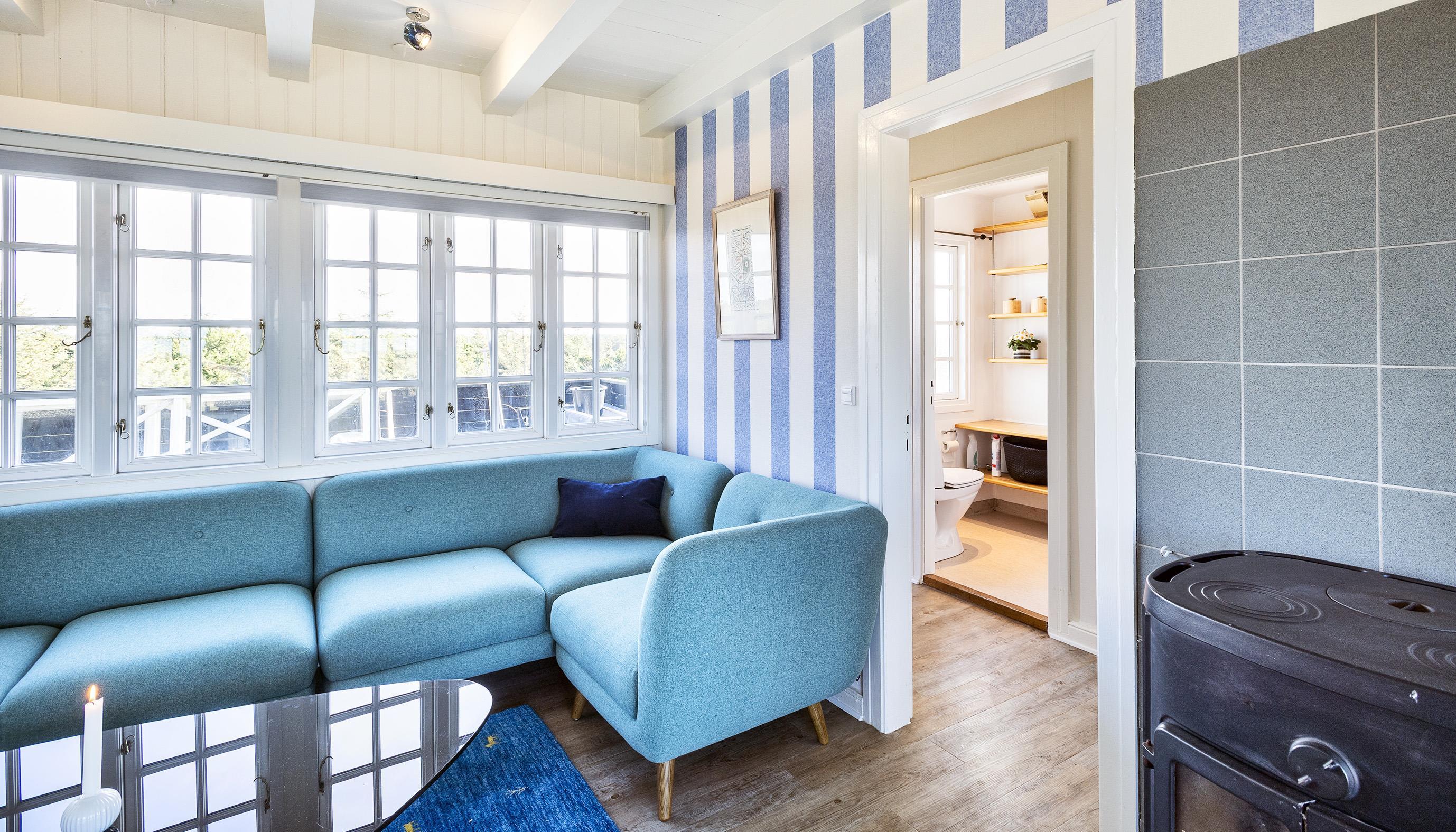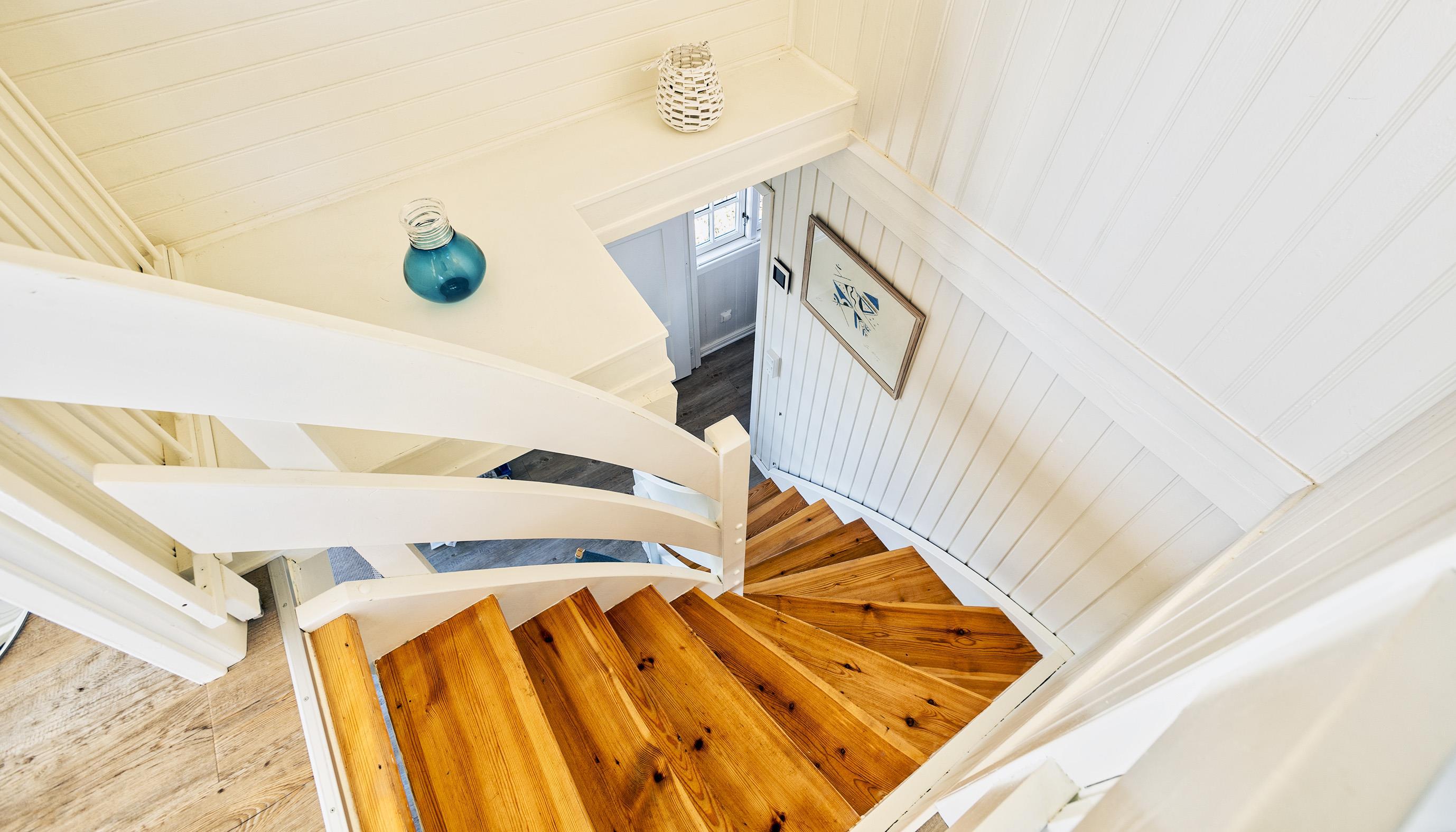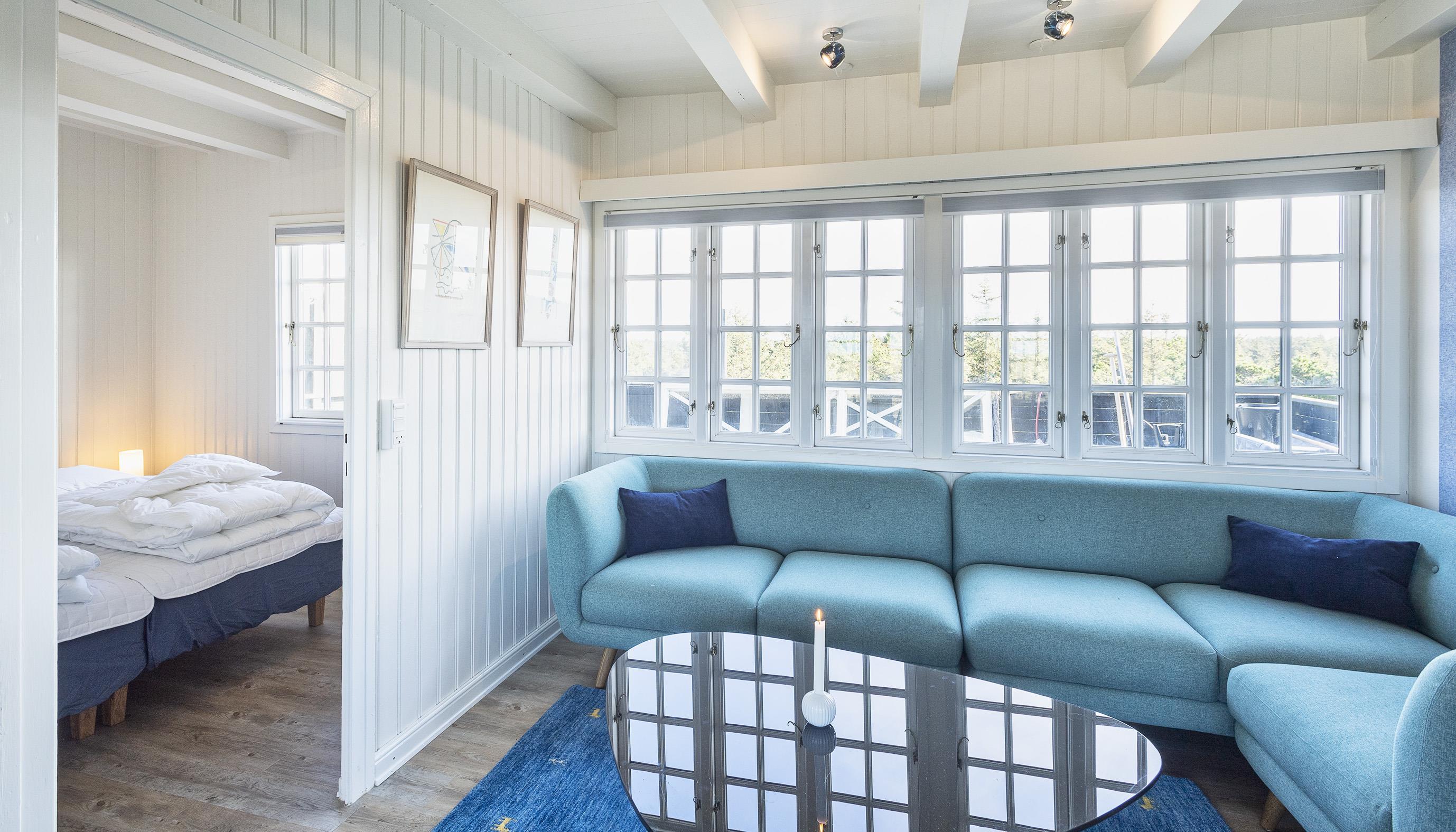 Huset indeholder: Indgang fra bagsiden af huset til en lille entré. Fra entréen forefindes et lille godt udnyttet badeværelse med bruser, vask, toilet og en vaskemaskine. På den anden side af entréen kommer man ind i en lys og hyggelig stue med brændeovn og fjernsyn med Stofa grundpakken. Udgang til vestvendt terrasse. Renoveret køkken med opvaskemaskine, komfur med bageovn, emhætte og køle-/frysekombination. Dejlig spiseplads i havestuen med udsigt over området samt udgang til terrassen. I stueplan forefindes desuden 1 soveværelse med 1 dobbeltseng (2 senge af 90 x 200 cm) samt 1 soveværelse med 2 enkeltsenge (80 x200 cm). 1. sal: 1 soveværelse med 1 dobbeltseng (2 senge af 90 x 200 cm). 3 soveværelser: DS + DS + 2S. Stor lys stue med panoramaudsigt og havudsigt fra det store vinduesparti. Udgang til balkon hvor solnedgangen kan nydes fra første parket.