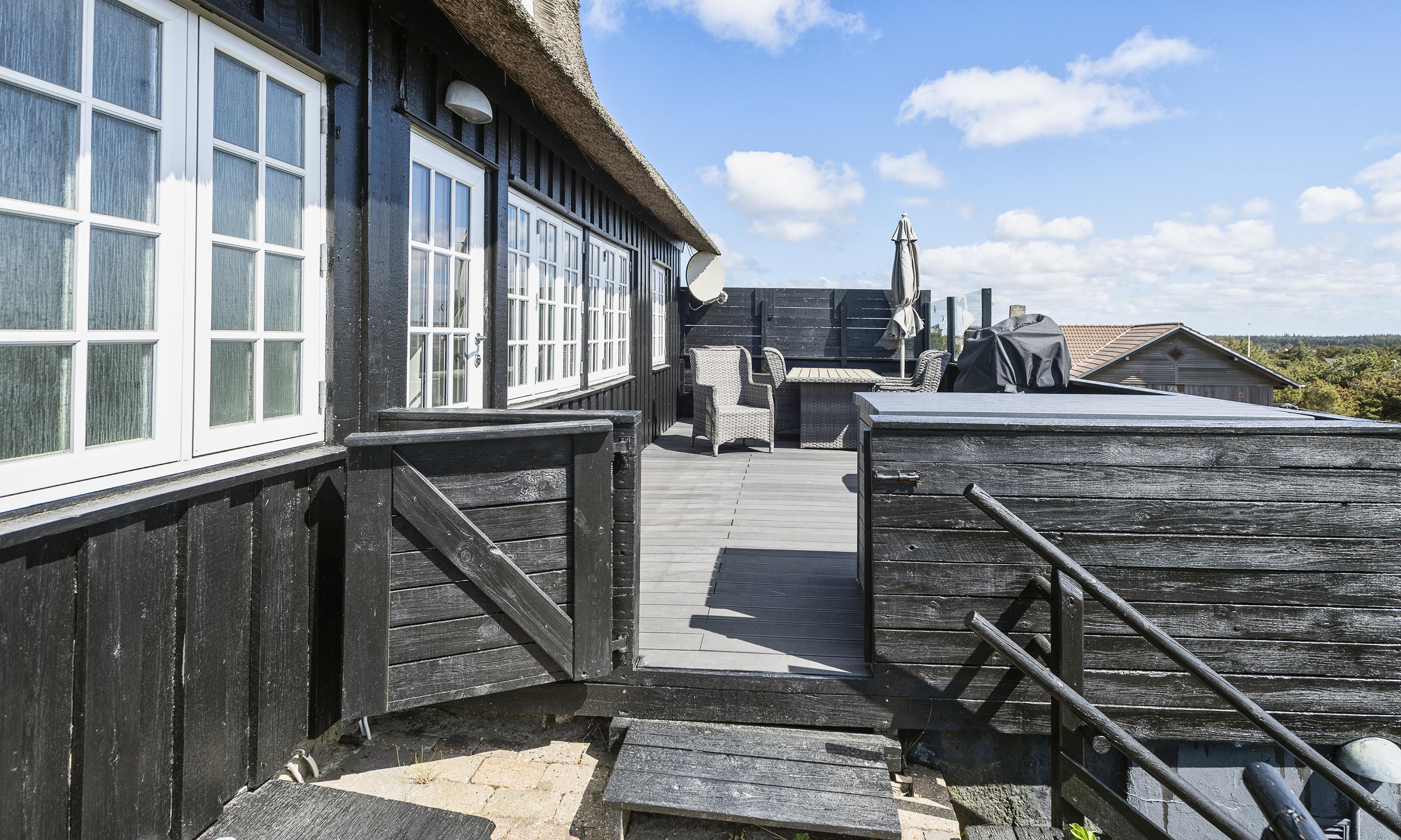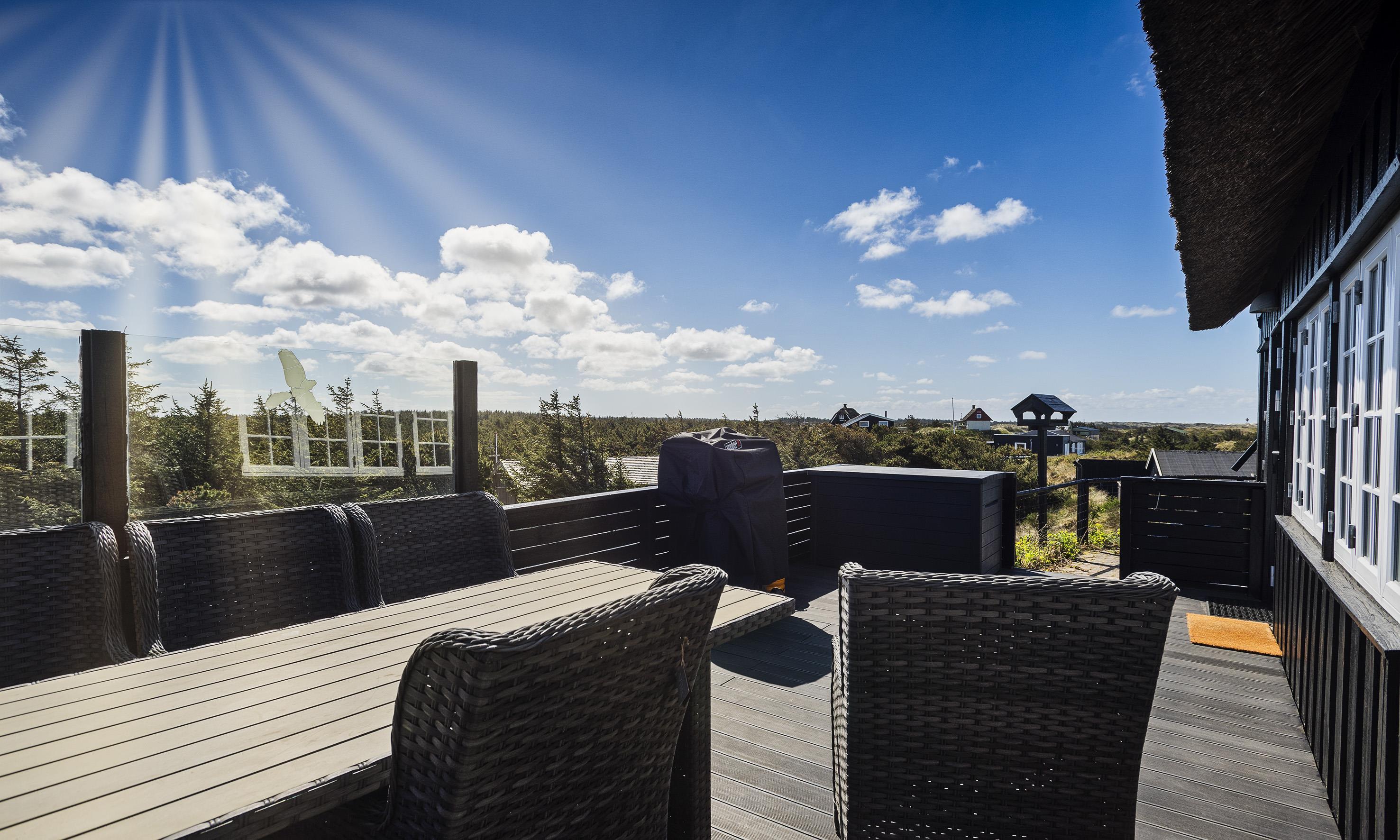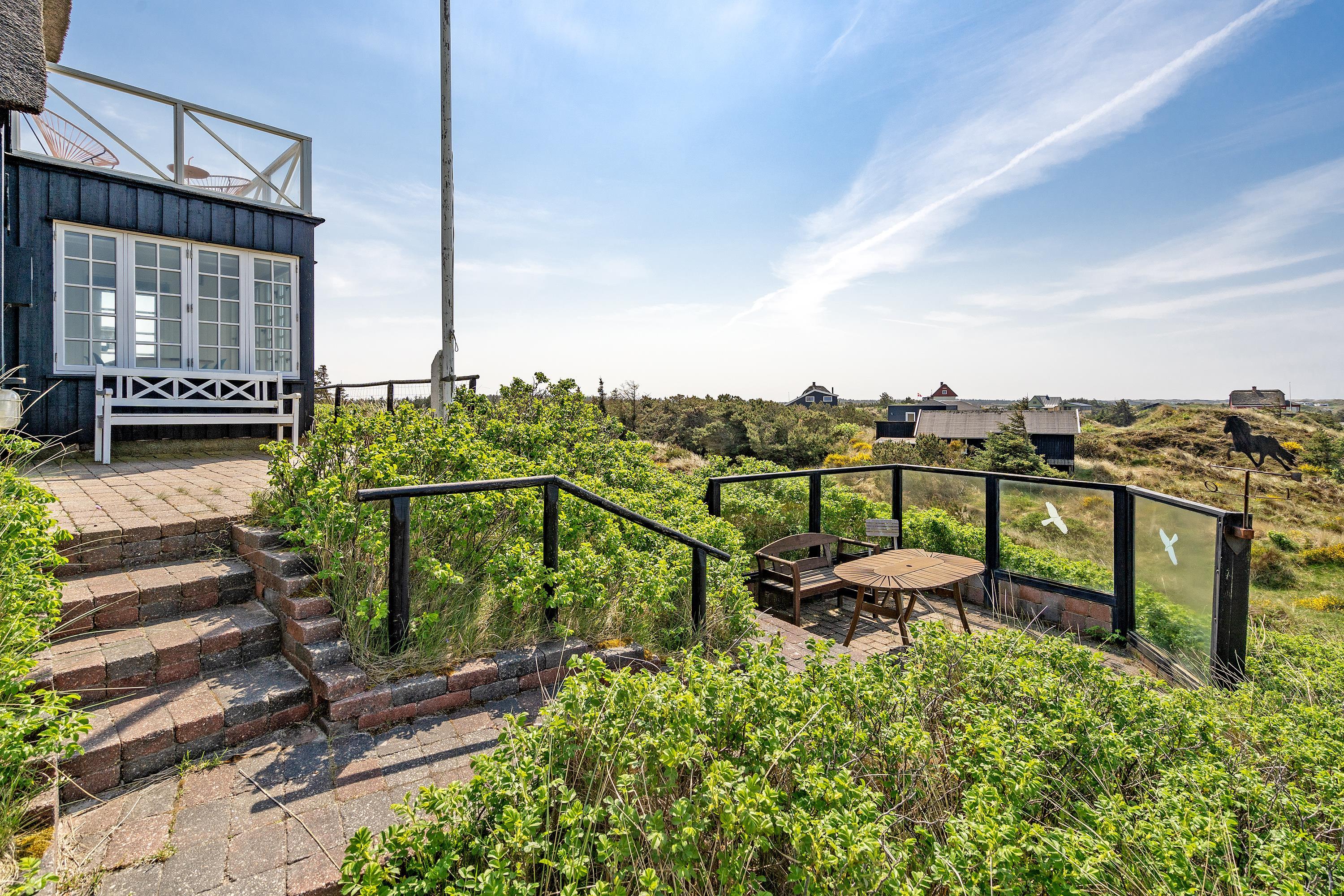 Rundt om huset er der indrettet flere terrasser, hvoraf den ene er med panoramablik og en delvis lukket. Trådløs internetadgang (100/100). Der er tilladt med én stor hund. Hunden må ikke komme i møblerne eller i sengen. Bemærk venligst: katte er ikke tilladt. Rygning er ikke tilladt! Ekstra udgift for vandforbrug. Grunden er 1765 m2 stor klitgrund. Byggeår 1936. Nyrenoveret i 2019.