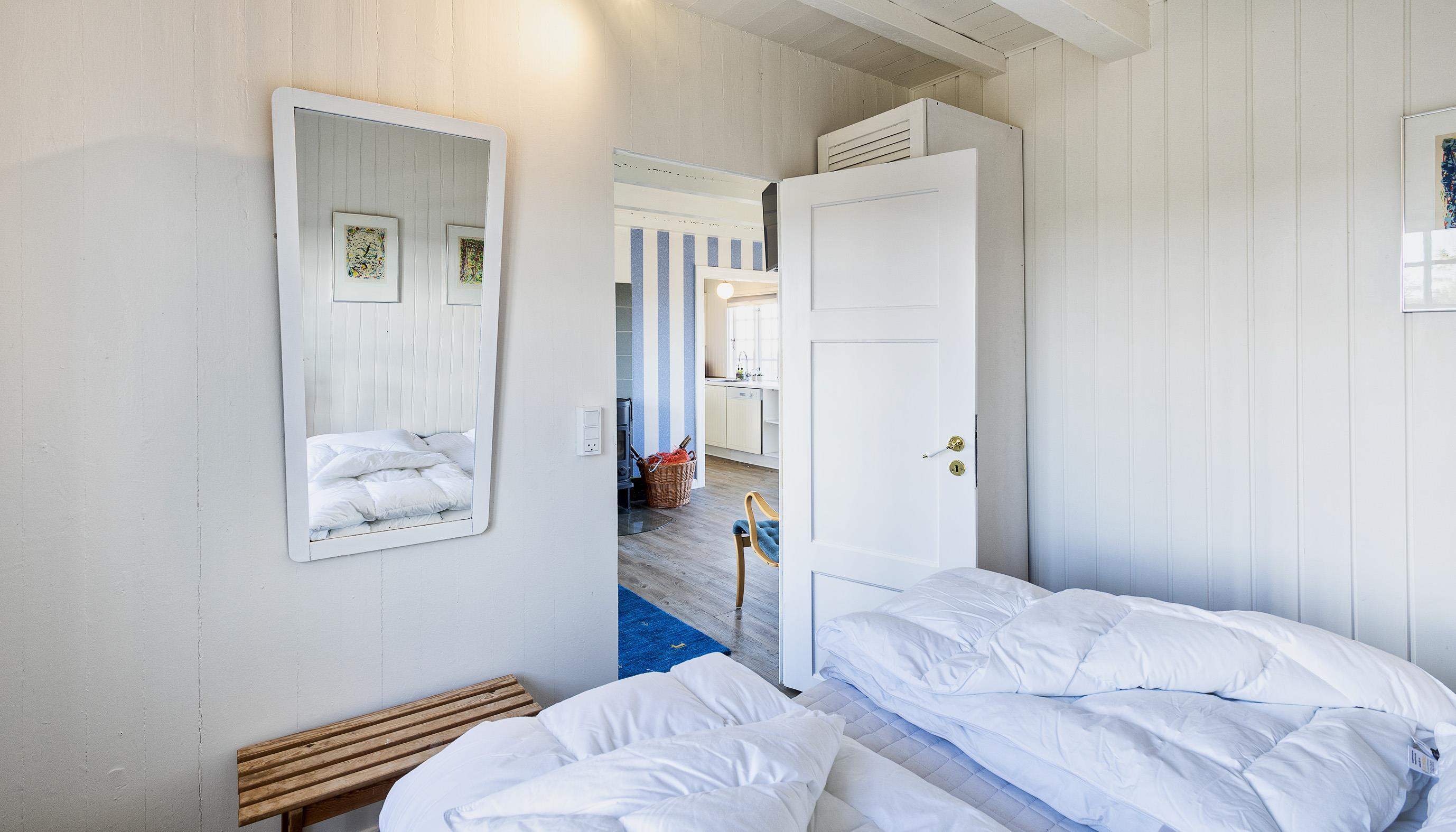 3 soveværelser. 2 med dobbeltseng 180x200 cm. 1 med 2 enkeltsenge (á 90x200 cm)