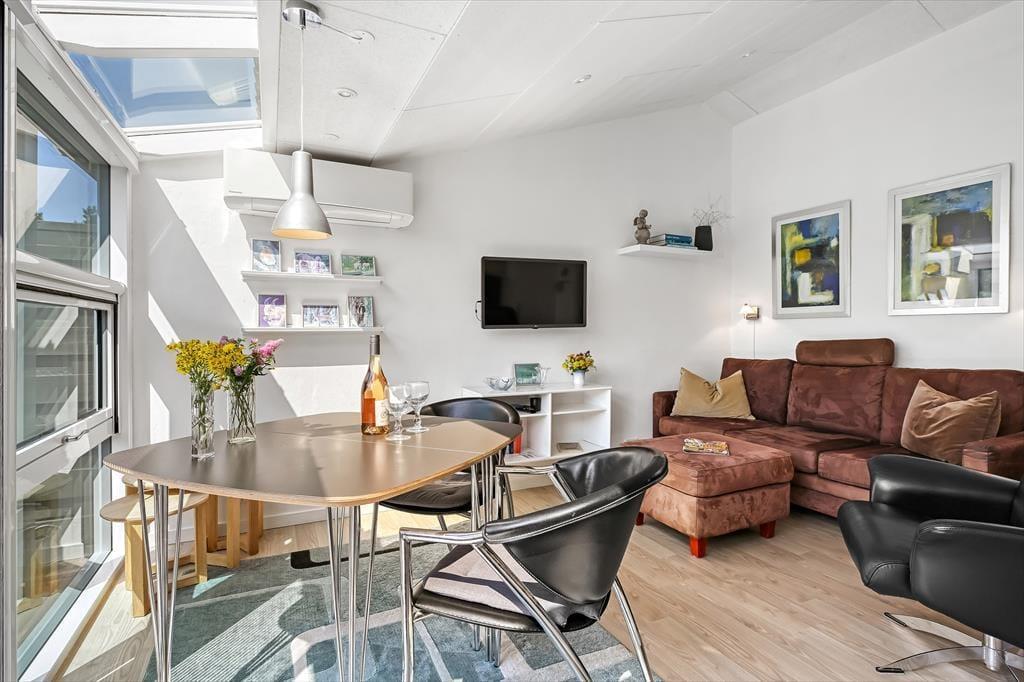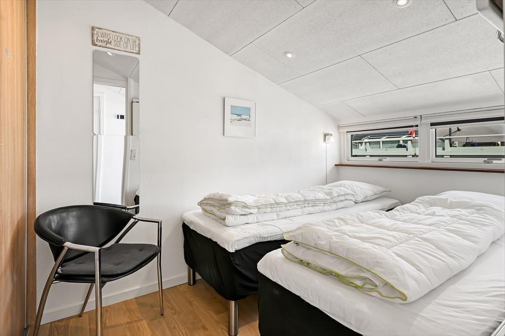Når du træder indenfor i rækkehuset, bliver du mødt af en lys og venlig atmosfære. Indretningen er enkel og imødekommende, og det åbne opholdsrum indbyder til at bruge tid sammen – uanset om det er en stille morgen med kaffe og rundstykker eller en hyggelig aften med film på Smart-TV’et. Takket være Chromecast kan du nemt streame dine yndlingsserier eller dele feriebilleder direkte på skærmen. I spiseområdet kan I nyde dagens måltider med udsigt til haven, og gennem de dobbelte terrassedøre strømmer dagslyset ind og skaber en rar stemning. I soverummet står to enkeltsenge, der kan placeres samlet som dobbeltseng, så I kan indrette sovepladsen efter behov. En varmepumpe sørger for behagelig temperatur året rundt, så uanset årstiden er rammerne skabt for et dejligt ferieophold.