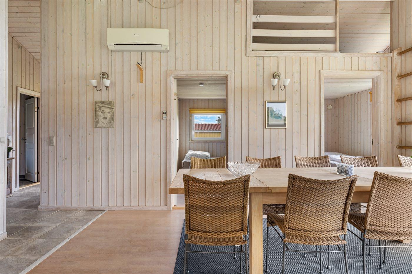 Sommerhuset egner sig til 8 personer samt 1 barn op til 3 år. Ferieboligen er på 108 m² og er bygget i 2005. Det er tilladt at medbringe 2 husdyr. Ferieboligen er udstyret med energibesparende luft til luft varmepumpe. Ferieboligen har vaskemaskine. Frysekapacitet på 75 liter. Der er desuden brændeovn. Til de små er der 1 stk. barnestol.