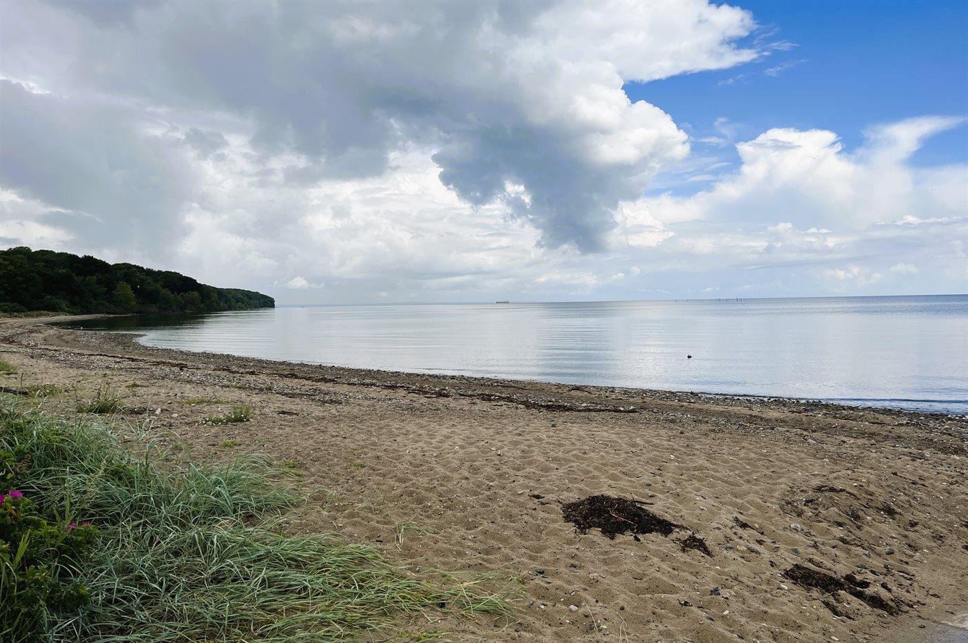 Lige skråt overfor huset fører en vej ned til stranden, som ligger under 100 meter væk.