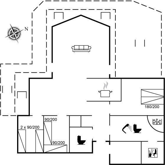 Bemærk: To af sovepladserne befinder sig på husets hems, og er grundet adgangsforholdene bedst egnet til et par unge mennesker.