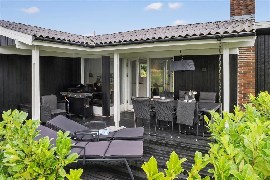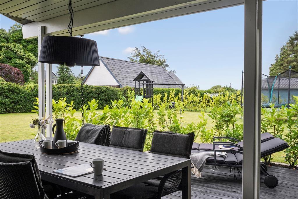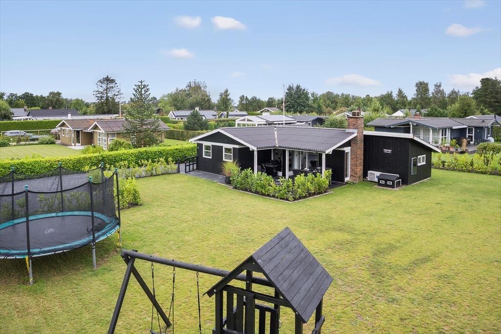 Sommerhusets store terrasse inviterer til masser af udendørs hygge med gasgrill og komfortable møbler, hvor du kan nyde dagens måltider under åben himmel. Haven er et paradis for både børn og voksne med en stor græsplæne, gyngestativ, trampolin og sandkasse, der lægger op til leg og sjov. Du kan også slappe af i solen med en god bog, mens børnene morer sig. Og som en ekstra bonus er der en oplader til elbil ved huset, så du nemt kan holde bilen klar til nye eventyr.