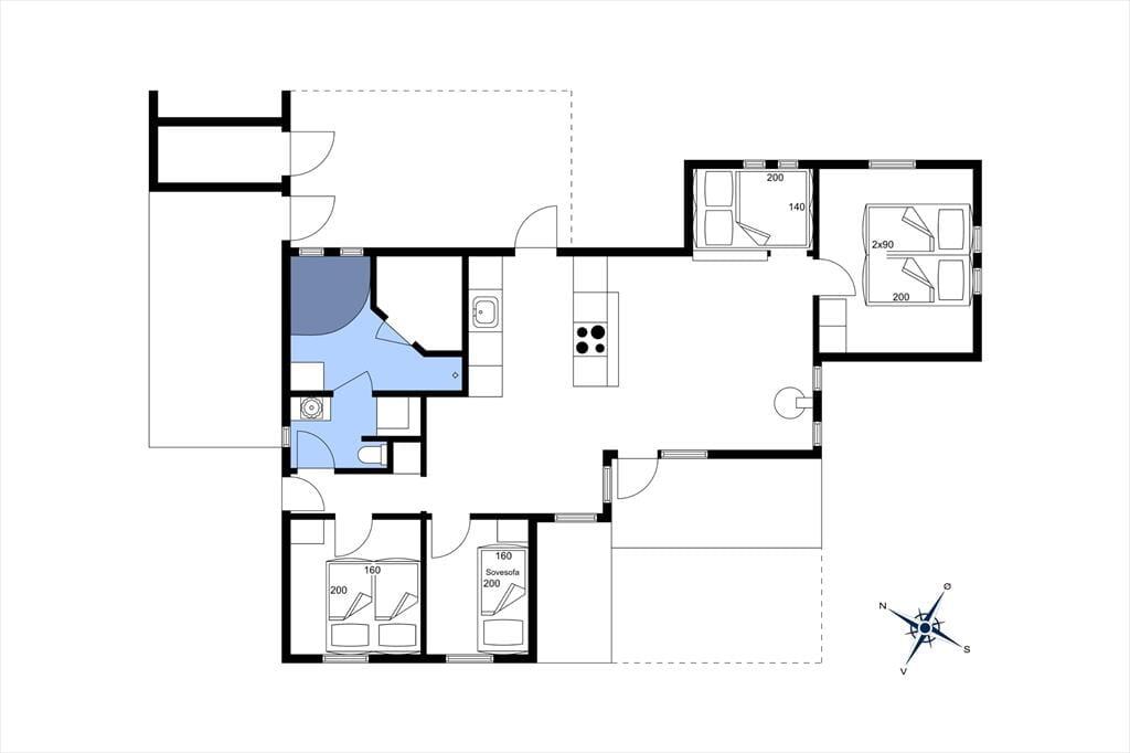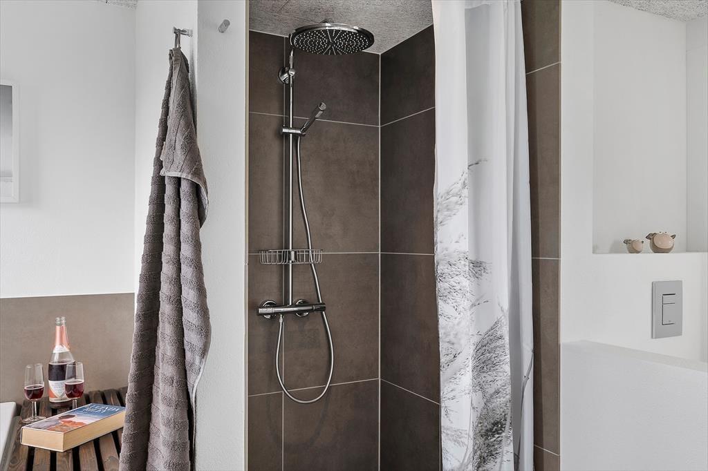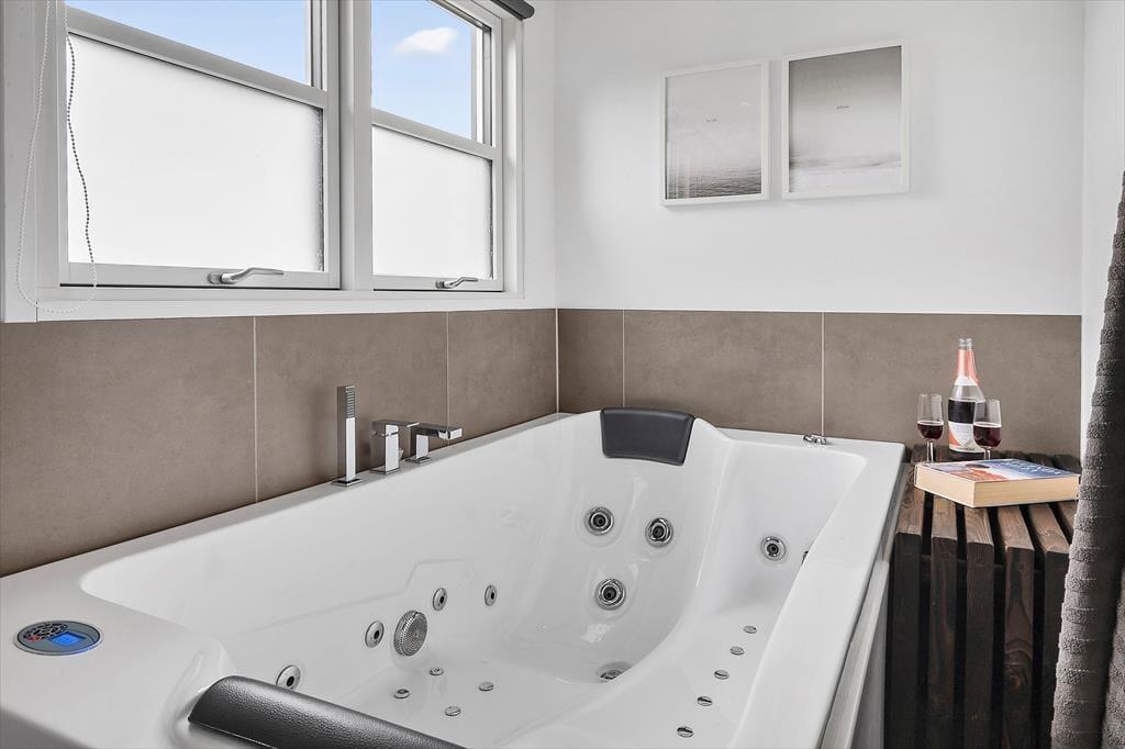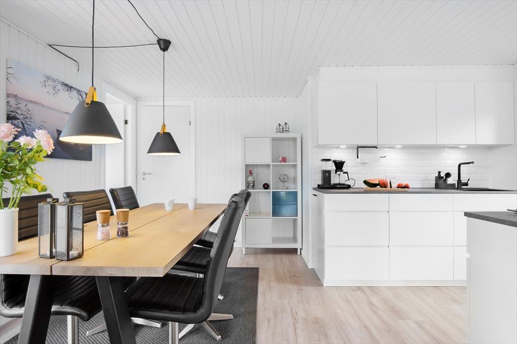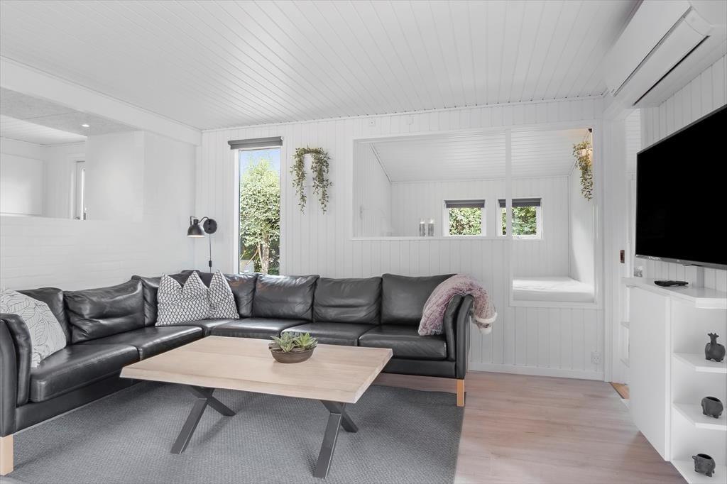Når du træder indenfor, bliver du mødt af et lyst og indbydende køkken-alrum, der er husets hjerte. Her kan du samle familien om måltiderne ved det store spisebord eller slappe af i sofaen foran tv'et og den hyggelige brændeovn. Køkkenet er fuldt udstyret, så du har alt, hvad du behøver for at tilberede lækre måltider, og med den energibesparende varmepumpe kan du holde en behagelig temperatur året rundt. Det nyrenoverede badeværelse er et kapitel for sig med et lækkert spabad, hvor du kan forkæle dig selv med et afslappende bad efter en dag fuld af oplevelser.