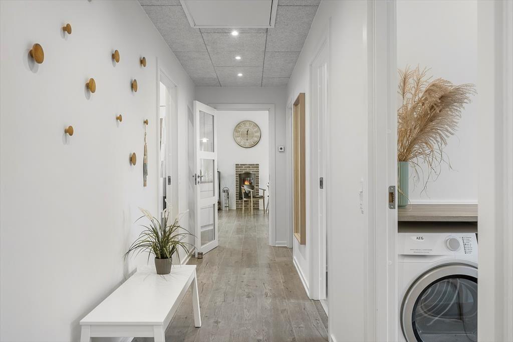 Sommerhuset imponerer med sin lyse og åbne planløsning, hvor det moderne køkken ligger i åben forbindelse med stue og spisestue. Det skaber en social og indbydende atmosfære, som er ideel til samvær med familie og venner. I stuen står en hyggelig brændeovn klar til at sprede varme og hygge på kølige aftener, mens gulvvarmen i hele huset sikrer en behagelig temperatur året rundt. Huset rummer fire gode soveværelser – herunder et med køjeseng, som er populært blandt børnene. To flotte badeværelser giver ekstra komfort, hvor det ene er udstyret med et dejligt spabad, der inviterer til afslapning efter en aktiv dag ved stranden eller i området.