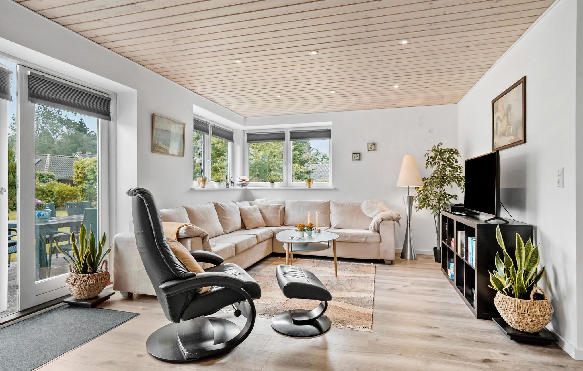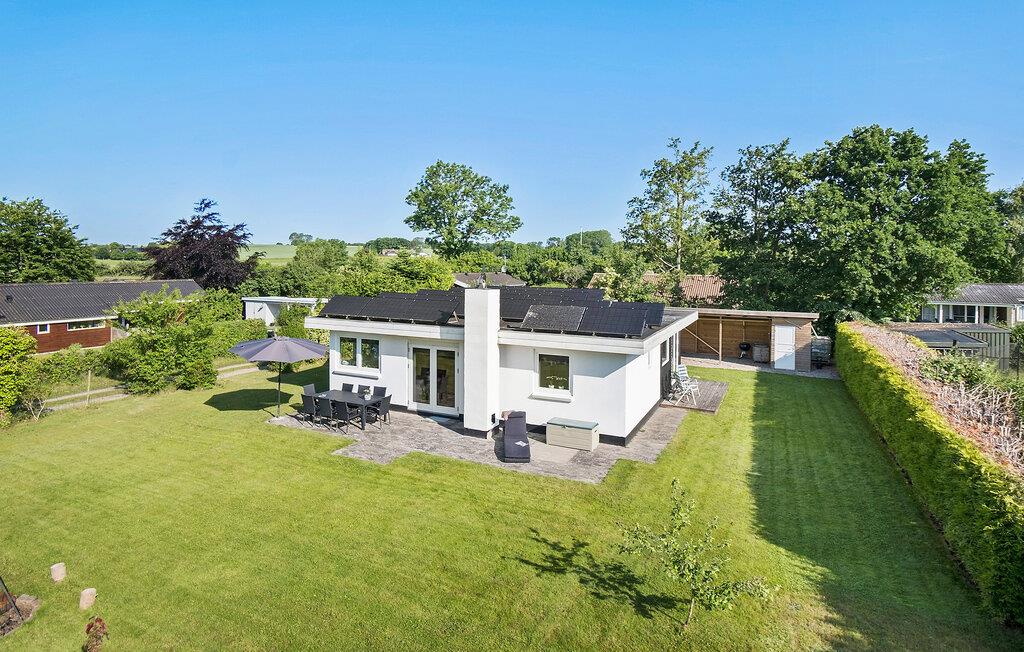 Feriehus tæt på Vejlby Fed strand med stor have og moderne faciliteter.