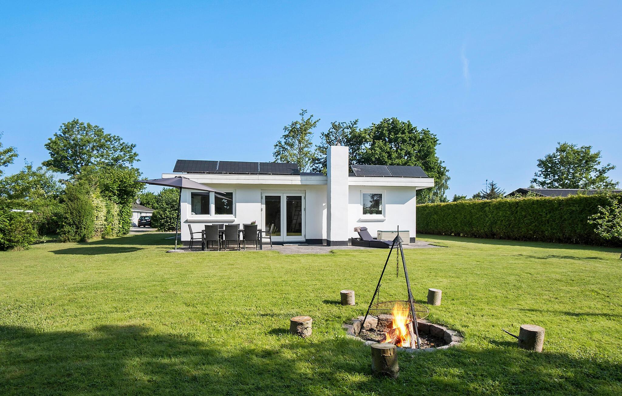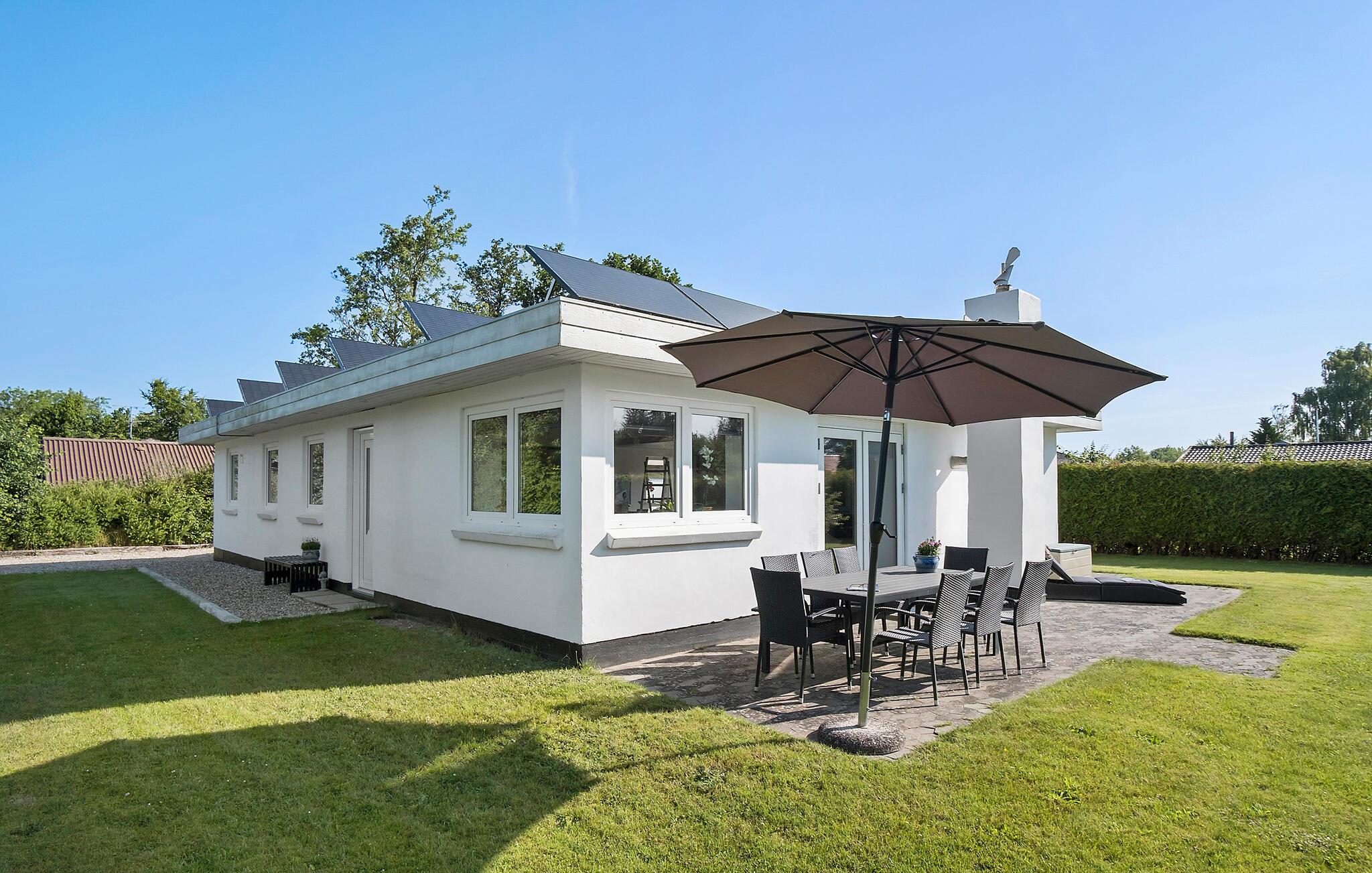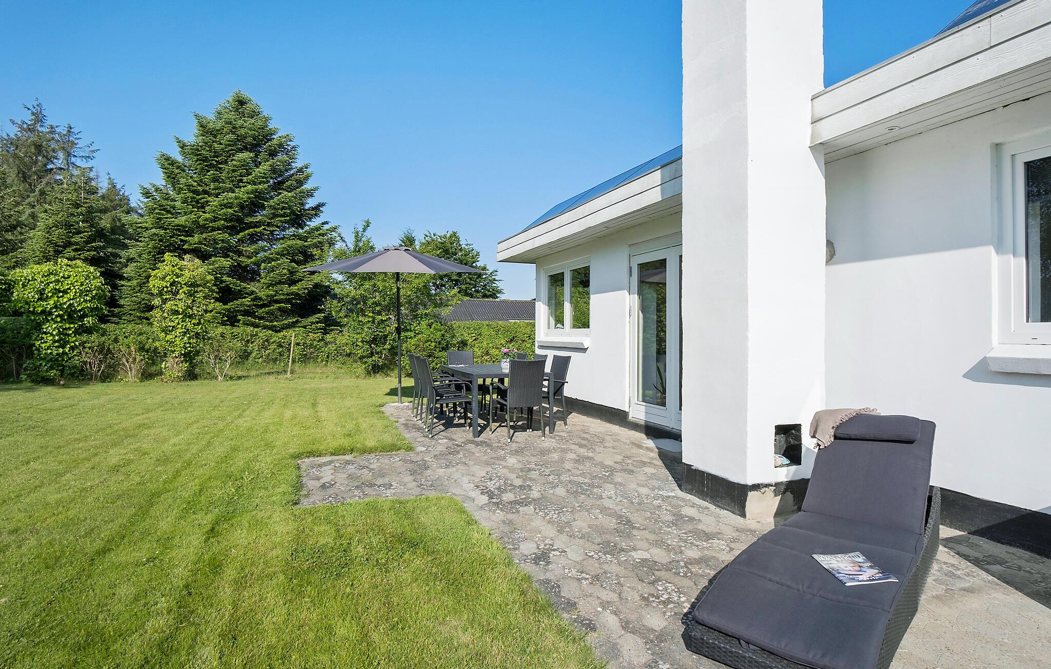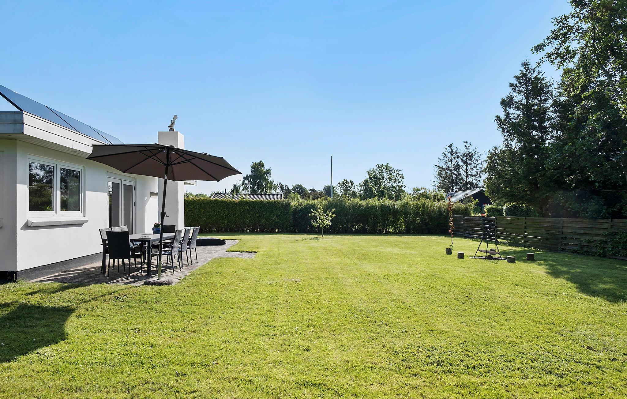 Nyd solrige timer på den smukke terrasse med spisebord og stor parasol. Brug den rummelige have til boldspil, et hyggeligt bål eller blot afslapning i det grønne. Der er også en lille ekstra terrasse bag huset, som er oplagt til morgenkaffe eller et roligt tilflugtssted.