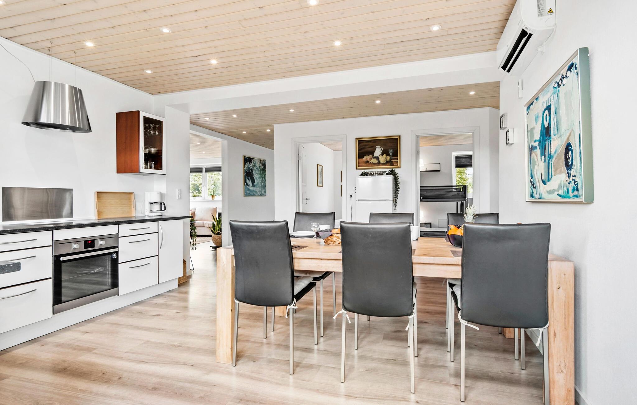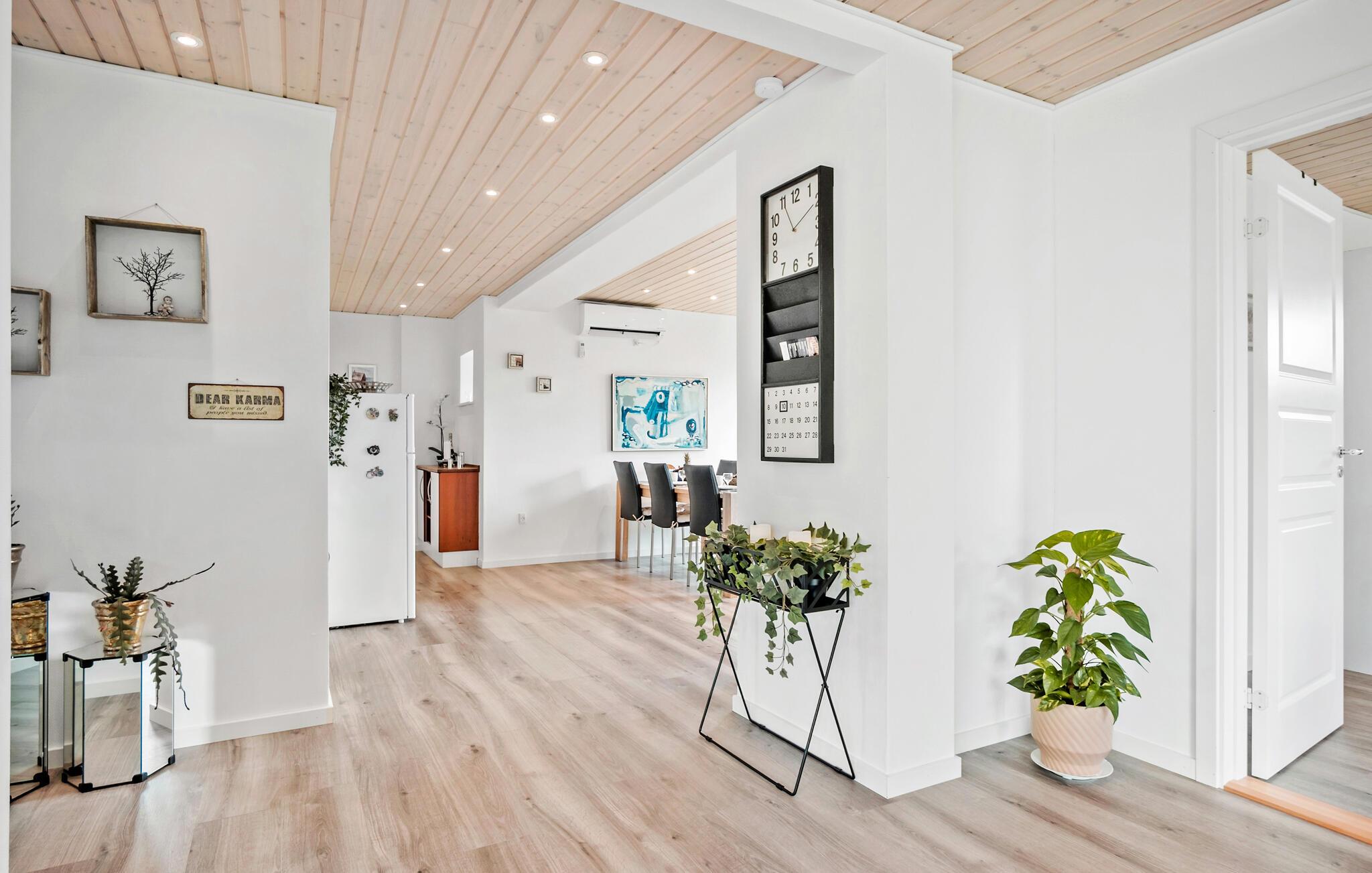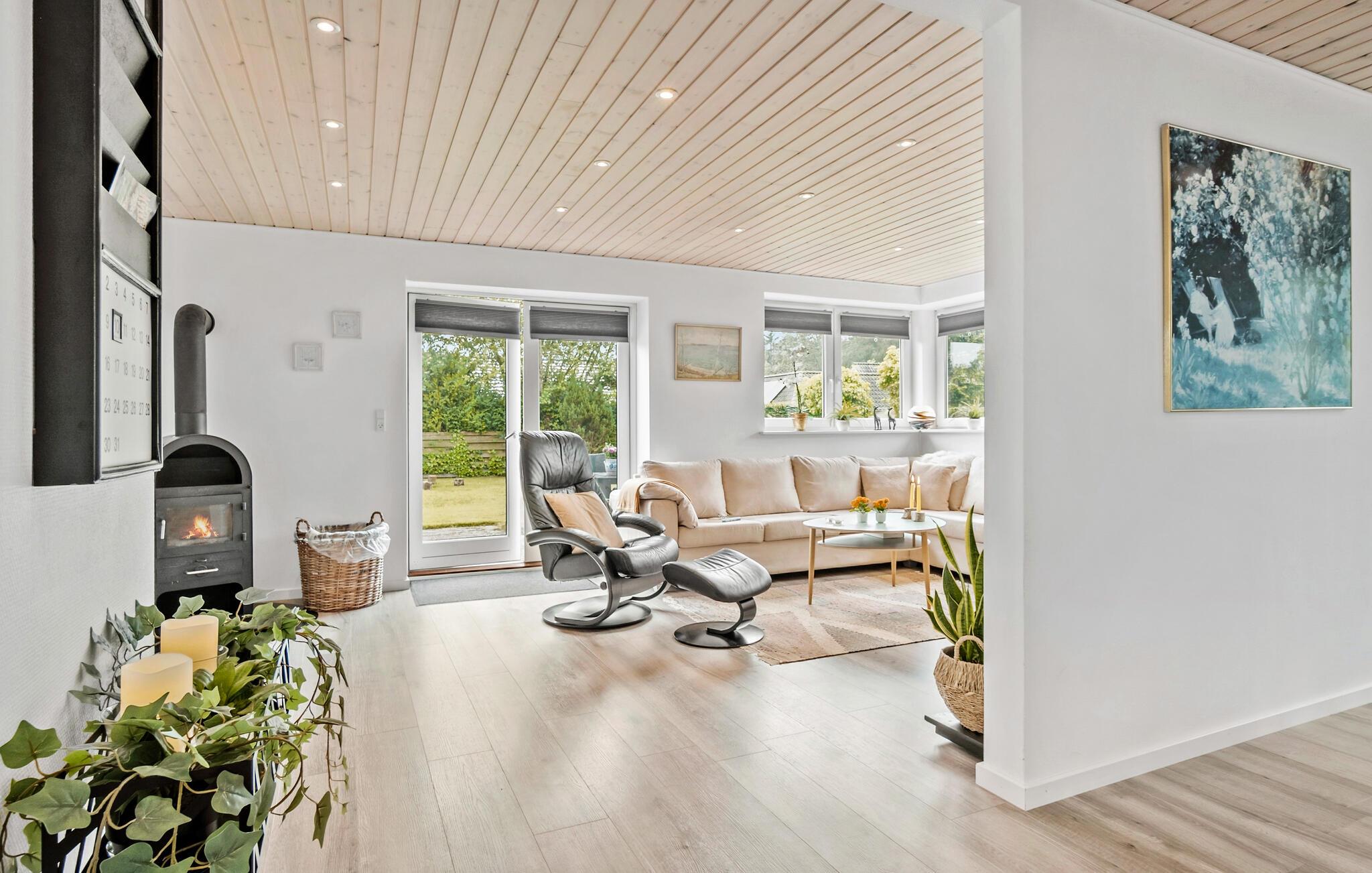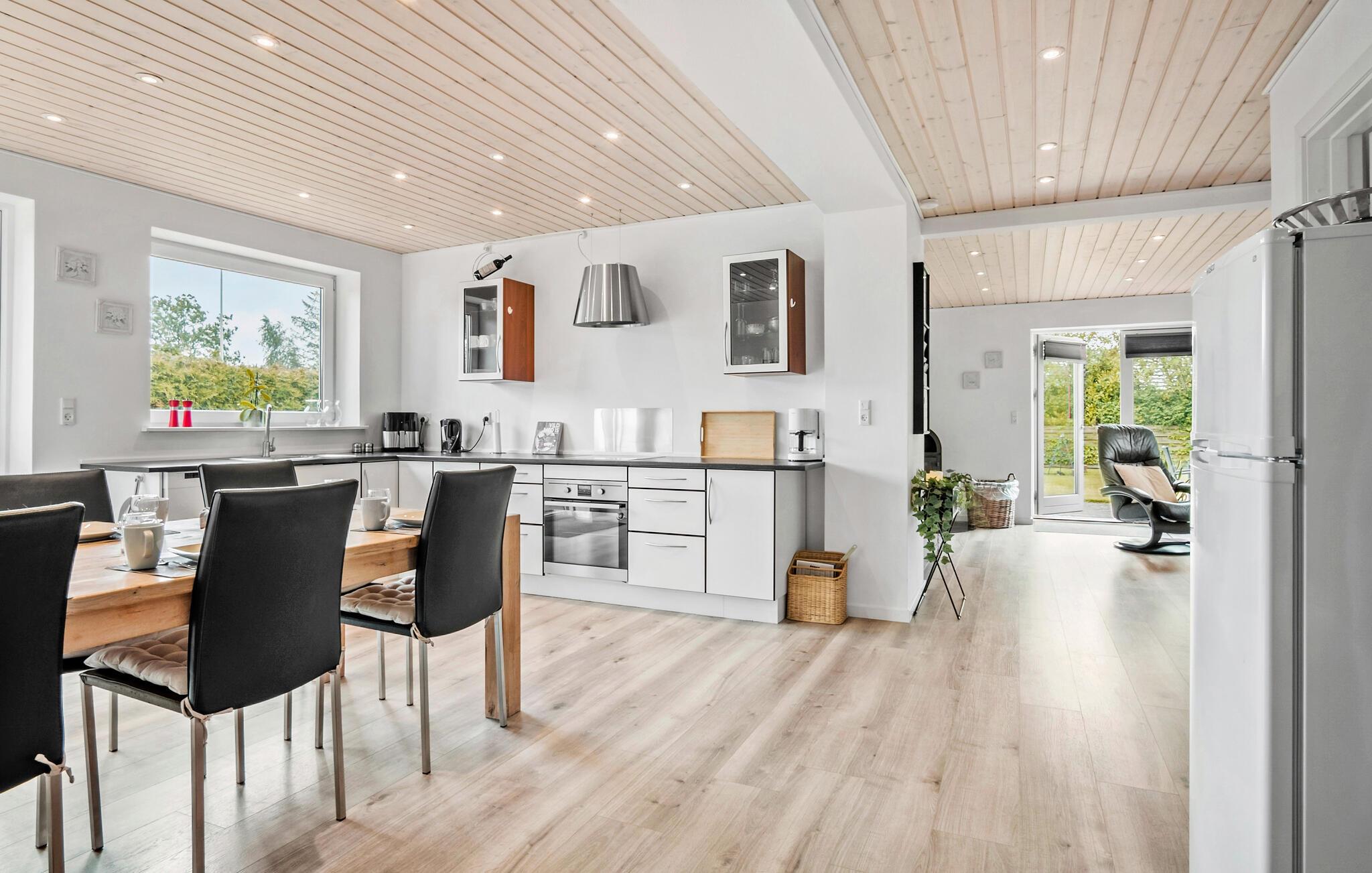 I dette feriehus er I kun få minutters gang fra den børnevenlige Vejlby Fed strand, samtidig med at I kan nyde godt af grønne, rolige omgivelser. Find jer til rette i det lyse hus' rummelige, moderne opholdsrum. Den hyggelige opholdsstue med brændeovn lægger op til at slappe af, uanset om I læser, spiller spil eller ser tv. Brug det åbne køkken med apparater med lækre kvalitetsløsninger og en spiseplads til fælles måltider.