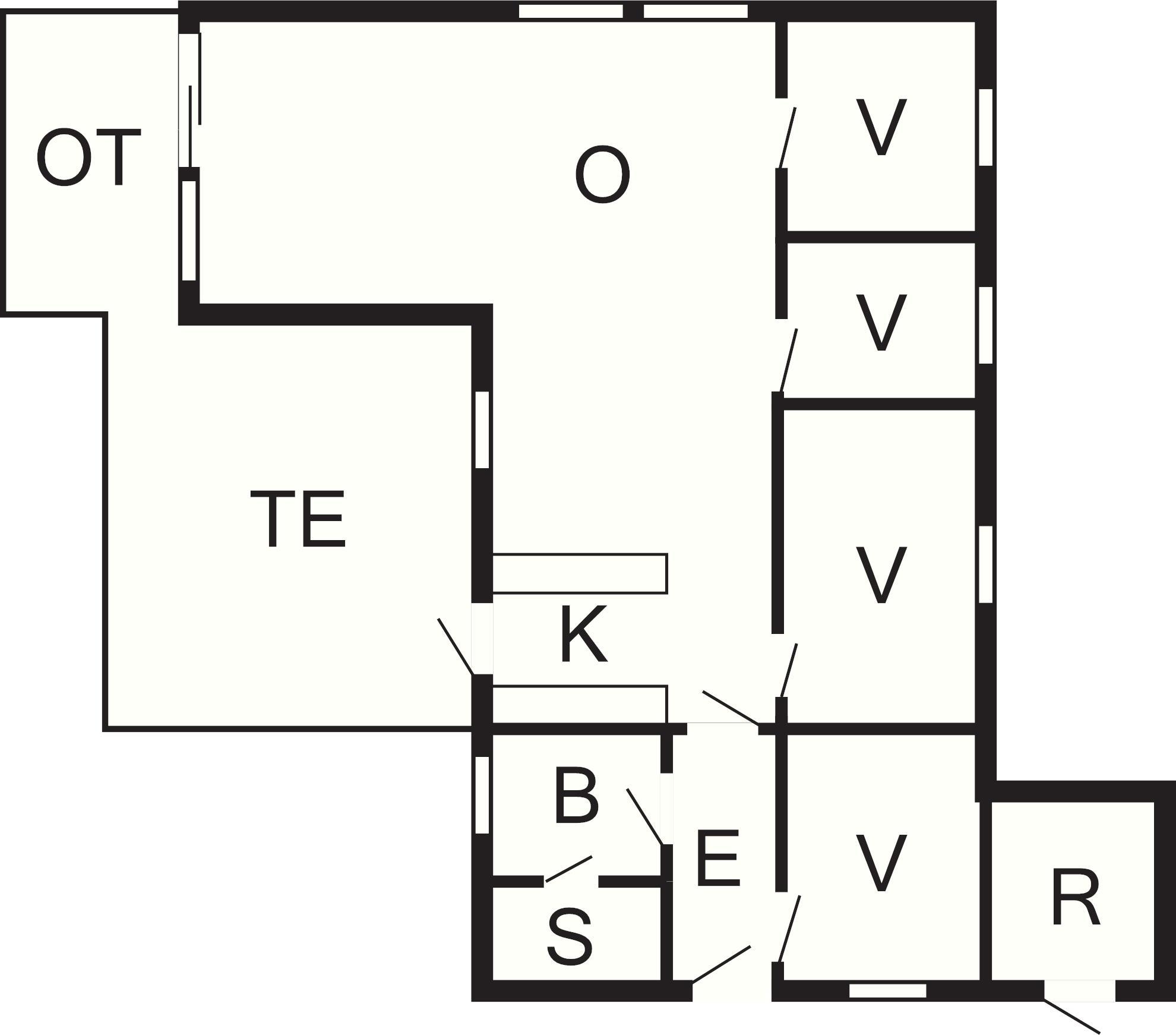 4 Soveværelser: (1DS)+(1DS)+(2S)+(4K), barneseng og høj stol