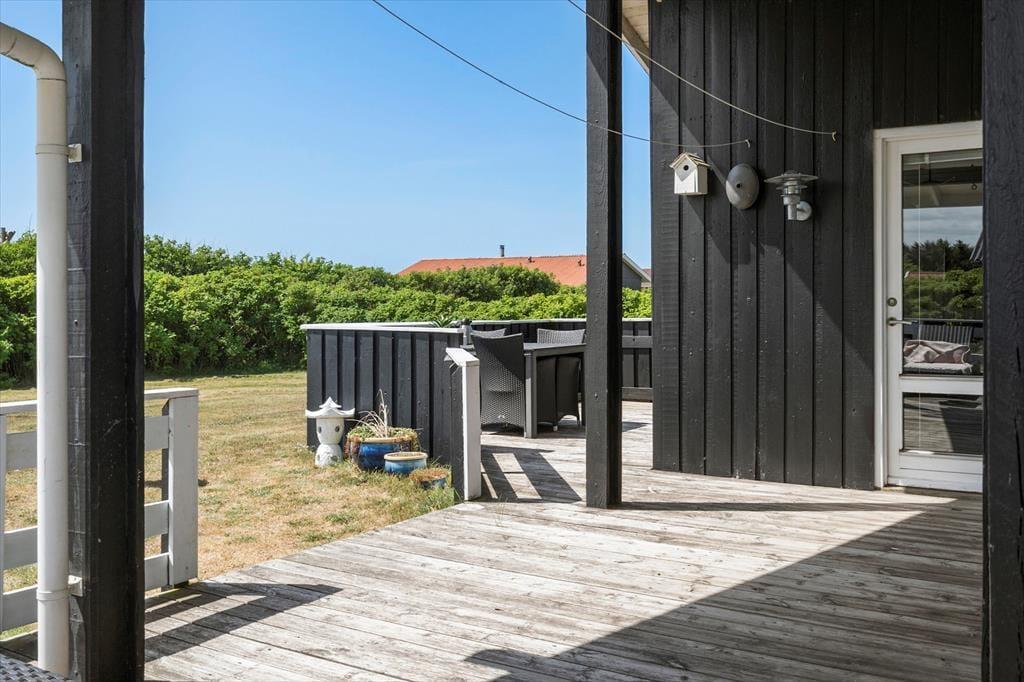 Den store, åbne terrasse inviterer til afslapning under åben himmel. Her kan du mærke den friske havluft og lytte til fuglenes sang, mens du nyder solen eller samles omkring grillen til et lækkert måltid. Den omkringliggende natur skaber en fredfyldt ramme, hvor både børn og voksne kan lege og nyde den friske luft.