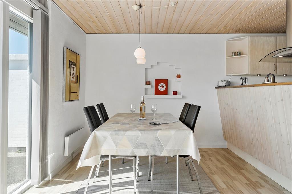 Beliggende i Vejlby Klit har du kort afstand til både strand og lokale faciliteter. En kort gåtur fører dig til det lokale supermarked og en restaurant, hvor du kan nyde lokale specialiteter. Stranden er kun 800 meter væk, så du nemt kan tage en forfriskende dukkert i Vesterhavet eller gå en tur langs kysten og mærke den friske vestenvind. Området byder også på spændende attraktioner som Sea War Museum Jutland i Thyborøn, hvor du kan dykke ned i fascinerende fortællinger om dramatiske søslag, eller besøge Bovbjerg Klint, hvor du kan opleve storslået natur og en imponerende udsigt fra Bovbjerg Fyr.