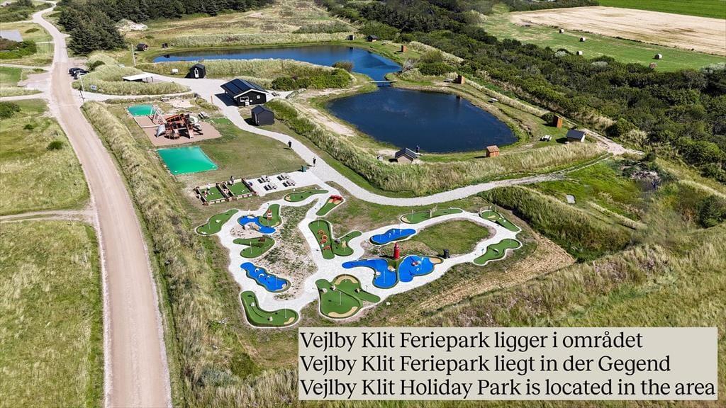 Beliggende for enden af en rolig vej er sommerhuset kun 450 meter fra Vejlby Klit Strand, hvor du kan nyde lange gåture langs vandet eller tage en forfriskende dukkert i Vesterhavet. Kun 350 meter væk finder du en hyggelig restaurant og et supermarked, hvilket gør det nemt at handle ind og opleve lokale kulinariske tilbud. For de aktive er der en fodboldbane og en legeplads i nærheden, og området byder på flere naturskønne stier ideelle til vandre- og cykelture. Desuden er der gode fiskemuligheder i både havet og de nærliggende søer.