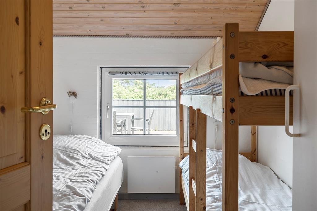 Sommerhuset er lyst og indbydende med en enkel indretning, der giver plads til at nyde ferien fuldt ud. De store vinduer i stuen lader dagslyset strømme ind og giver udsigt til den omkringliggende natur. Her kan du samles med familien foran brændeovnen på kølige dage eller nyde en god film på fladskærms-tv’et. Køkkenet ligger i åben forbindelse med stuen og giver gode muligheder for at kokkerere og hygge sig sammen – måske med en hjemmelavet middag baseret på friske, lokale råvarer. Soveværelserne, der er holdt i lyse toner, sikrer en god nats søvn, så du er klar til at udforske alt, hvad området har at byde på.