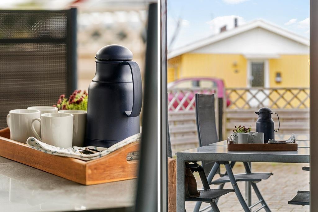 Når solen skinner, rykker ferielivet naturligt udenfor, og her får I glæde af en have, der indbyder til både leg og afslapning. Hunden kan snuse nysgerrigt rundt, mens børnene leger på græsset og de voksne nyder morgenkaffen i solen eller et køligt glas vin under aftensolen. Måltiderne kan nemt serveres under åben himmel, og det er oplagt at tænde grillen og mærke den særlige feriestemning brede sig i den vestjyske aftenluft. Omkring sommerhuset er der fred og ro, og I får følelsen af at være langt væk fra hverdagens travlhed – men alligevel tæt på det hele.