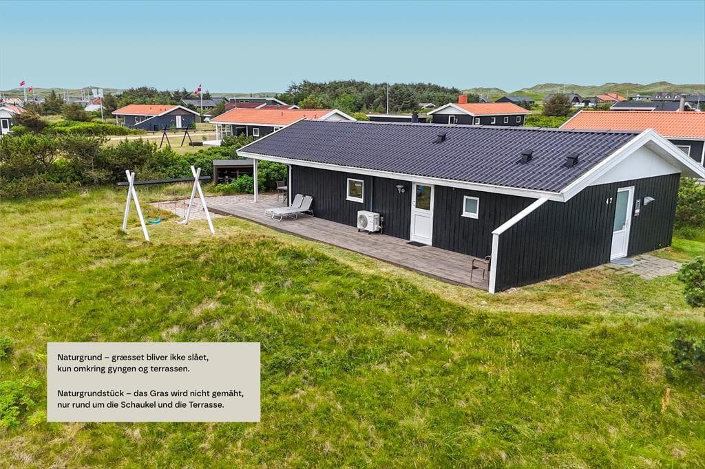 Haven er et lille ferieparadis i sig selv med plads til både leg og afslapning. Børnene kan tumle sig på gyngerne og i sandkassen, mens de voksne slapper af med en kop kaffe i solen. Et særligt plus er husets shelter, som inviterer til en nat under åben himmel med stjernerne som loft – et hit blandt både børn og eventyrlystne voksne. Den store terrasse gør det nemt at flytte dagens aktiviteter ud i det fri, og om aftenen kan grillen tændes, mens solen går ned over klitterne. Har du hund med på ferie, vil den også nyde de grønne omgivelser og den friske havluft, som området byder på.
