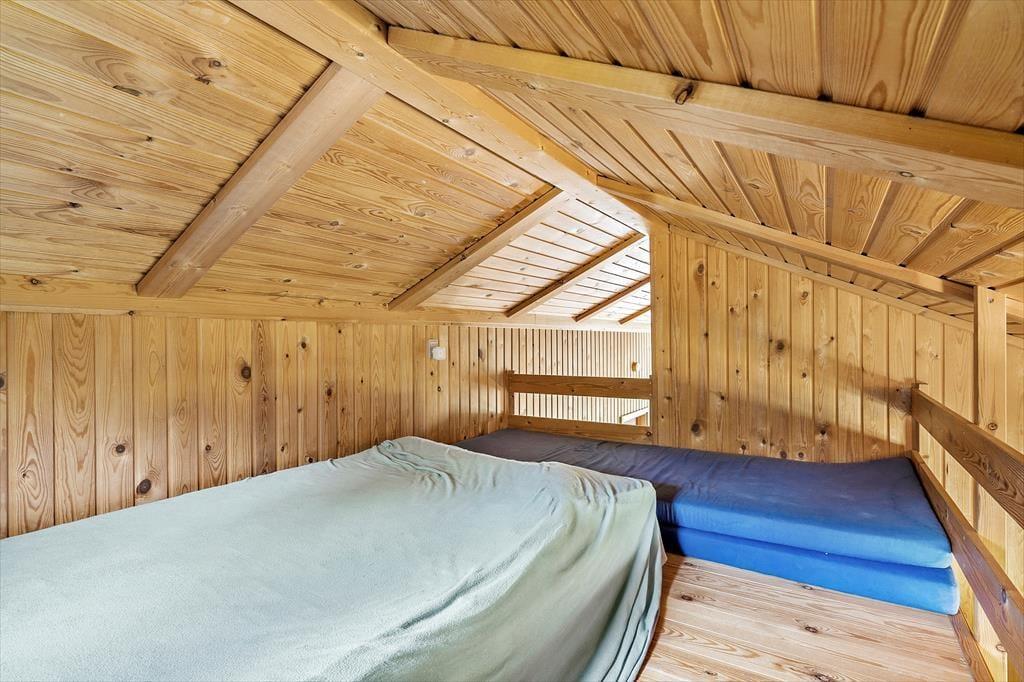 Huset ligger omgivet af en skovlignende bevoksning, der skaber en dejlig ramme for fred og ro. Den store terrasse inviterer til afslappende stunder, hvor du kan nyde solen eller tage et måltid under åben himmel. Grillen står klar til at gøre aftensmaden ekstra hyggelig, og børnene kan trygt lege på grunden, som er skærmet af den naturlige bevoksning. Hvis du har hund med, vil den elske at snuse rundt blandt træerne og buskene, der omkranser sommerhuset.
