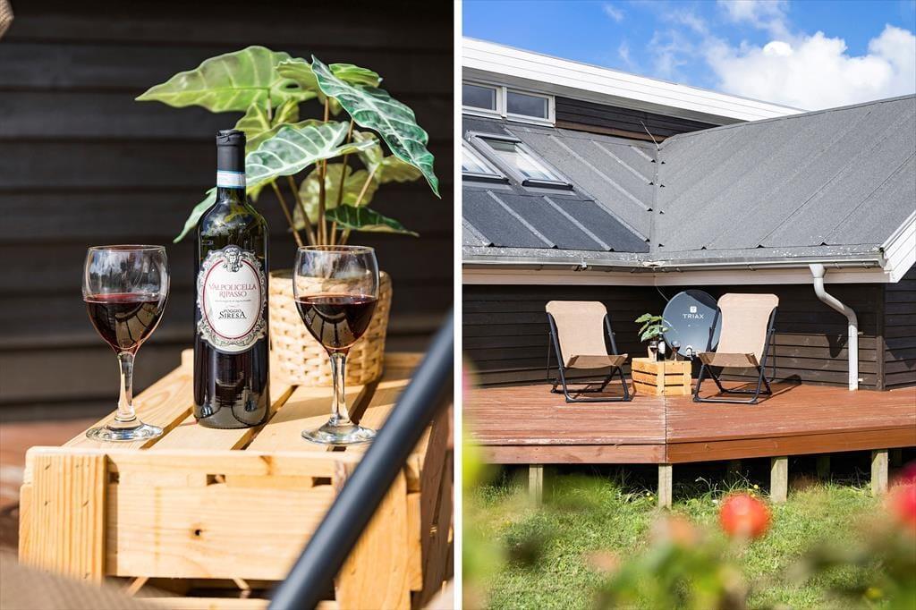 Udelivet er i centrum, når du holder ferie i dette sommerhus. Den store, åbne grund giver masser af plads til både leg og afslapning – og her er højt til himlen og fredeligt omkring dig. På den store terrasse, som både har åbne og overdækkede sektioner, kan du finde sol og læ hele dagen. Der er rigeligt med plads til liggestole, spiseplads og måske en grillmiddag i det fri, mens du nyder solens varme og lyden af vinden i marehalmen. Børnene har god plads til at boltre sig, og naturen omkring huset skaber en afslappende kulisse til både formiddagskaffe og aftenstunder under stjernerne. Her får du følelsen af frihed og nærvær – og plads til at trække vejret helt ned i maven.