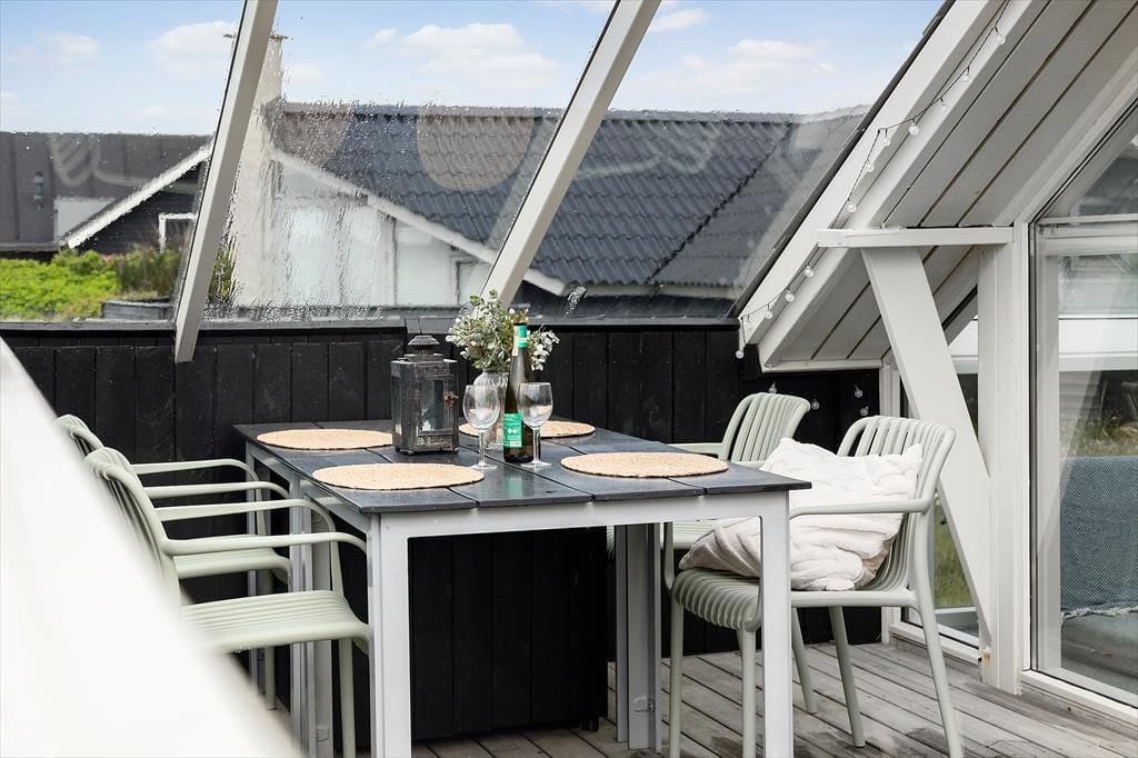 Sommerhuset byder på et skønt terrassemiljø, der strækker sig mod syd og øst, perfekt orienteret i forhold til solen. Den 75 m² store terrasse er afskærmet med hegn, hvilket skaber en privat og tryg oase for både børn og voksne. Her kan du slappe af i liggestolene med en god bog, mens fuglene kvidrer i baggrunden, eller samle familien til en hyggelig grillaften under åben himmel. Den lukkede terrasse gør det også ideelt for børnefamilier, da de mindste kan lege frit i sikre omgivelser.