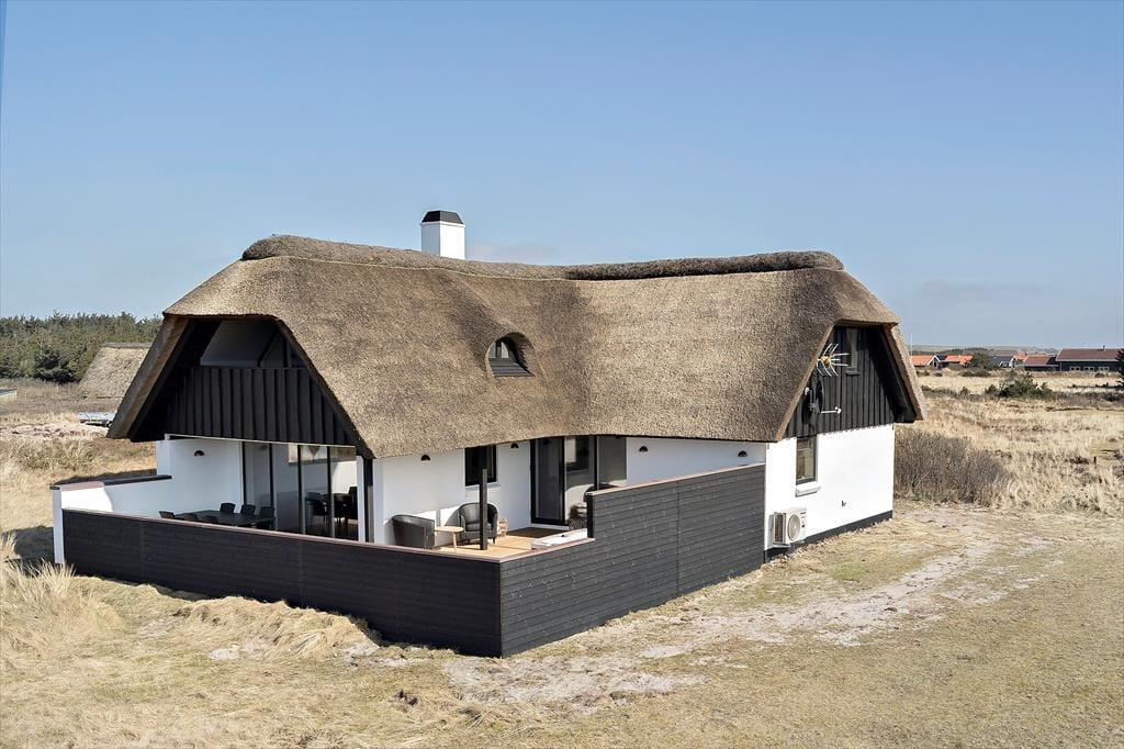 På Merchantvej 5 i Vejlby Klit Strand ligger et sommerhus, der forener klassisk charme med moderne komfort. Det flotte stråtag og den hyggelige atmosfære giver stedet en helt særlig stemning, som indbyder til ægte feriehygge – og med kun 200 meter til Vesterhavets bølger er det nemt at komme helt ned i gear. Det rummelige sommerhus fordeler sig over to plan og byder på både indendørs sauna og udendørs spa samt et aktivitetsrum, hvor hele familien kan more sig. Her er plads til nærvær og afslapning – og selvfølgelig er hunde også velkomne.