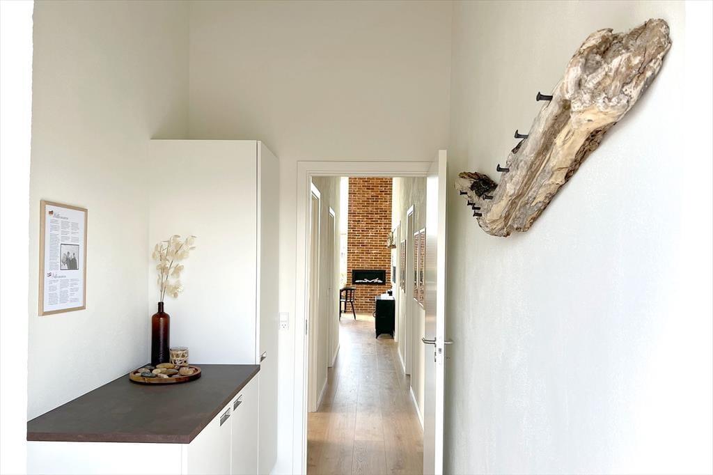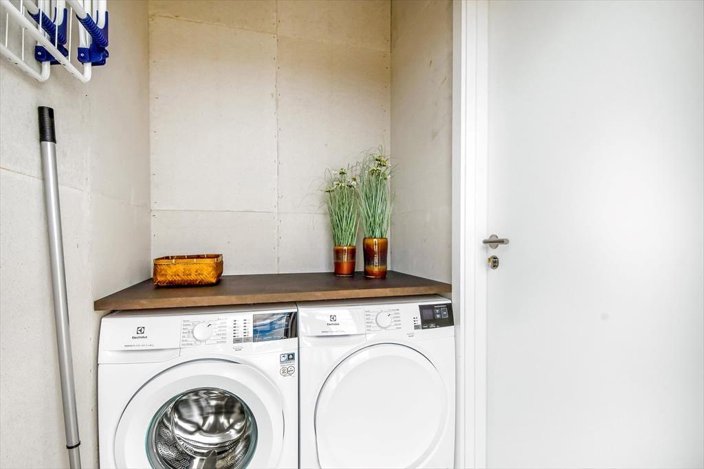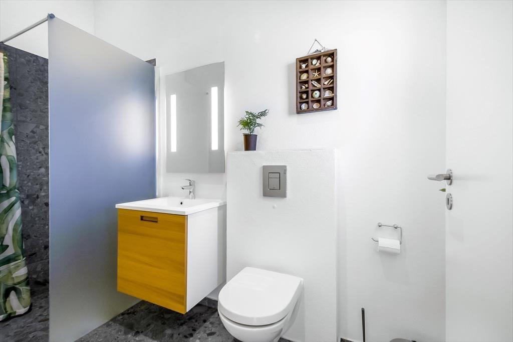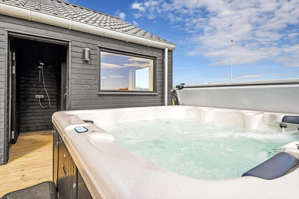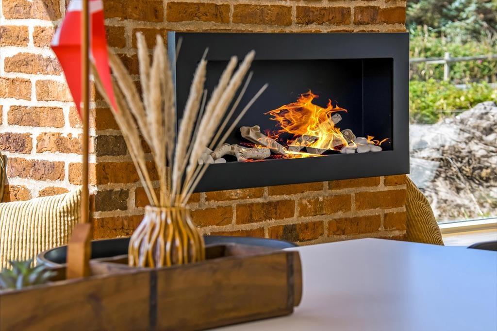 Indenfor bliver du mødt af et sommerhus, der udstråler kvalitet og ro. Det moderne interiør er præget af lyse farver, rene linjer og store vinduespartier, som inviterer den omkringliggende natur helt tæt på. Det åbne opholdsrum samler køkken, spiseplads og stue i ét – et oplagt sted til både madlavning, hyggesnak og fælles stunder foran brændeovnen. Når dagen lakker mod enden, kan du lade kroppen slappe af i det indendørs spabad eller nyde varmen i saunaen – den perfekte afslutning på en dag med frisk luft og vind i håret. Det er et sommerhus, hvor du straks føler dig hjemme og får lyst til at blive lidt længere.