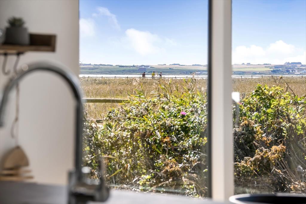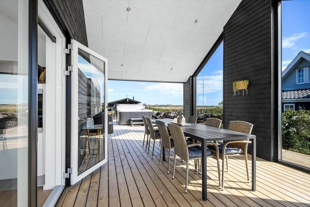 Udelivet er noget helt særligt på Vejlby Klit 393. Fra den store, delvist overdækkede træterrasse kan du nyde udsigten over Ferring Sø, mens du sidder i det varme udendørs spabad eller slapper af i en solrig krog med en god bog. Terrassen skaber de perfekte rammer for morgenkaffe, grillmiddage og afslapning under åben himmel – og med plads til både fællesskab og fredelige stunder. Uanset årstiden er det let at finde ro i de naturskønne omgivelser, og med stranden kun et stenkast væk, har du altid Vesterhavets brusen som baggrundsmusik. Det er også nemt at have hund med, så hele familien kan være samlet om de gode oplevelser.