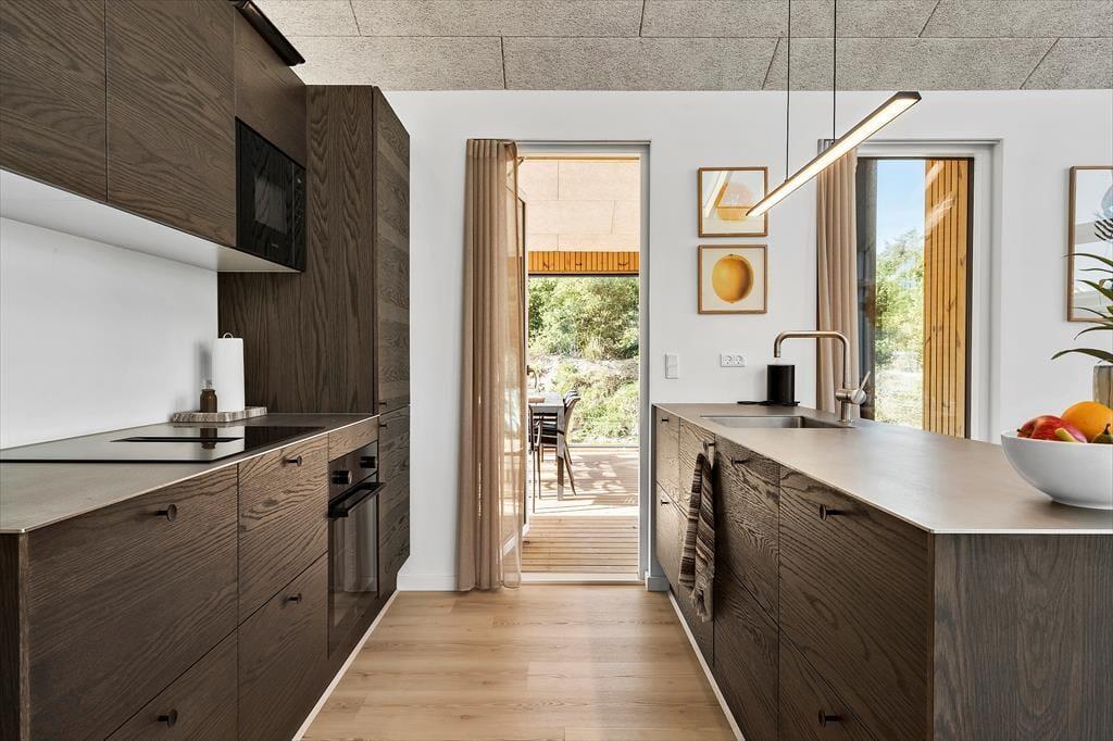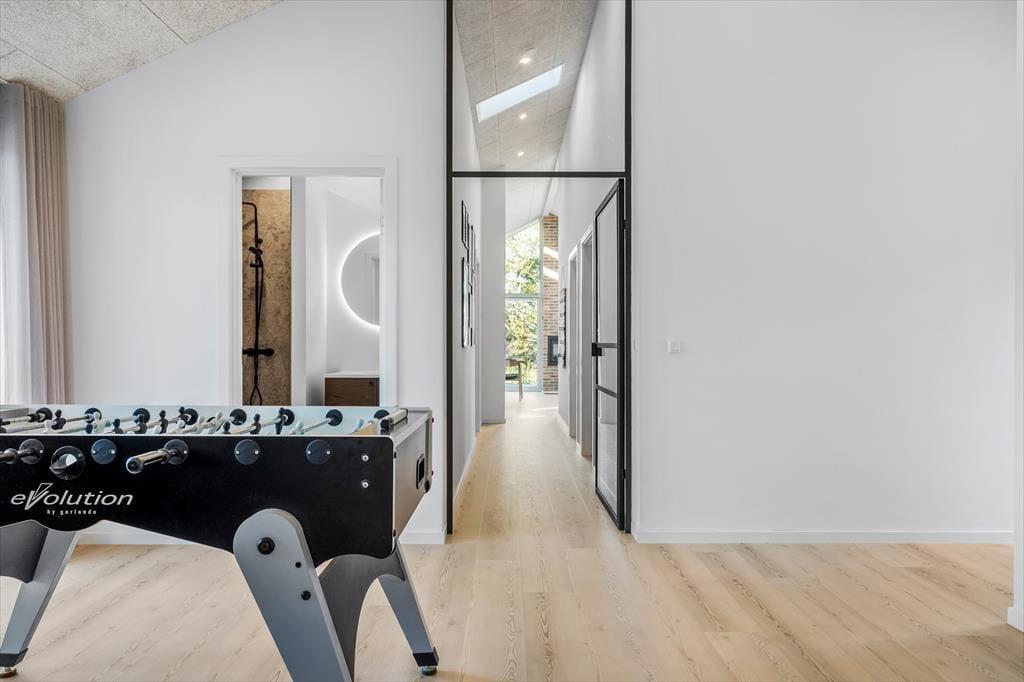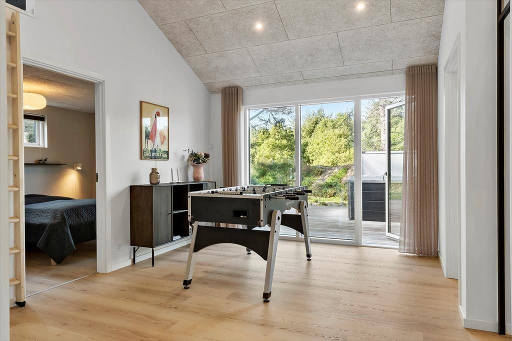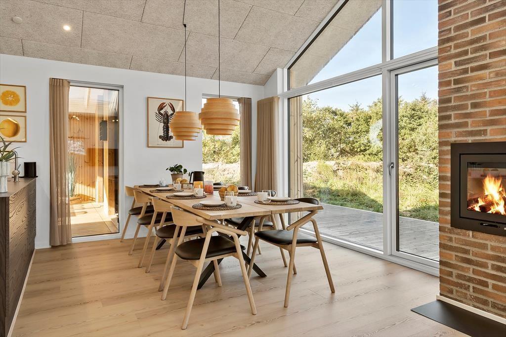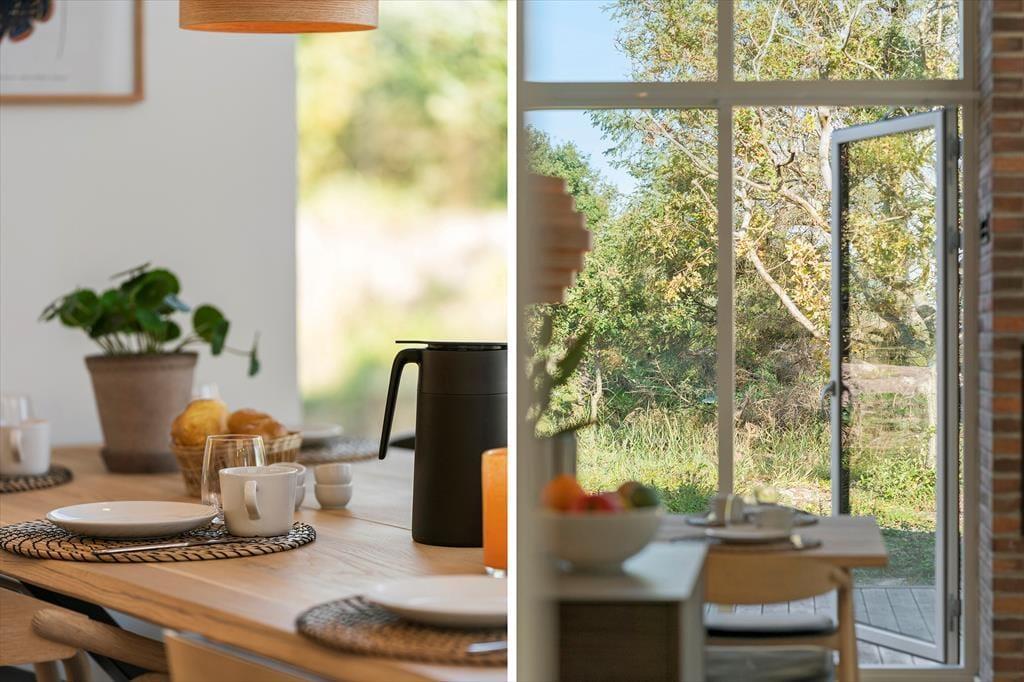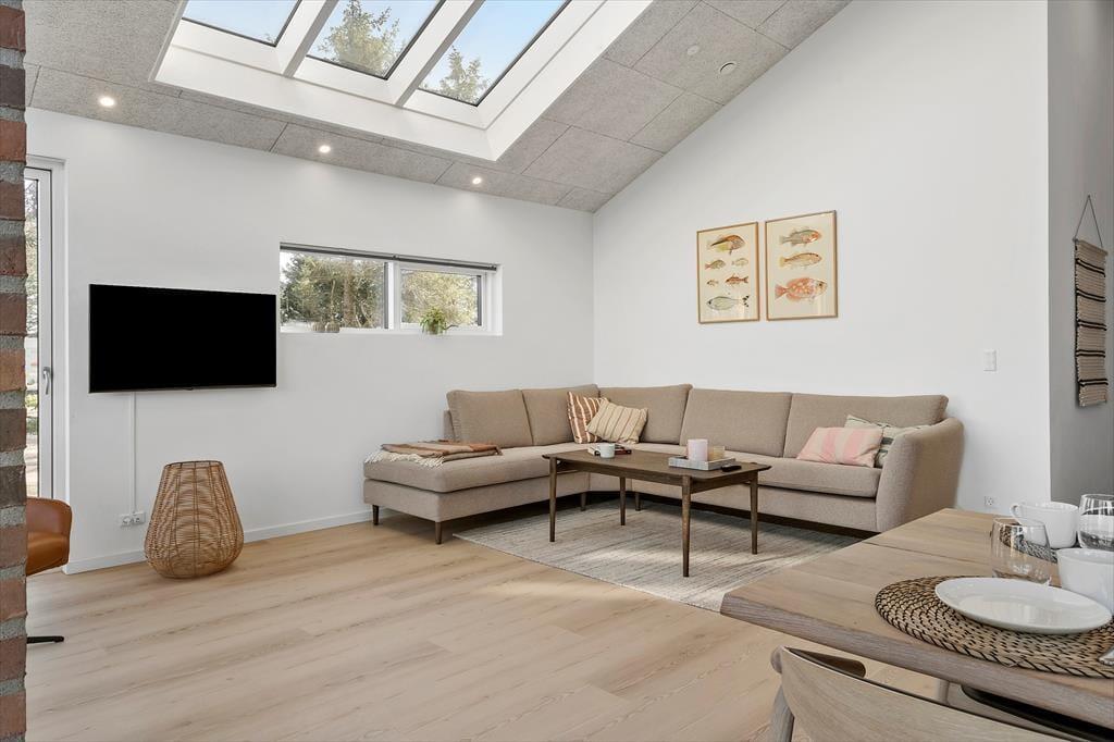 Når du træder indenfor, mødes du af et helt nyt sommerhus, hvor alt er indrettet med tanke på både komfort og æstetik. Lyse farver og moderne materialer skaber en indbydende atmosfære, hvor der er plads til både afslapning og hyggeligt samvær. Det åbne køkken-alrum bliver husets naturlige samlingspunkt, og den rummelige stue indbyder til filmaftener og lange brætspilssessioner. Når aftenen falder på, kan du glæde dig til at trække dig tilbage til et af de rolige soveværelser, hvor skovens fredfyldte omgivelser luller dig i søvn. Sommerhuset er ideelt for både små familier og par, der ønsker at forkæle sig selv med en moderne og veludstyret feriebolig.