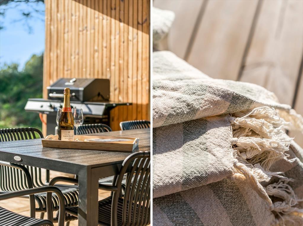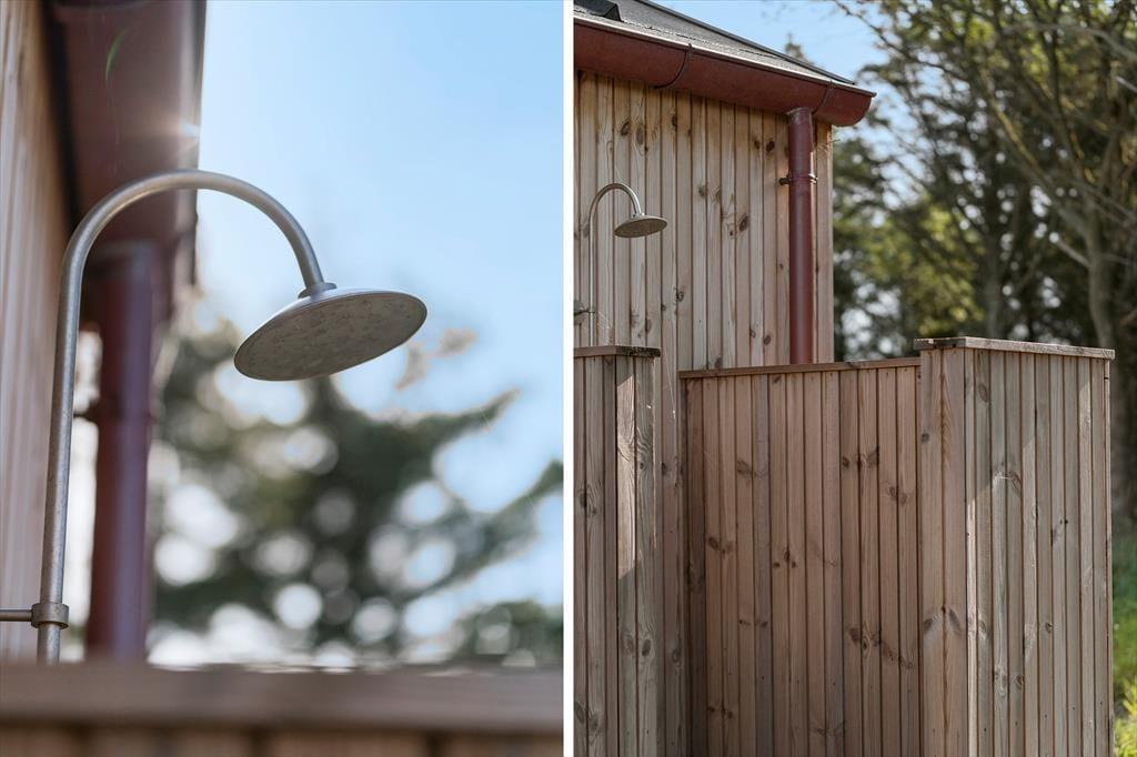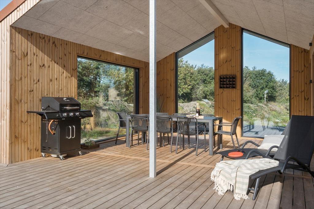 Udenfor venter sommerhusets hyggelige terrasseområder, der er omgivet af skovens høje træer. Her kan du nyde morgenkaffen i ro og mag, mens fuglene kvidrer i baggrunden. Om aftenen kan I samles omkring grillen til et lækkert måltid under åben himmel. De rolige omgivelser skaber en helt særlig stemning, der indbyder til nærvær og afslapning.