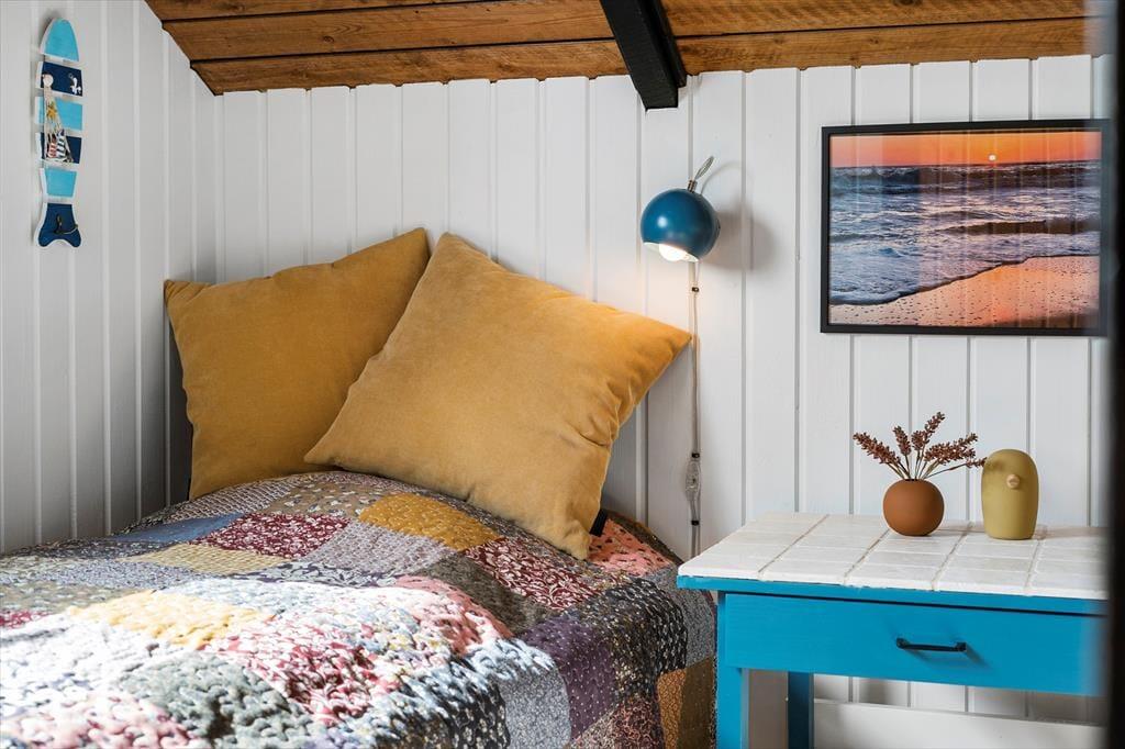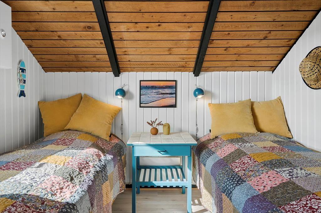 Leder du efter et sommerhus, hvor naturens ro og indretningens charme går op i en højere enhed? Så er huset på Vejlby Klit 291 et oplagt valg. Beliggende fredeligt på en lukket vej i hjertet af Vejlby Klit – lige mellem Vesterhavet og Ferring Sø – finder du her et sommerhus med både karakter, komfort og en beliggenhed, der gør det nemt at koble helt af. Huset emmer af stemning med loft til kip, brændeovn og smukke, rustikke trælister på væggene – og den indhegnede grund gør det ekstra trygt at holde ferie med hund.