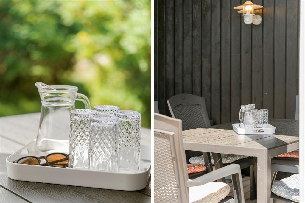 Den grønne grund er omkranset af tætte hybenbuske, der giver en liflig duft, er kønne at kigge på og skærmer af ind mod naboerne. Græsplænen indbyder til leg og boldspil, hvis børnene ikke hellere vil smutte over på den nærmeste legeplads, og på terrassen har du og dine kære god plads til solbadning, siestaer og velduftende middage tilberedt på grillen. En del af terrassen er overdækket, hvis du foretrækker skygge, når solen står højt på himlen - og når tusmørket begynder at brede sig, er det måske også her, I skal sidde for at nyde den fredfyldte sommeraften.