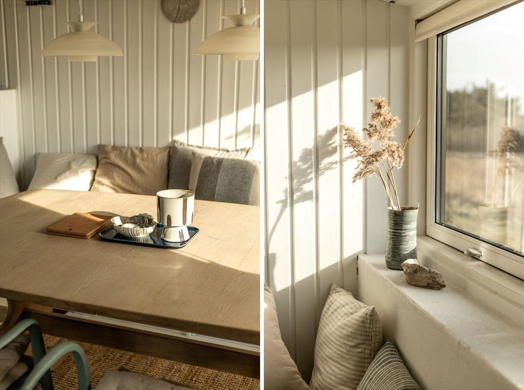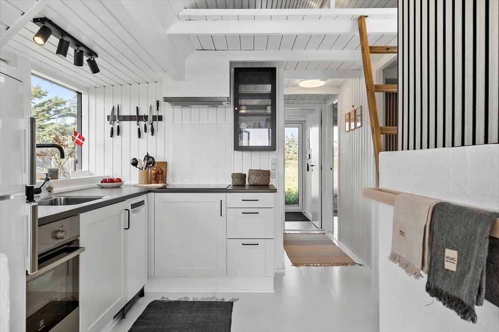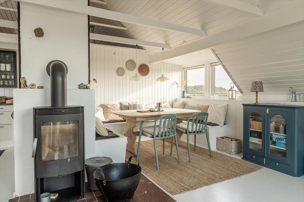 Træd indenfor i et sommerhus, der emmer af charme og hygge. Indretningen er enkel og indbydende med fokus på at skabe en afslappet atmosfære, hvor du kan nyde kvalitetstid med dine nærmeste. Husets hjerte er den hyggelige opholdsstue, der ligger i åben forbindelse med køkkenet – et oplagt sted at samles til en god snak over en kop kaffe eller et spil kort efter dagens oplevelser. Hemsen ovenpå tilbyder et lille fristed med udsigt over stuen, hvor børnene kan finde deres egen plads til leg og afslapning.