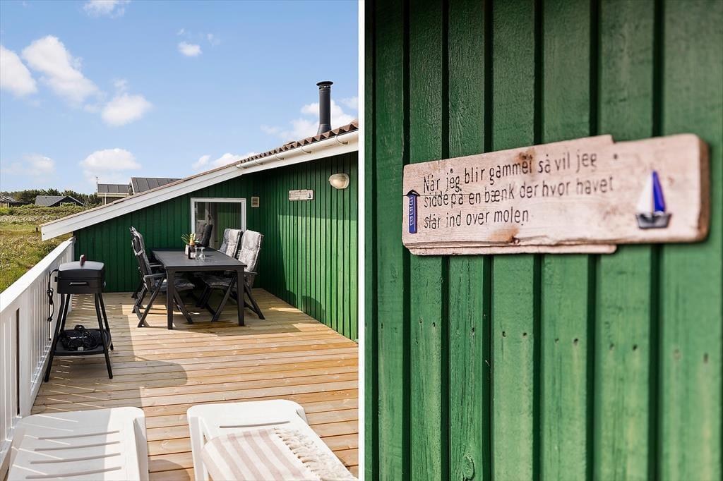 Sommerhusets store naturgrund er en af dets absolutte perler. De to terrasser – en sydvendt og en østvendt – giver mulighed for at nyde solen hele dagen. Den lukkede terrasse er ideel, hvis du har små børn eller hunde med, da den giver trygge rammer for leg og ophold. Fra terrasserne kan du nyde den betagende udsigt til klitterne, mens du lytter til fuglenes kvidren og mærker den friske havluft. Om aftenen kan du tænde op i grillen og nyde et lækkert måltid under åben himmel.