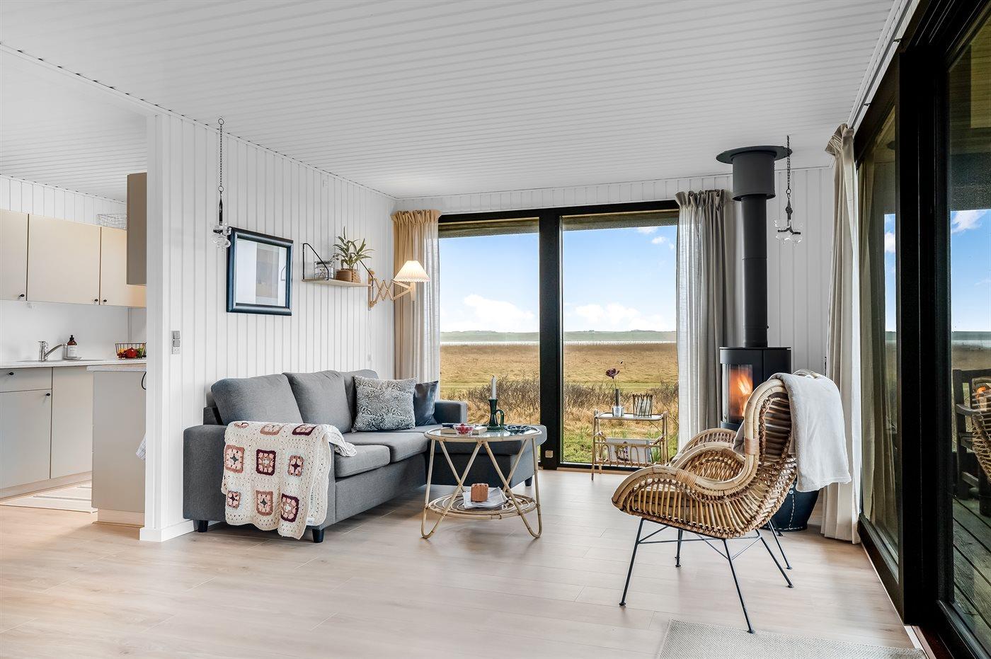 Få en uforglemmelig ferie i dette skønne og smagfuldt indrettede feriehus. Lad stress og bekymringer forsvinde, når du sidder i sofaen og kigger ud over Ferring Sø - det er som meditation for krop og sjæl. En tur til Vesterhavet kan også gøre godt, og der er absolut ikke langt til det blæsende hav, som er evigt foranderligt.