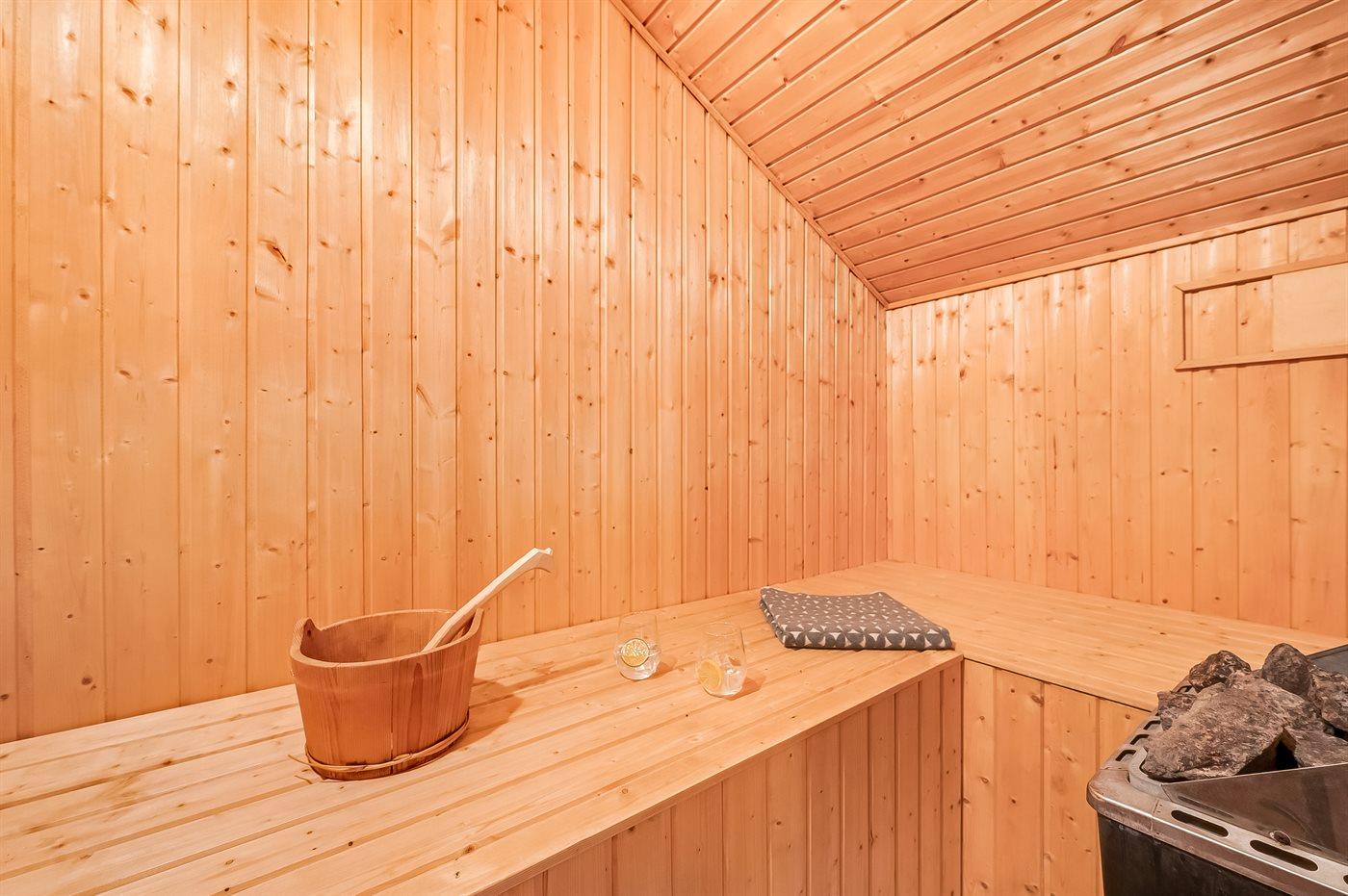 Der er 1 badeværelse med bruseniche og 1 toilet.. Der er gulvvarme på 1 badeværelse. I saunaen er der mulighed for afslapning.