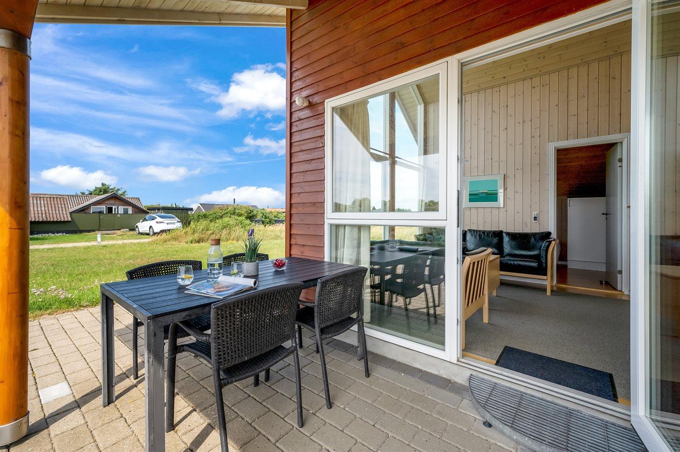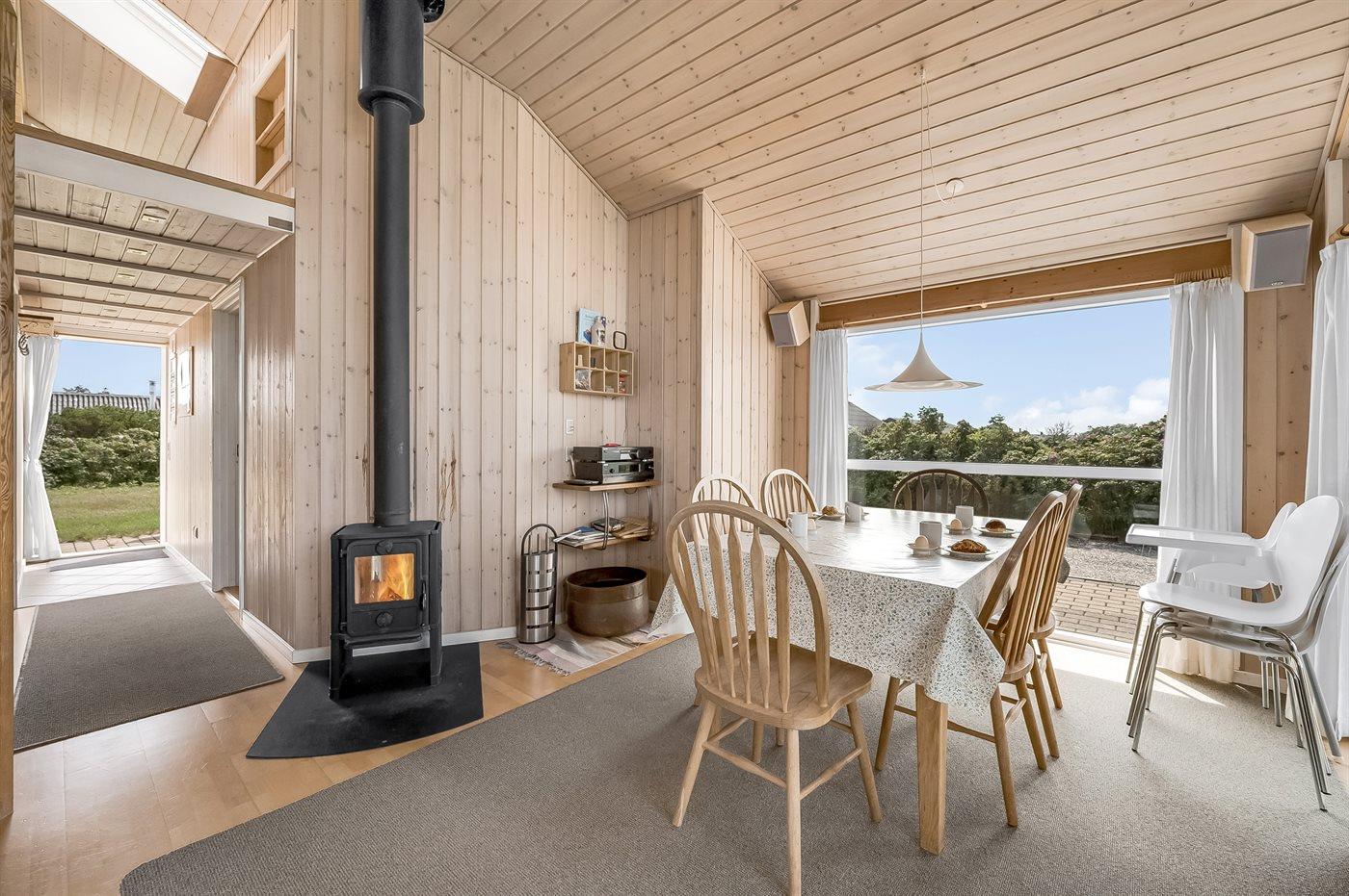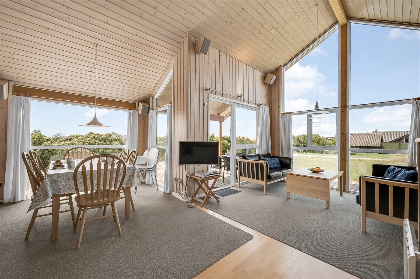 Kun 5 min. gang fra Vesterhavet, med dejlig sandstrand, ligger dette højisolerede og smagfuldt indrettede sommerhus i træ, bygget i 2004.