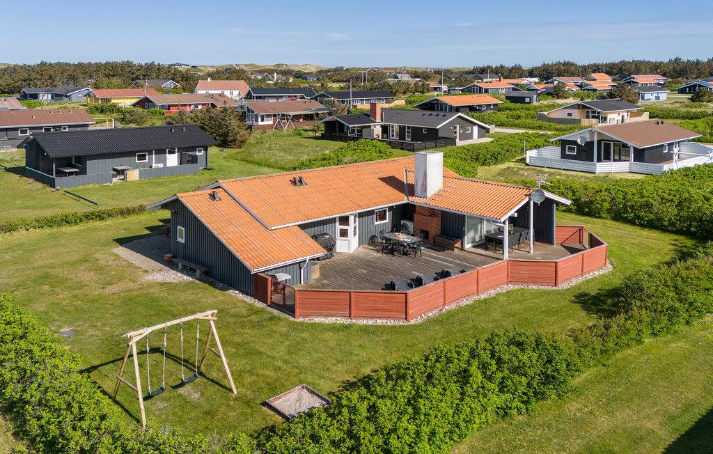 Dette flotte feriehus med plads til to familier, ligger på en stor, åben klitgrund kun få hundrede meter fra såvel Vesterhavet som Ferring sø. Det er flot og komfortabelt indrettet med bl.a. spabad og sauna. Som supplerende varmekilde kan I benytte brændeovnen, der udover at give en skøn varme, medvirker til en hyggelig atmosfære på de kolde dage, endvidere er der varmepumpe i huset. Fra stuen kan I gå direkte ud på den store, indhegnede terrasse, der indbyder til afslapning i timevis på de dejlige sommerdage. Den naturskønne egn har et rigt dyreliv, og er ideel til cykel- og spadsereture.