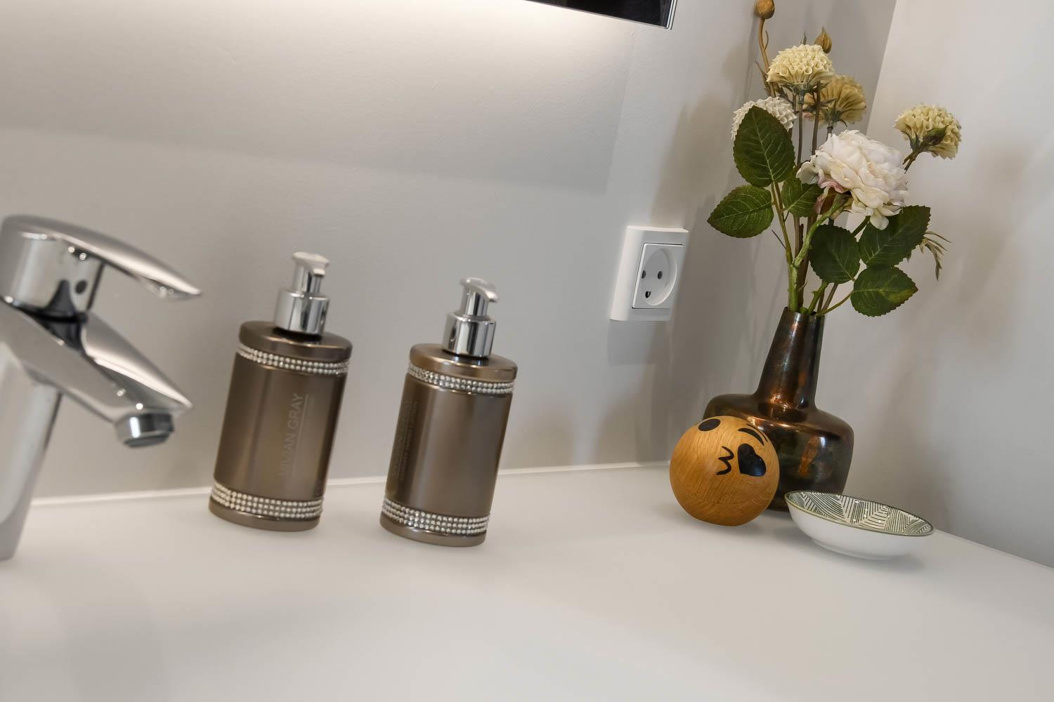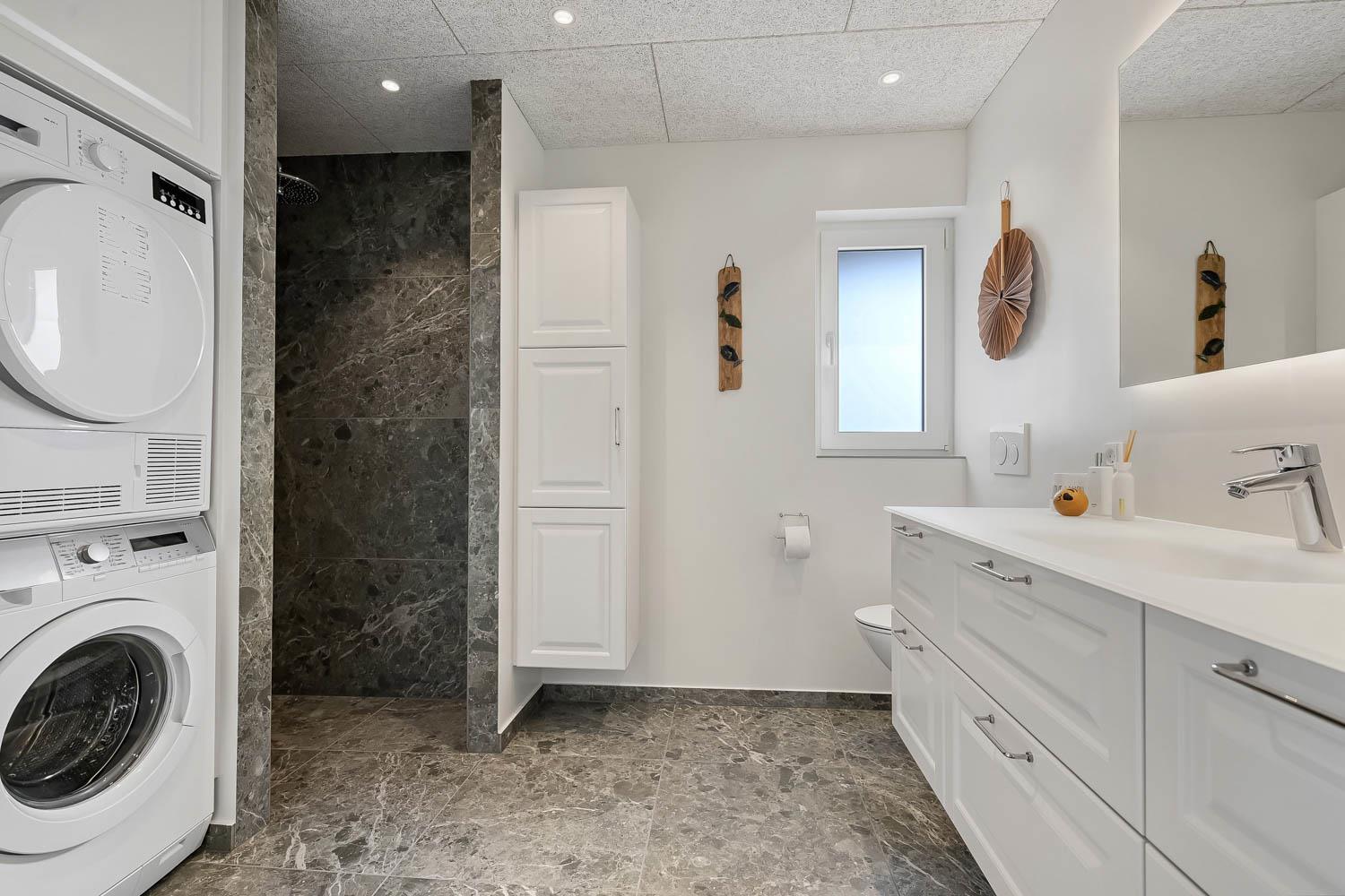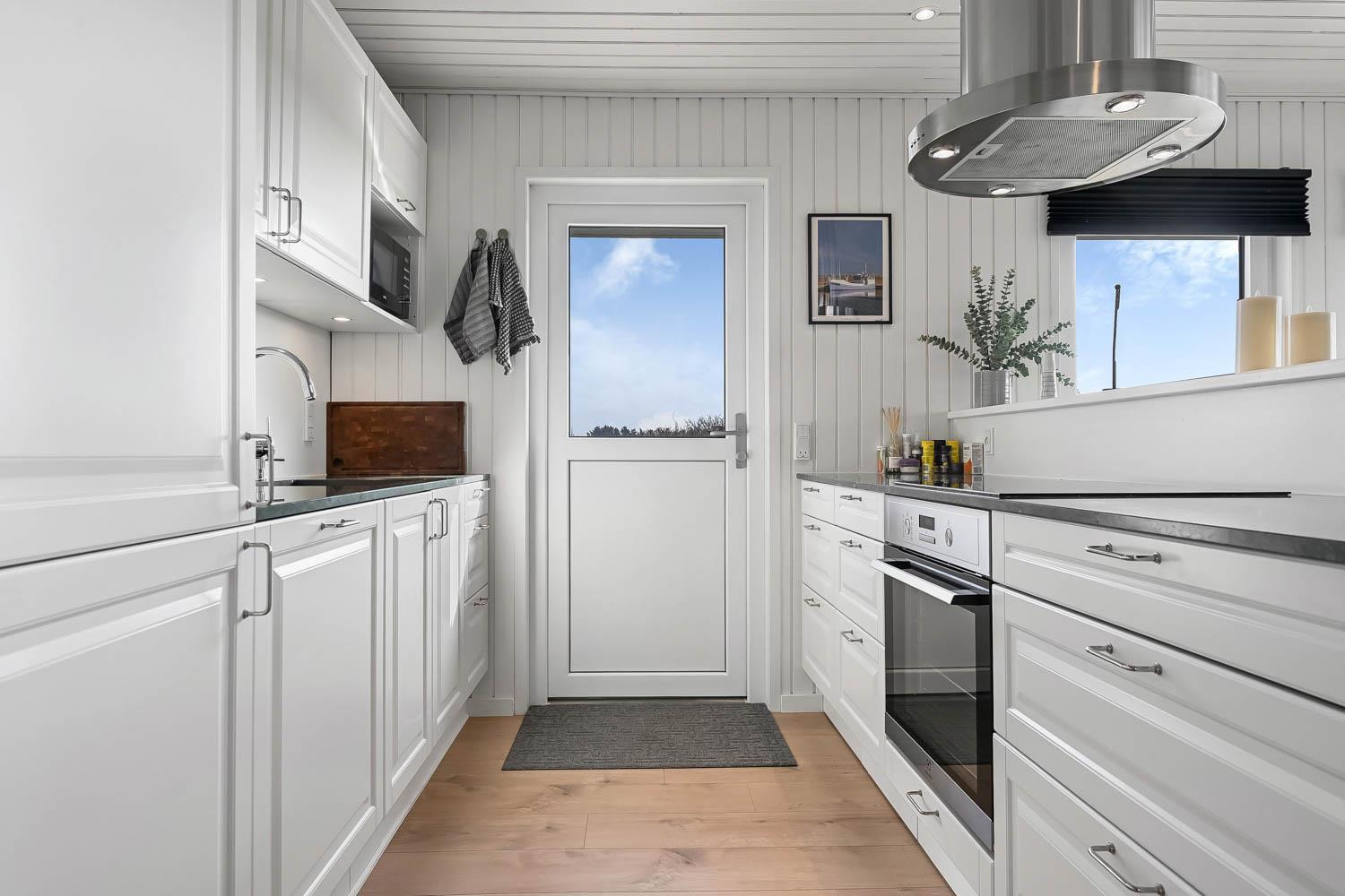 Husets stue og køkken er i samme rum og fra stuen er der direkte adgang til det store terrasseanlæg, som vender mod syd ved indgangen til stuen. Køkkenet har glaskeramisk komfur med emhætte, køle-fryseskab, mikrobølgeovn og en opvaskemaskine. Mellem stuen og køkkenet står spisebordet med stole og i enden af huset ligger selve stuen. Her er der sofagruppe med stuebord. Brændeovn og varmepumpe søger for at alle kan holde varmen året rundt og samtidig kan spare på forbruget. Der er ligeledes et smart-tv med mulighed for at se tysk og dansk TV, DVD-afspiller samt streaming af TV, radio og apps via Chromecast. Herudover er der også CD-adspiller og radio hvis man for eksempel ønsker noget baggrundsmusik til hyggen. Badeværelset med klinkegulv med gulvvarme, bruser, vaskemaskine, tørretumbler, toilet, håndvask. Der er 3 soveværelser i huset (1DS, 1DS, 1DS). Ikke-ryger hus. Husdyr ikke tilladt.