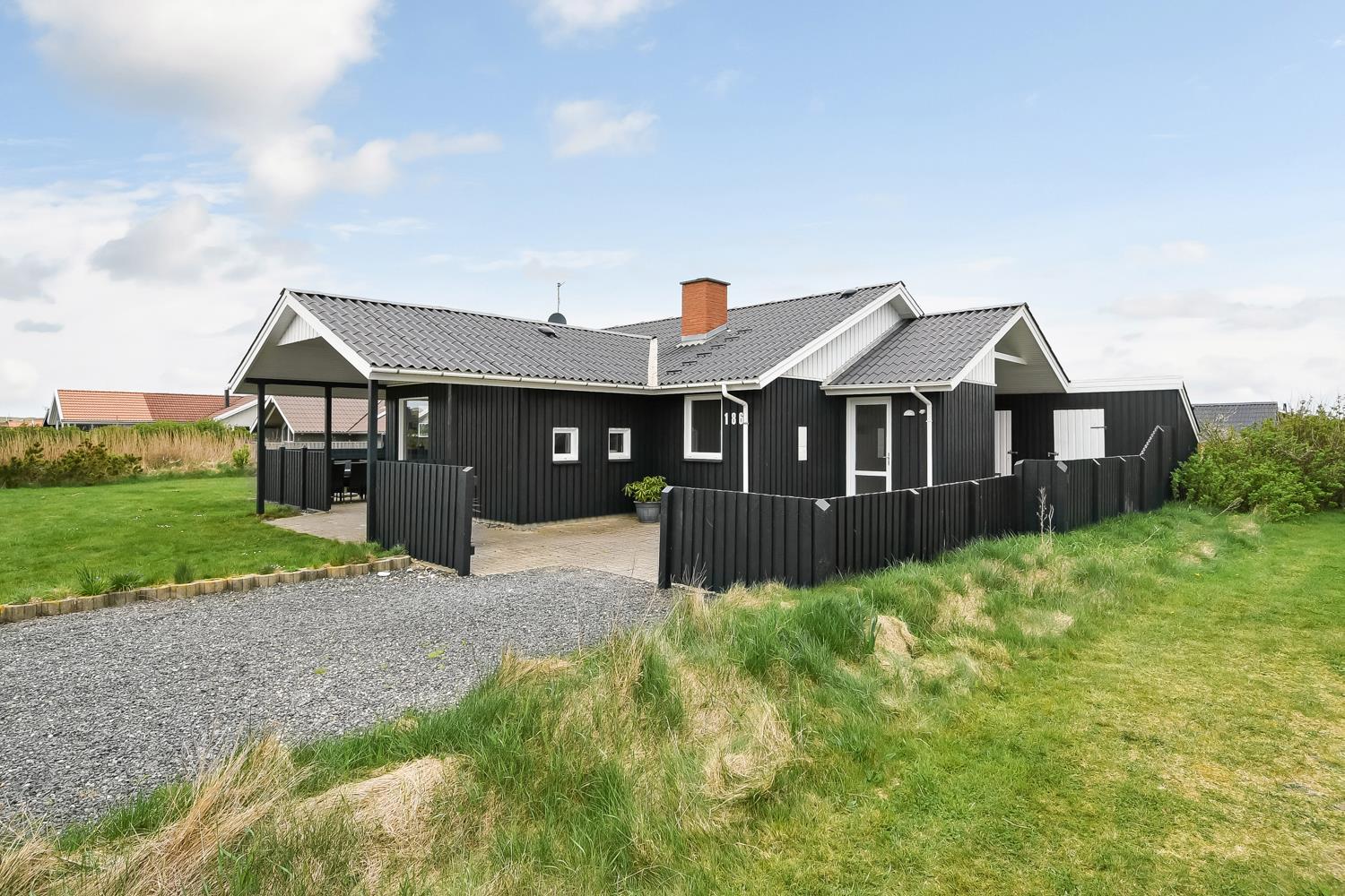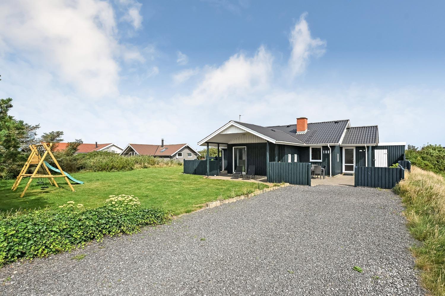 Rummeligt, moderniseret træhus med udsigt til de høje klitter ved Vesterhavet. Huset har gratis Internet og ligger i gåafstand til både Ferring sø og Vesterhavet samt købmand og spisested i sæsonen.