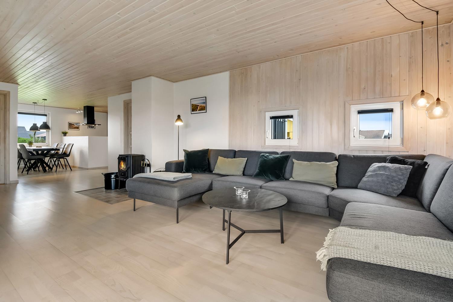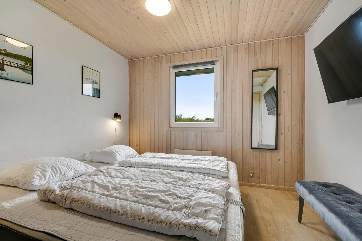 Dejligt træhus på 103 m2 med 3 gode soverum (1DS, 1DS, 2ES). Alle soverum har nye, gode senge, TV med Chromecast og god opbevaringsplads. Mellem værelser ligger et dejligt badeværelse med klinkegulv med gulvvarme, vaskemaskine, tørretumbler, toilet, håndvask, bruseniche, spabad og direkte adgang til sauna. Ekstra toilet med gulvvarme, toilet og håndvask. Stor opholdsstue med masser af plads, nye polstermøbler, Smart TV tyske programmer og mulighed for app´s og radio/CD afpiller. Brændeovn og varmepumpe til de kolde aftener og til at minimere strømregningen. Hyggelig spisekrog med et flot spisebord og dejlige stole. Helt nyt køkkenhjørne med komfur med keramiske kogeplader, emhætte, mikroovn, opvaskemaskine, køleskab med fryseboks og masser af service køkkengrej. Entré med aflægge- og afhængeplads til både tøj og fodtøj m.m. Barneseng, puslepude og højstol til børnene. Ikke Ryger hus. Max 2 husdyr tilladt.