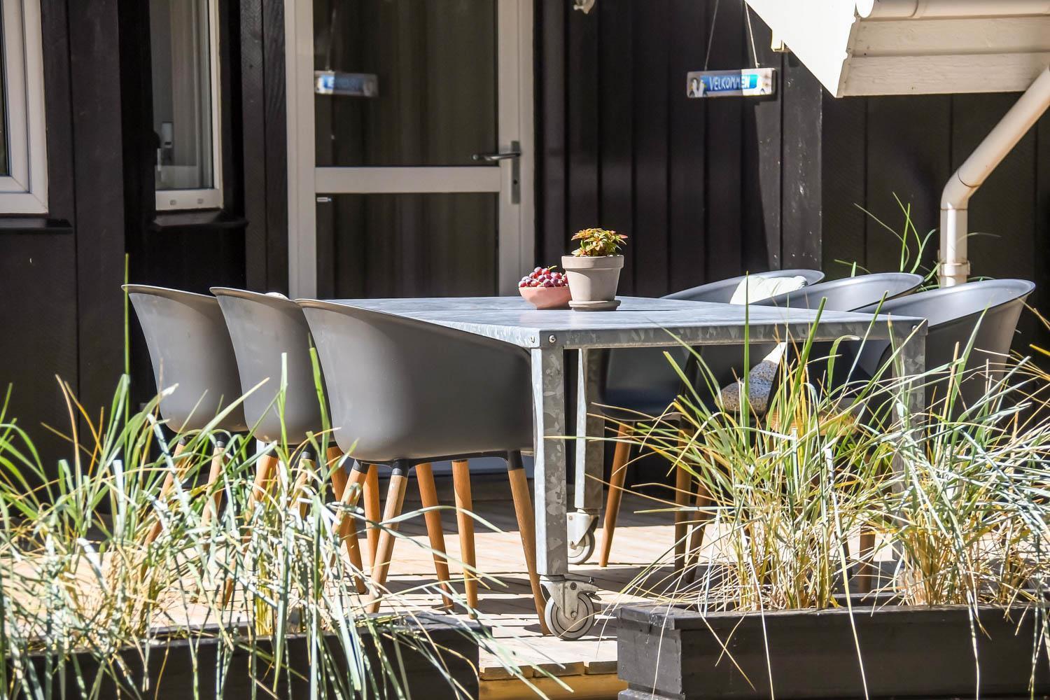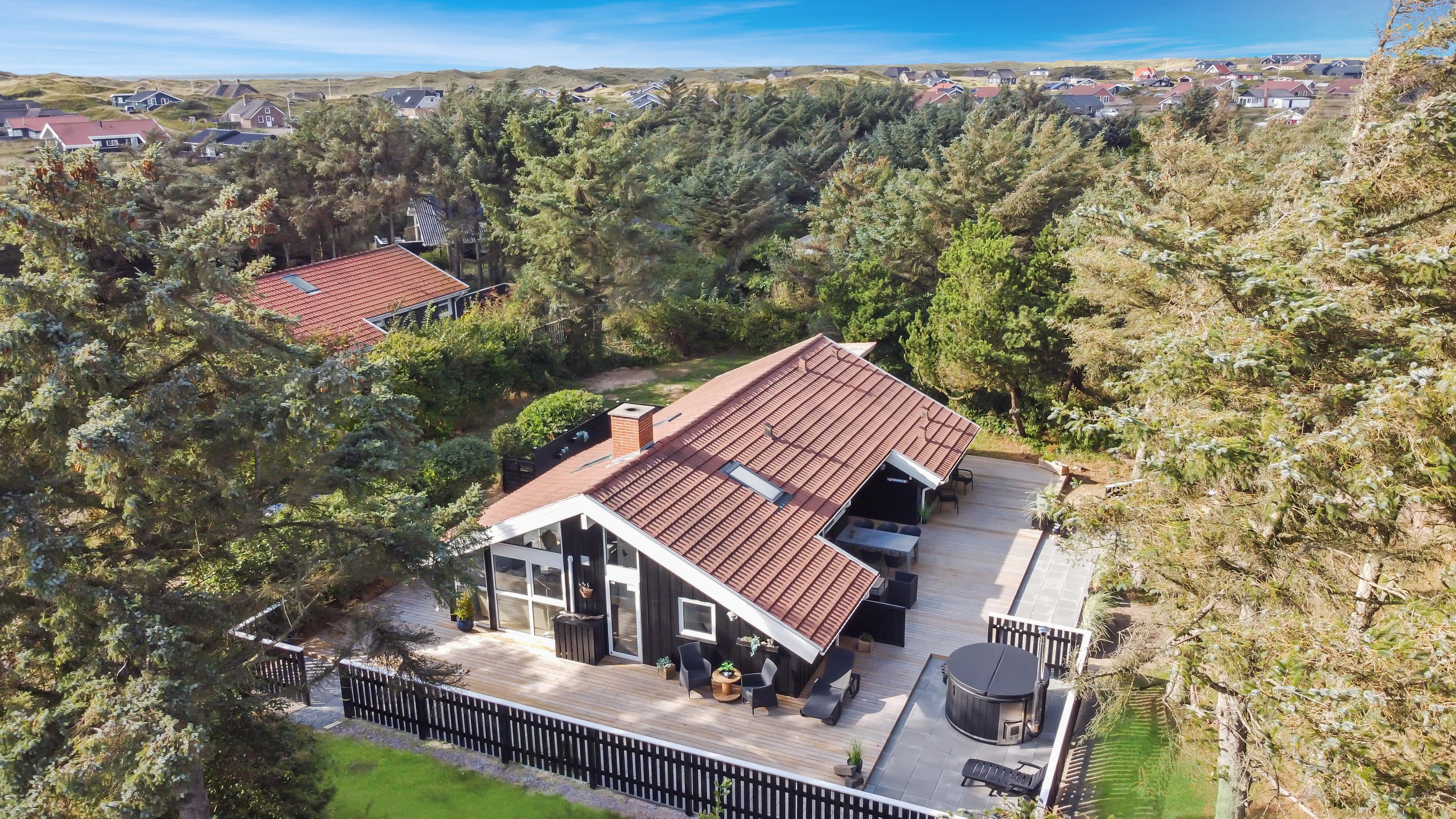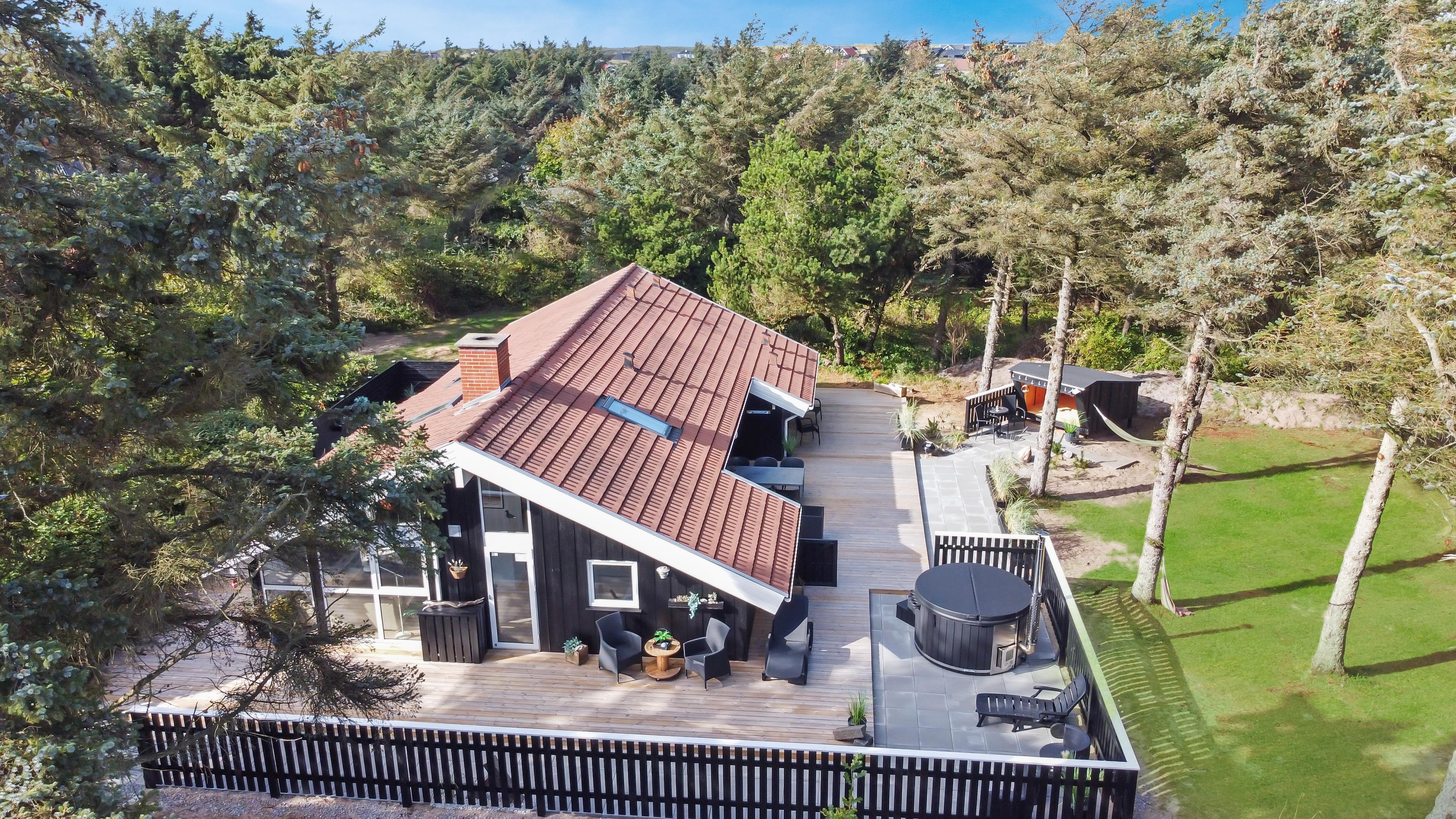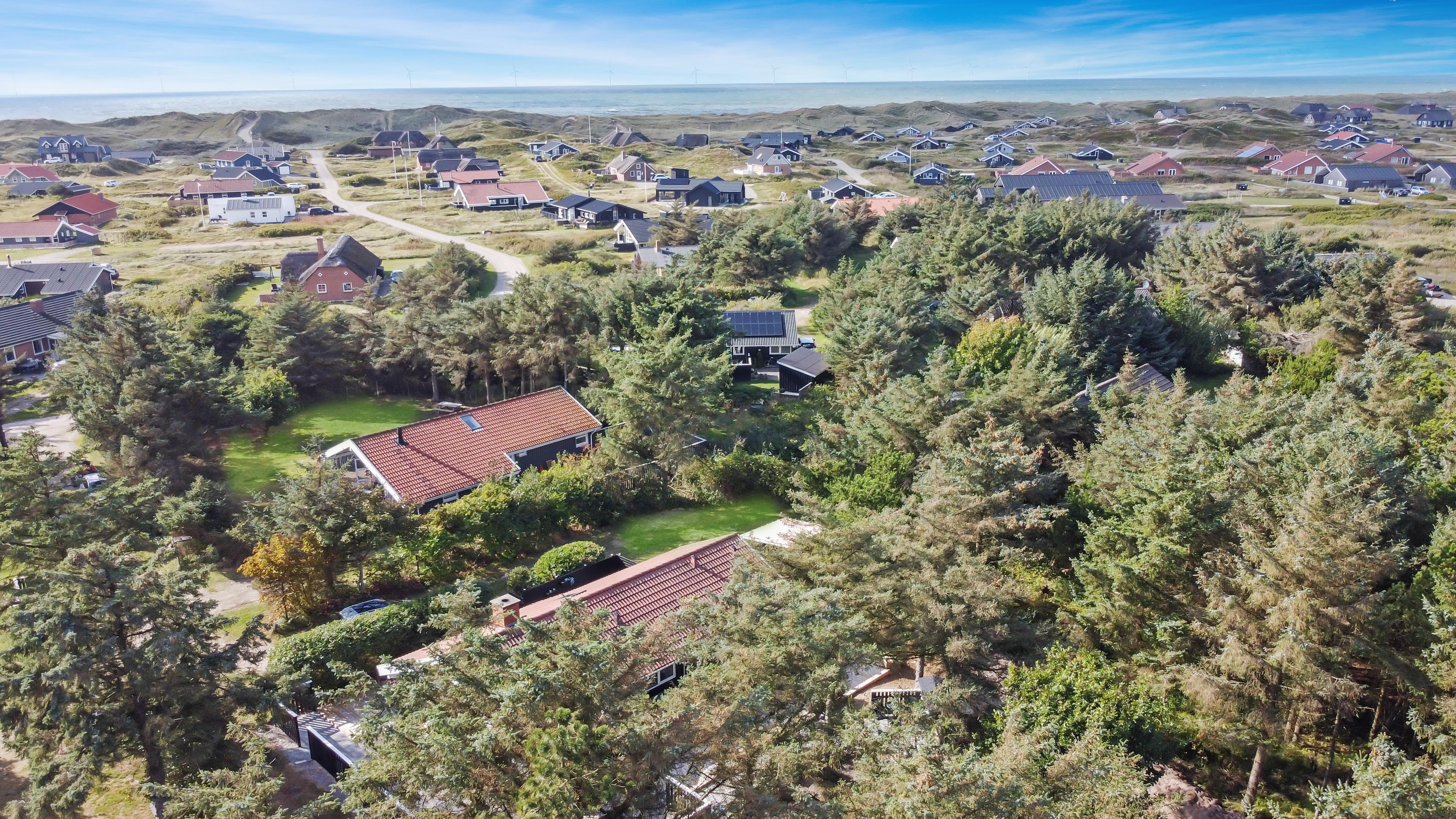 Dette skønne feriehus er beliggende på en fantastisk sydvendt grund på ca. 1.200 m2 med mange solkroge og mulighed for læ. Der er kun 350 meter fra Vesterhavet i det populære område Viktoriavej. Der er en stor terrasse med havemøbler, solvogne og grill, og det er altid muligt at finde en plads i solen. Som noget ganske specielt er der på den private grund også en wellnessafdeling udenfor med et udendørs vildmarksbad, som opvarmes med brænde. Få meter fra terrassen står den hyggelige shelter med plads til fire personer.