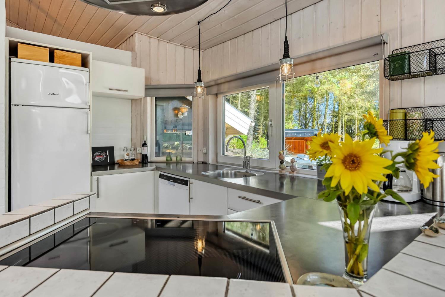 Træd ind i dette skønne og rummelige feriehus på 100 m2, hvor komfort og hygge mødes. Der er tre godt indrettede soveværelser (1DS, 1DS, 2S). Herudover er der også en hyggelig hems med plads til yderligere tre personer. En rigtig lille hule, som børnene vil elske. Der er rigeligt med plads til hele familien eller gruppen af venner – der er plads til 8 personer. Den åbne opholdsstue, flot indrettet i lyse og venlige farver, med det lækreste lys fra ovenlysvinduerne inviterer til afslapning i det hyggelige sofahjørne foran den knitrende brændeovn. I kan nyde jeres yndlingsfilm på TV med danske og tyske kanaler. Den opsatte varmepumpe sørger for fantastisk indeklima året rundt og bidrager til en energisparende opvarmning af huset. Køkkenhjørnet er udstyret med alt, hvad I behøver for at tilberede lækre måltider. Samtalekøkkenet har alt i service, køkkengrej, opvaskemaskine, keramiske kogeplader, indbygningsovn, køle-/fryseskab og emhætte. Spisearrangementet er praktisk placeret lige ved køkkenet og giver jer mulighed for at dele uforglemmelige øjeblikke sammen.