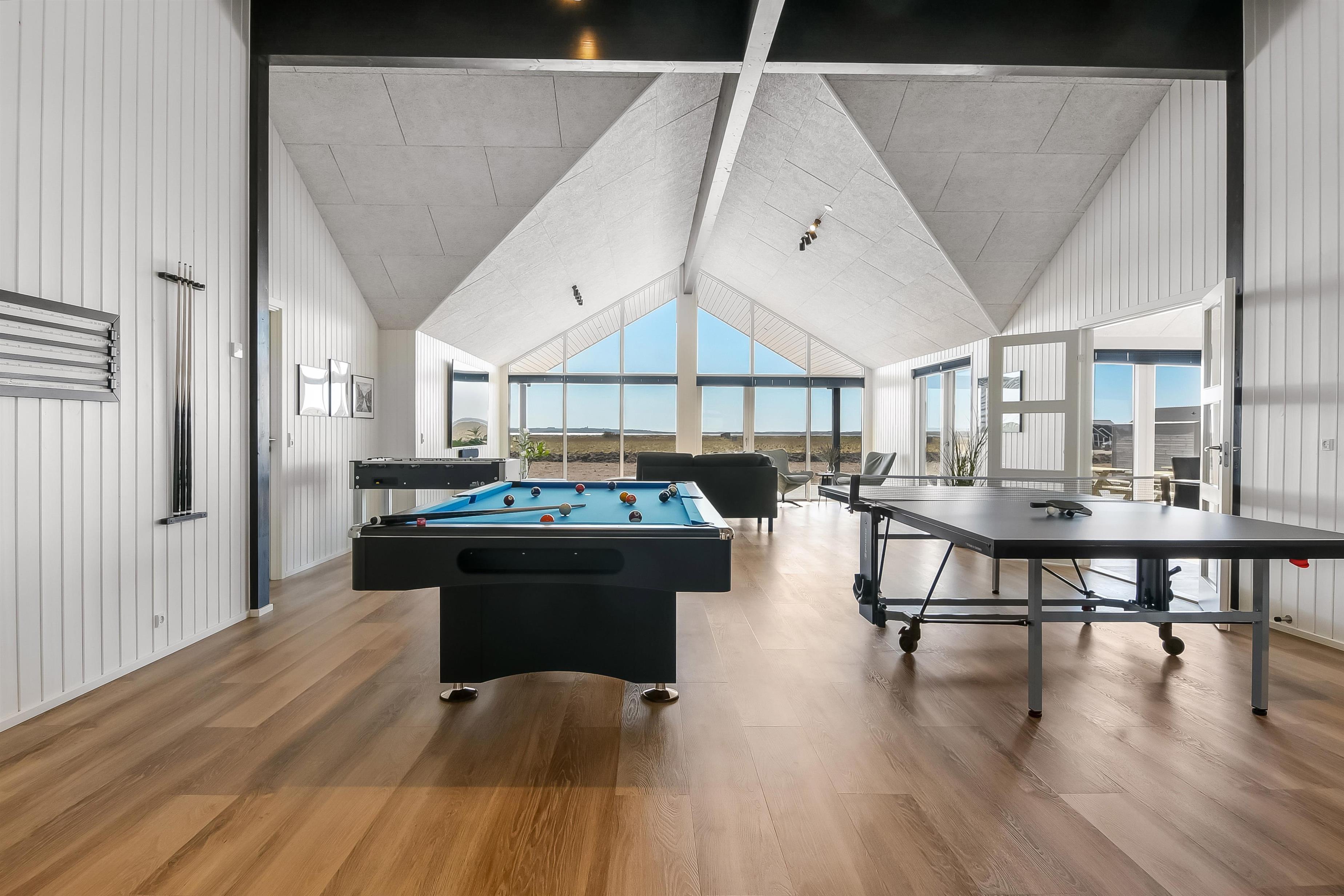 Fuldstændig unikt og godt beliggende, nybygget luksushus. Huset er bygget tæt ved Ferring Sø. Der er bl.a. pool, Udendørs spa, udendørs sauna, gratis WLAN og aktivitetsrum med bl.a. bordtennis, billard og bordfodbold. Et hus med plads til 26 personer, så hvad enten det er flere familier som rejser sammen eller om det er kolleger, så er der rigeligt plads til en rolig stund, en plads i solen eller konkurrencer i aktivitetsrummet.