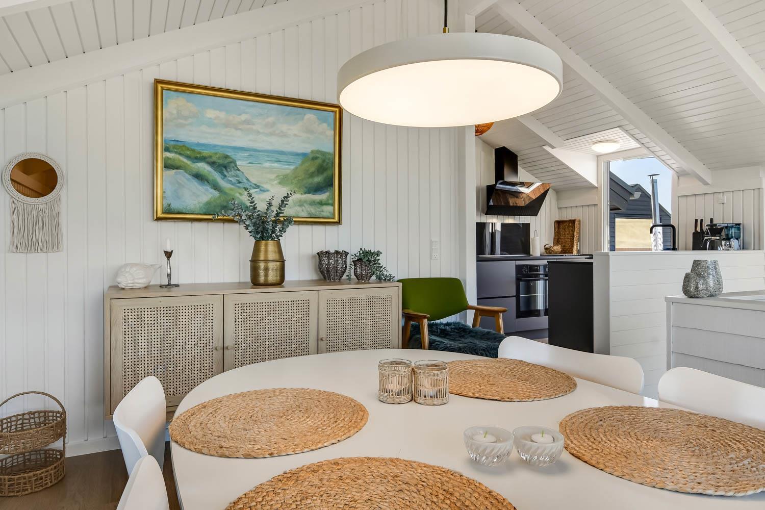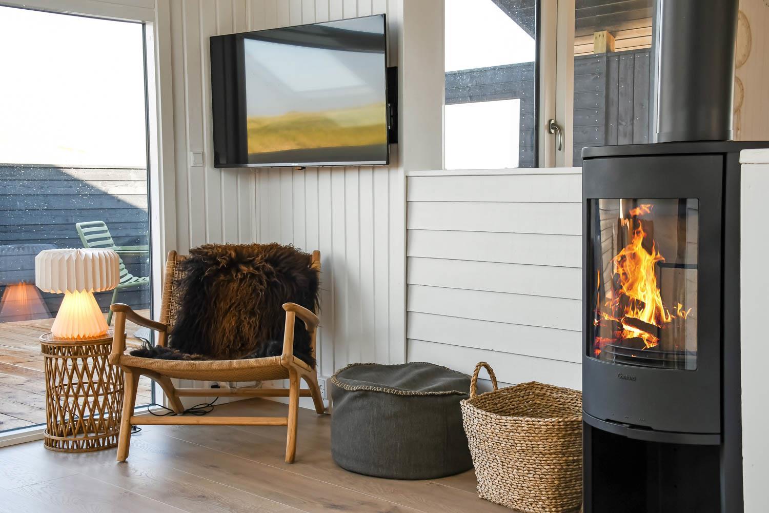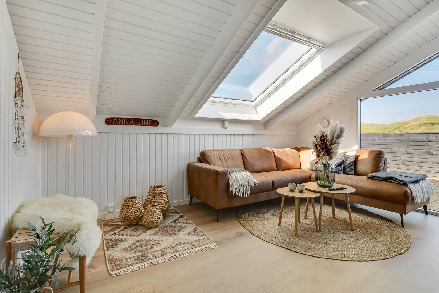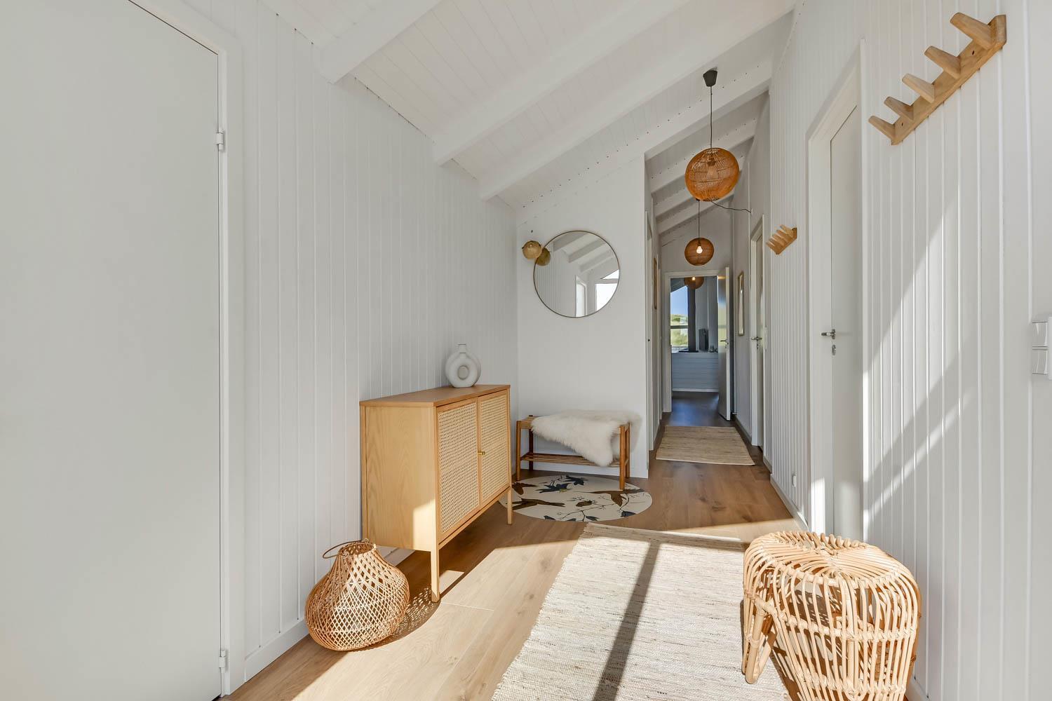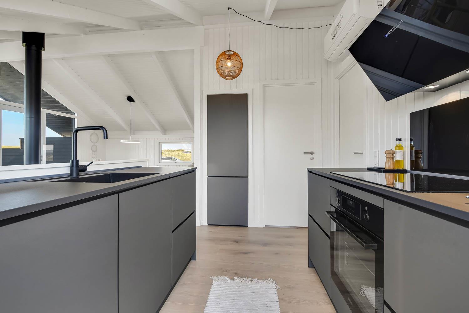 Allerede når bilen rammer grusvejen, med få meter til huset, bliver det klart at husets beliggenhed er noget ganske særligt. Huset er 106 m2 og har 4 dejlige soverum; 1DS + 1DS + 1DS + 2S. Helt nye og gode senge. I hjertet af huset findes et stort veludstyret køkken/alrum med alt i service/køkkengrej og alt i hårde hvidevarer. Det åbne køkken er bl.a med glaskeramisk komfur, emhætte, køle-/fryseskab, mikroovn og opvaskemaskine. Der er linoleumsgulv og udgang til terrassen i køkkenafdelingen. Nyd og bliv betaget af at kigge ud af vinduerne og nyd udsigten til klitterne ved Vesterhavet. Slap af i de flotte lædermøbler. Se TV på husets smart-TV som har indbygget danske og tyske TV-programmer, radio og mulighed for streaming tjenester via Chromecast, brændeovn og varmepumpe som begge sørger for en behagelig varme også i den kolde tid og samtidig er medvirkende til en reduceret forbrugsafregning. Der er linoleumsgulve i hele huset, som også er særdeles rengøringsvenlige. Der er udgang til det unikke terrasse anlæg, hvor der er udendørs vildmarksspa. 2 badeværelser begge med toilet, håndvask, bruser, gulvvarme og klinkegulv. Vaskemaskine er der naturligvis også i huset. Huset lejes ikke ud til ungdomsgrupper og der må max bo 6 personer i huset. Ikke rygerhus. Husdyr ikke tilladt. Obligatorisk slutrengøring