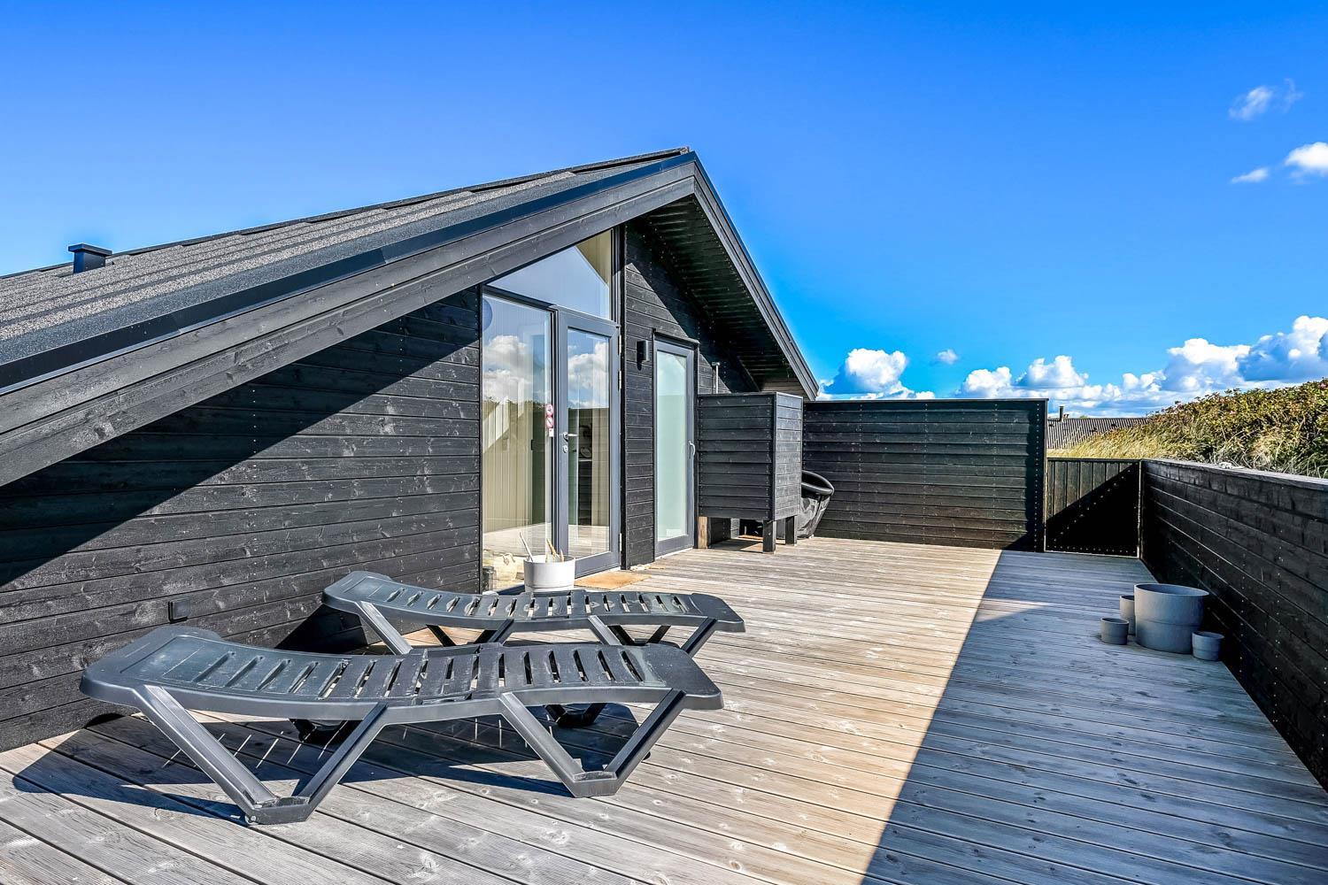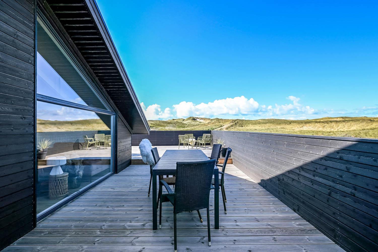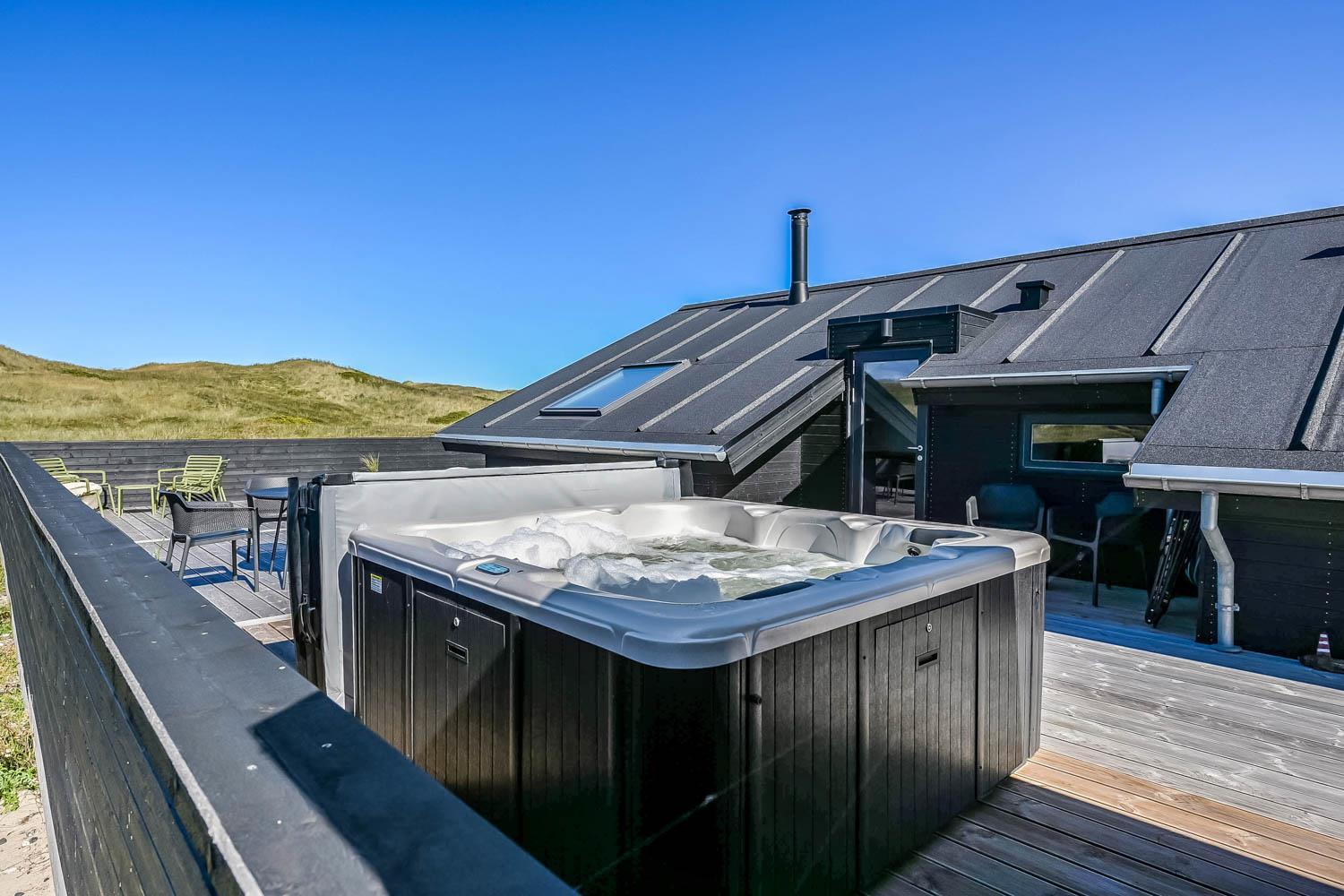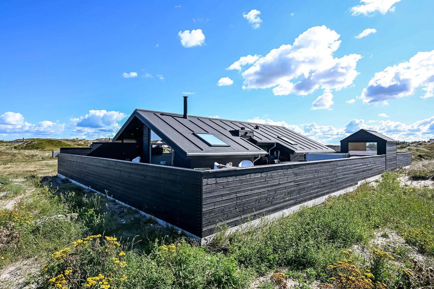 Fuldstændig unikt og fantastisk beliggende, nyrenoveret luksushus. Huset ligger som det sidste hus op mod klitterne ved Vesterhavet og med fantastisk udsigt til klitterne ved Vesterhavet. Et moderne feriehus i træ som er noget ganske særligt. Der er en stor terrasse omkring huset som bla. Er med en udendørs spabad, udendørs bruser, udendørs sauna samt havemøbler, grill og solvogne. Gratis fibernet. Et hus med plads til 6 personer som kan nyde denne luksus. En rolig stund, en plads i solen er blot noget af det huset tilbyder.