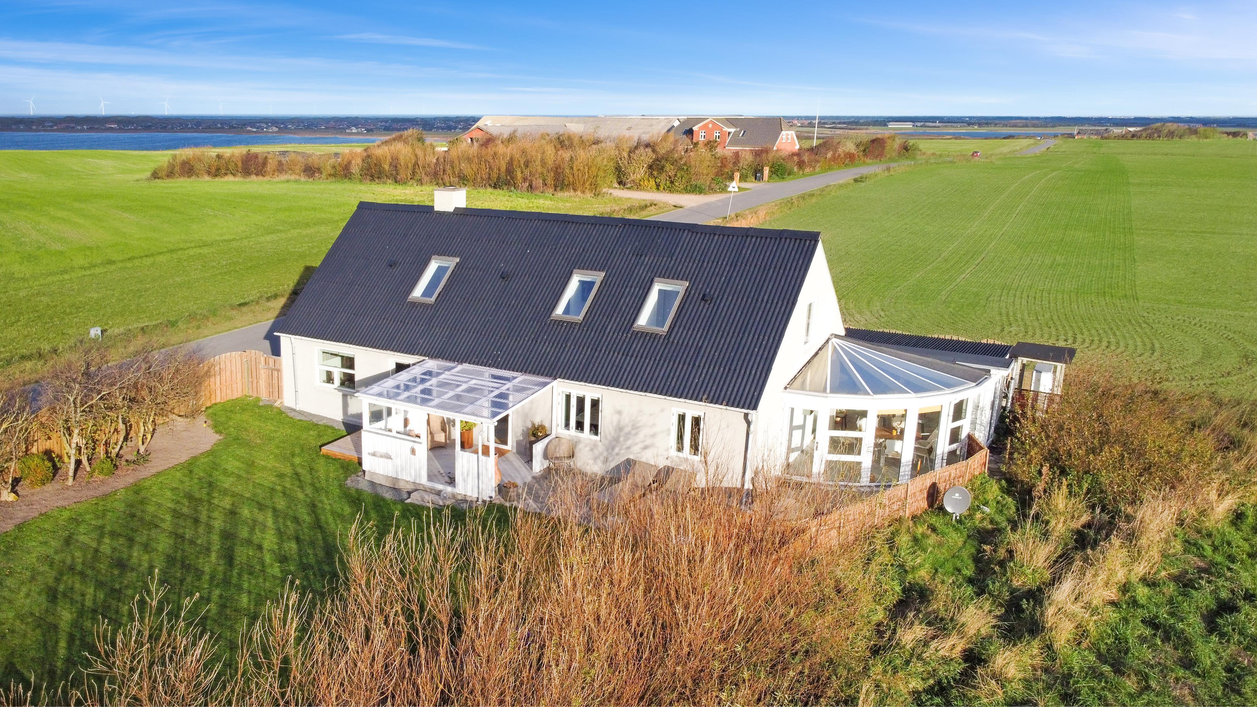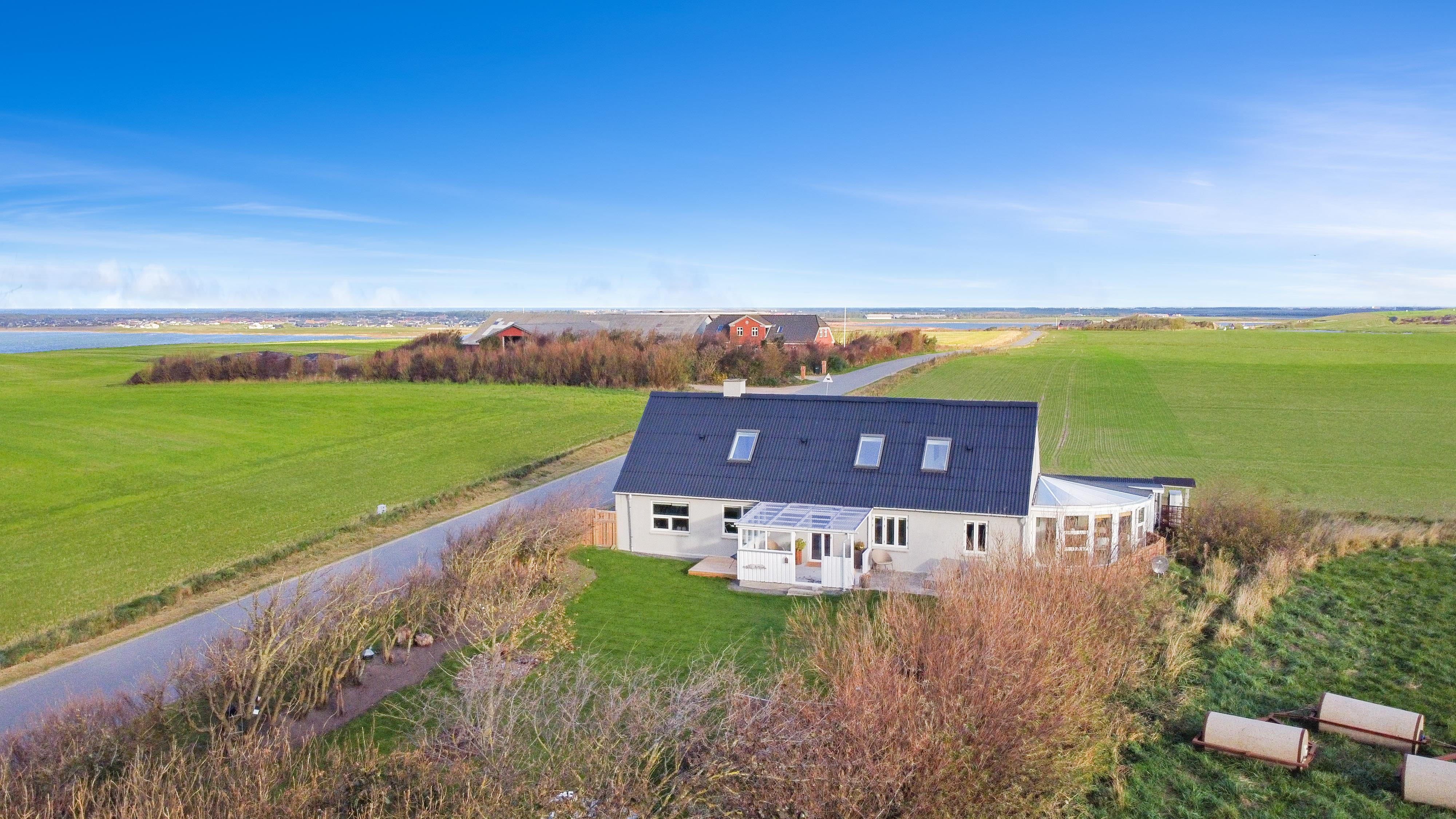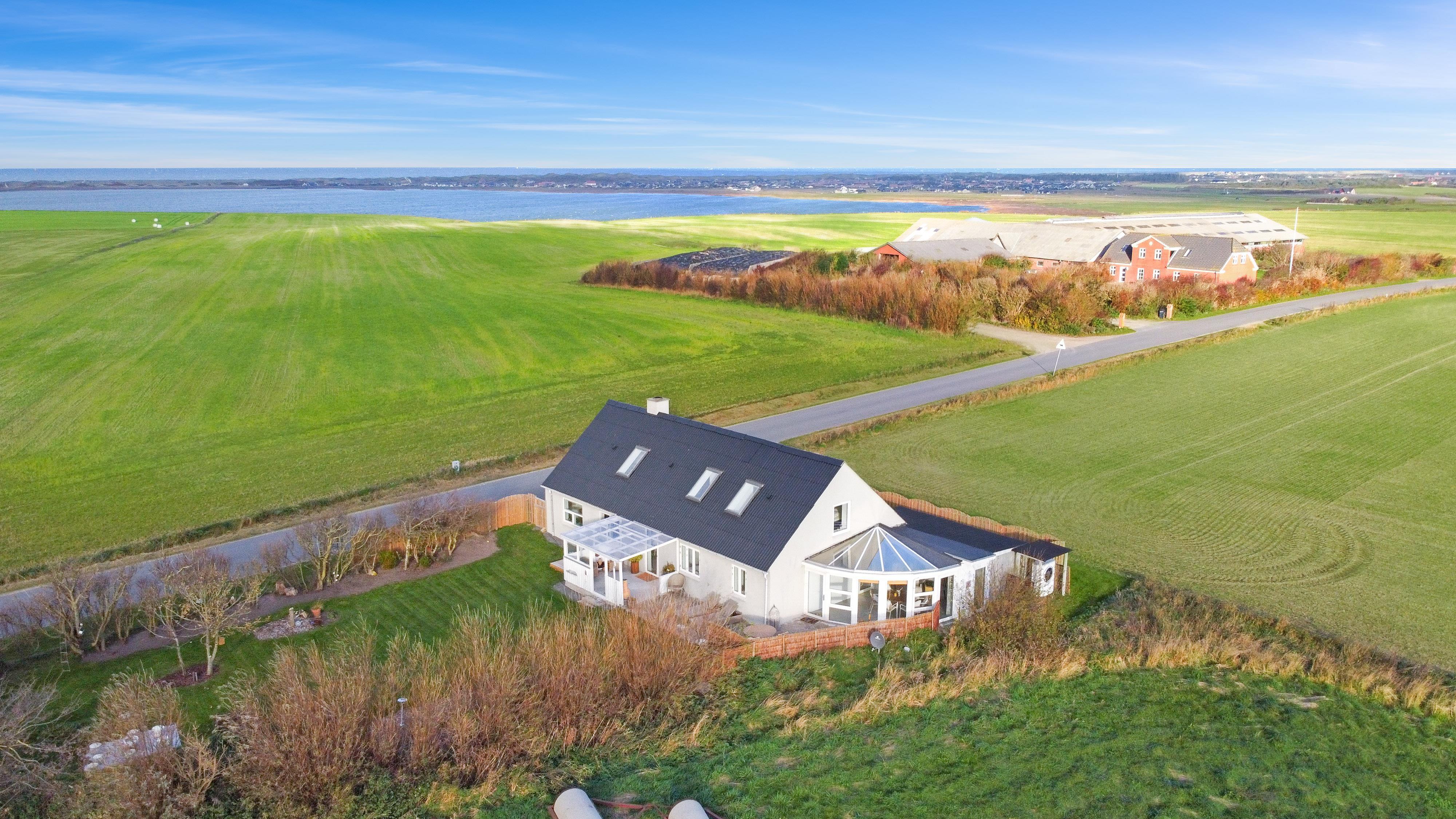 Totalrenoveret landhus til 6 personer. Beliggende på landet med en fantastisk udsigt til Ferring sø og Vesterhavet fra 1. sal. Gratis internet.