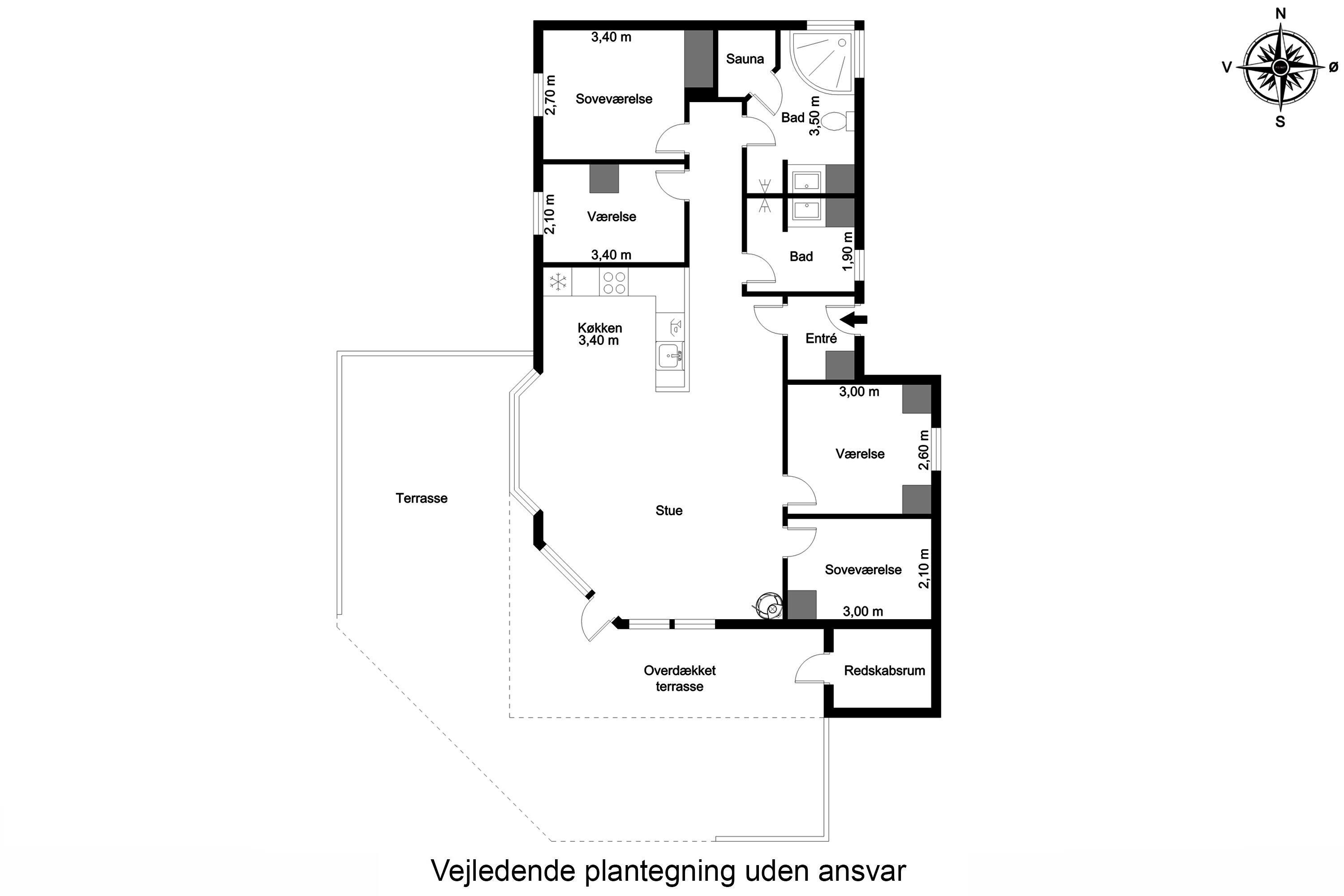 Den dejlige terrasse, både åben og overdækket, giver mulighed for at nyde solen hele dagen. Med havemøbler og gasgrill er det oplagt at spise ude og nyde den friske havluft.