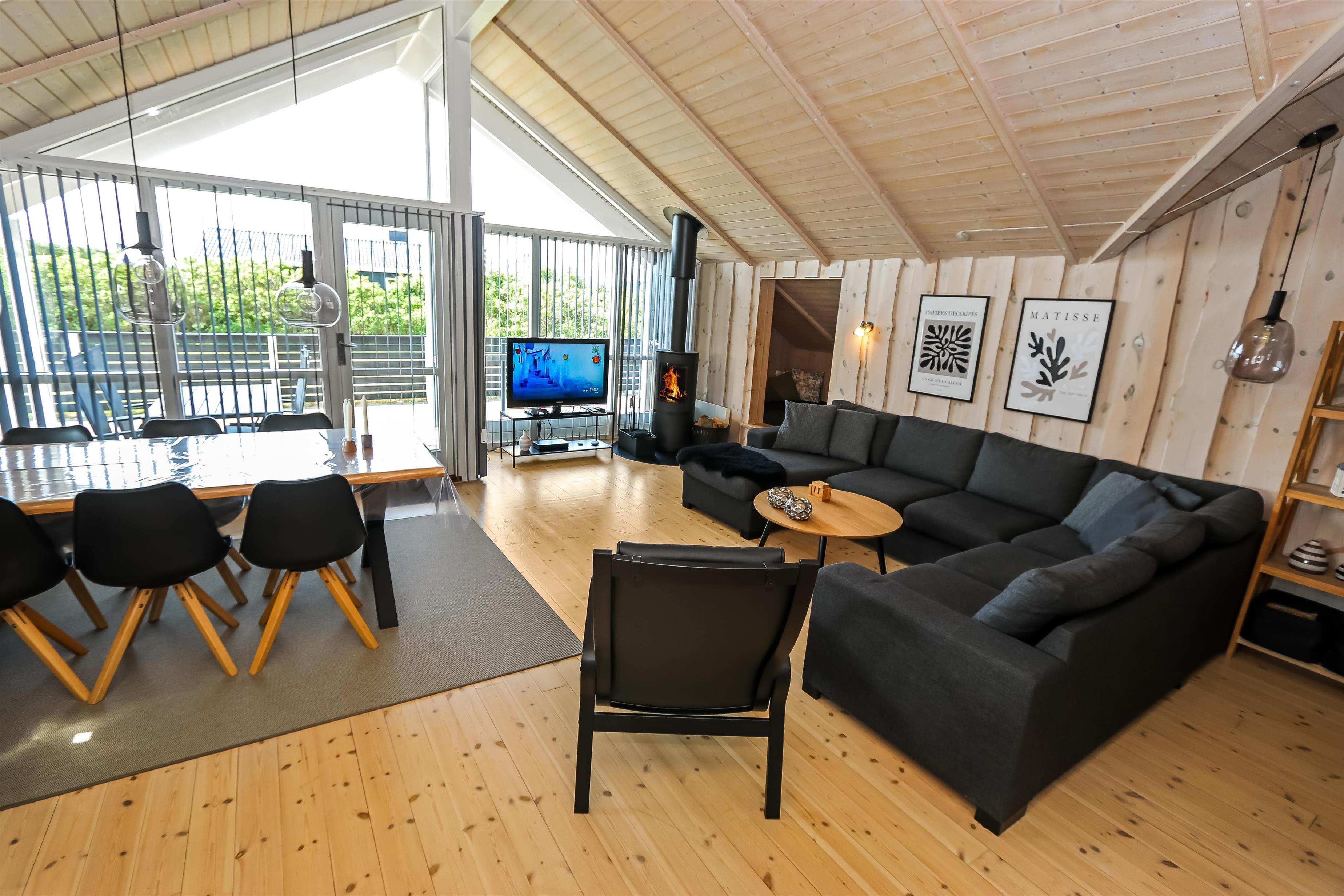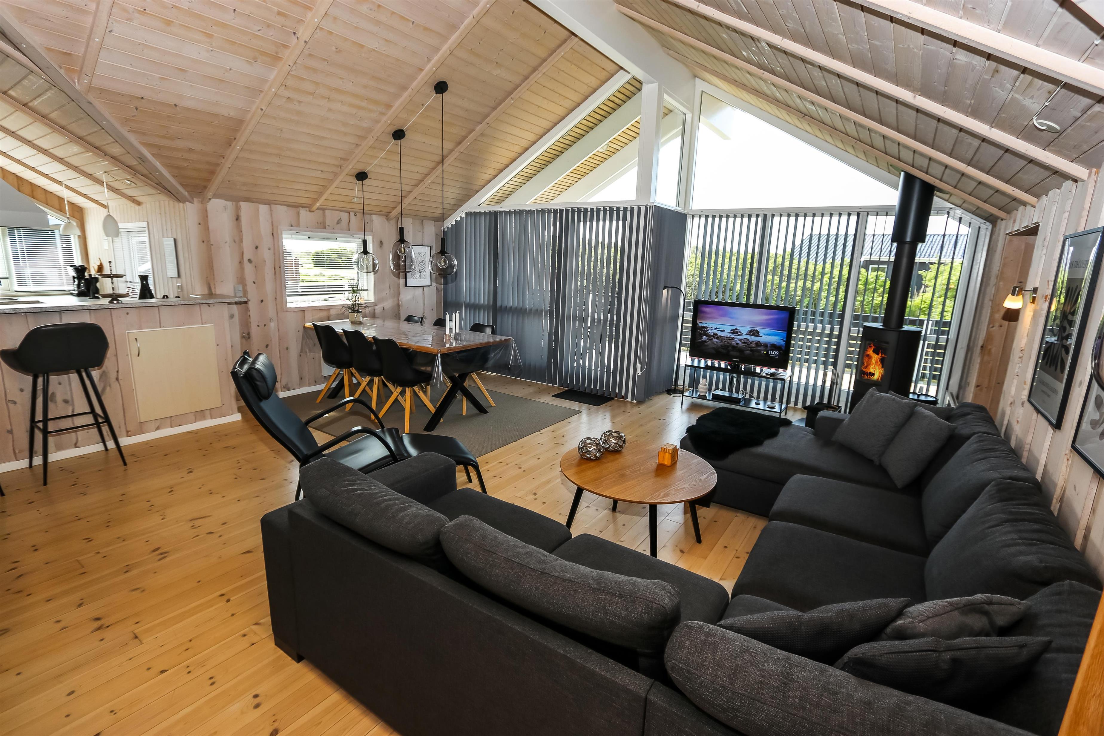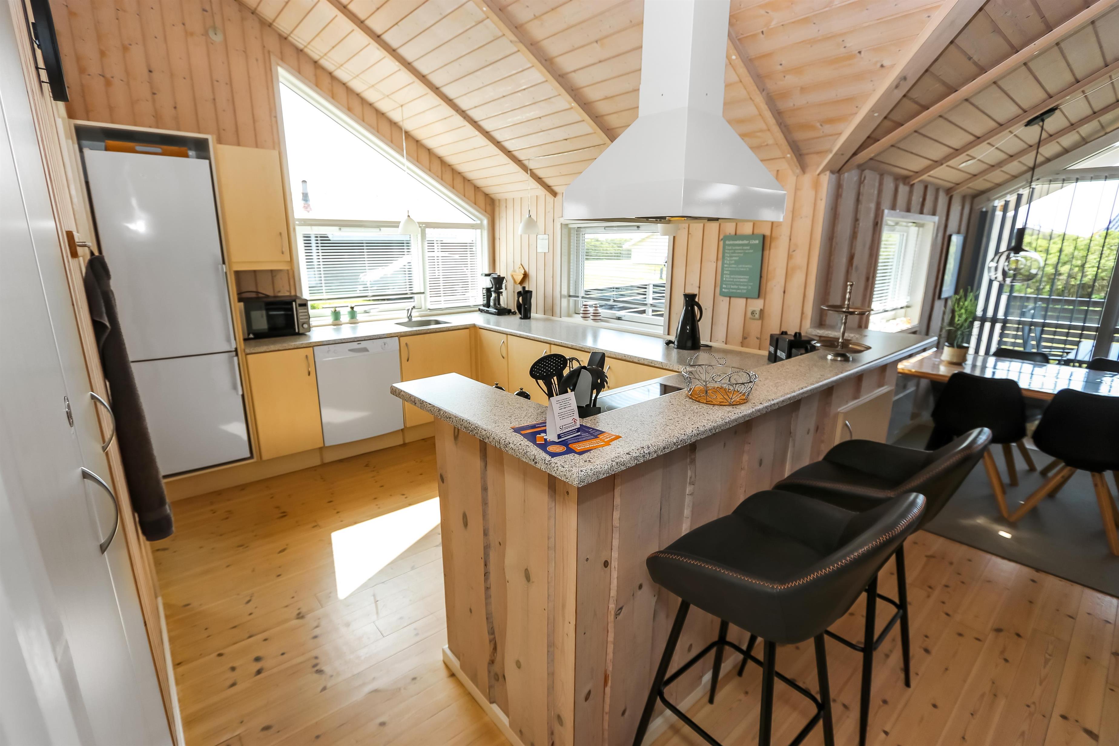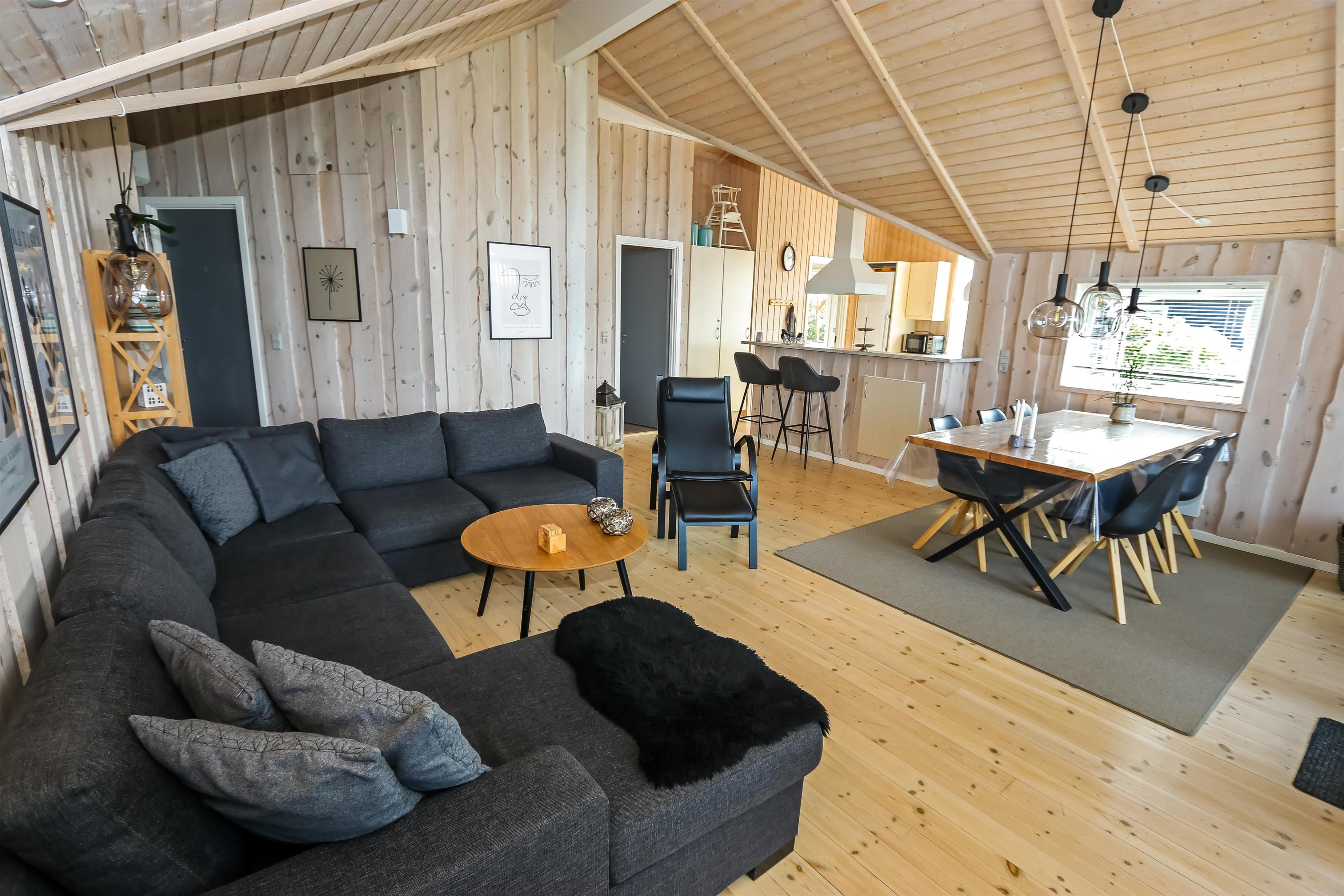 Godt udnyttet feriehus på 96 m2. Huset er flot indrettet og man mærker straks den helt specielle atmosfære. Der er lyse og venlige rum og husets kerne er et stort kombineret opholdsrum og køkkenhjørne. 3 gode soveværelser (1DS, 1DS, 2ES). Bryggers med god plads til overtøj og adgang til huset gæstetoilet med toilet, håndvask og bruser. Opholdsstuen har tv med tyske og danske kanaler, DVD/CD/ radio, hyggelig brændeovn og flotte kvalitets lædermøbler.Der er installeret varmepumpe i huset og det betyder at du som gæst kan spare en del på din elvarmeregning - varmepumpen leverer op til 4 gange så meget effekt som den bruger, det betyder at for hver kilowatt-time pumpen bruger yder den varme svarende til ca. 4 kW energien udnyttes dermed langt bedre. Køkkenhjørnet er veludstyret med bl.a. opvaskemaskine, keramisk kogeplade, indbygningsovn og køle/fryseskab samt alt i service og køkkengrej. Der er et Indbydende, stort og moderne badeværelse med spa, direkte adgang til sauna, bruseniche, toilet, gulvvarme. Vaskemaskine / tørretumbler. Der er barneseng og højstol til de mindste. Rygning er ikke tilladt i huset. Husdyr er ikke tilladt. En sjælden feriebolig i høj kvalitet, med mange flotte detaljer.