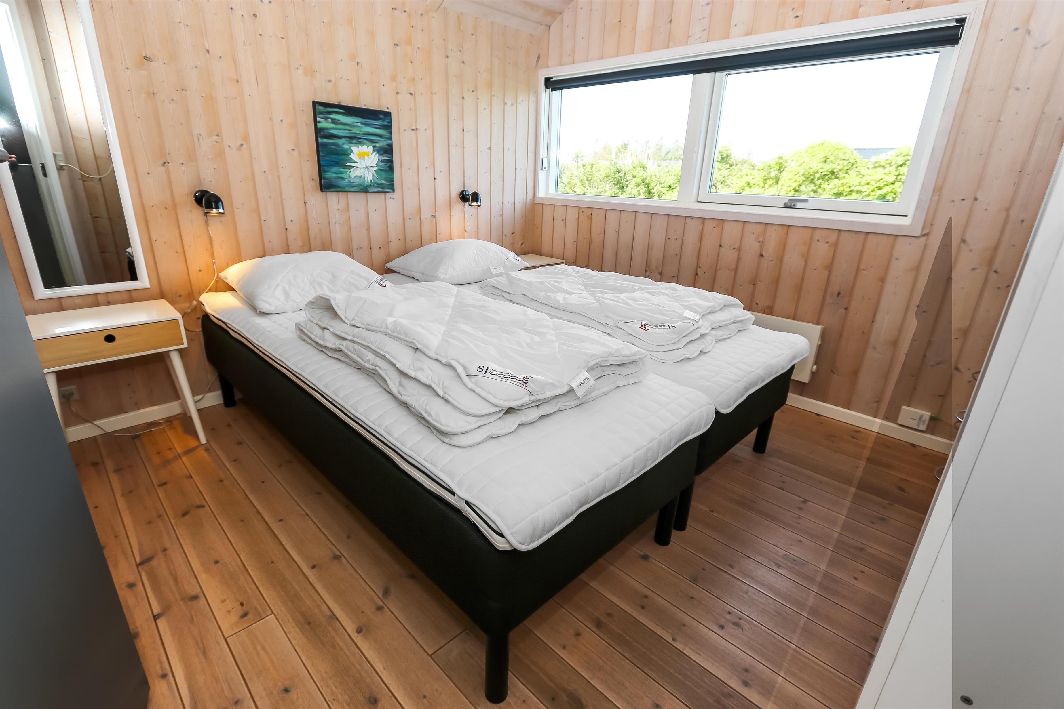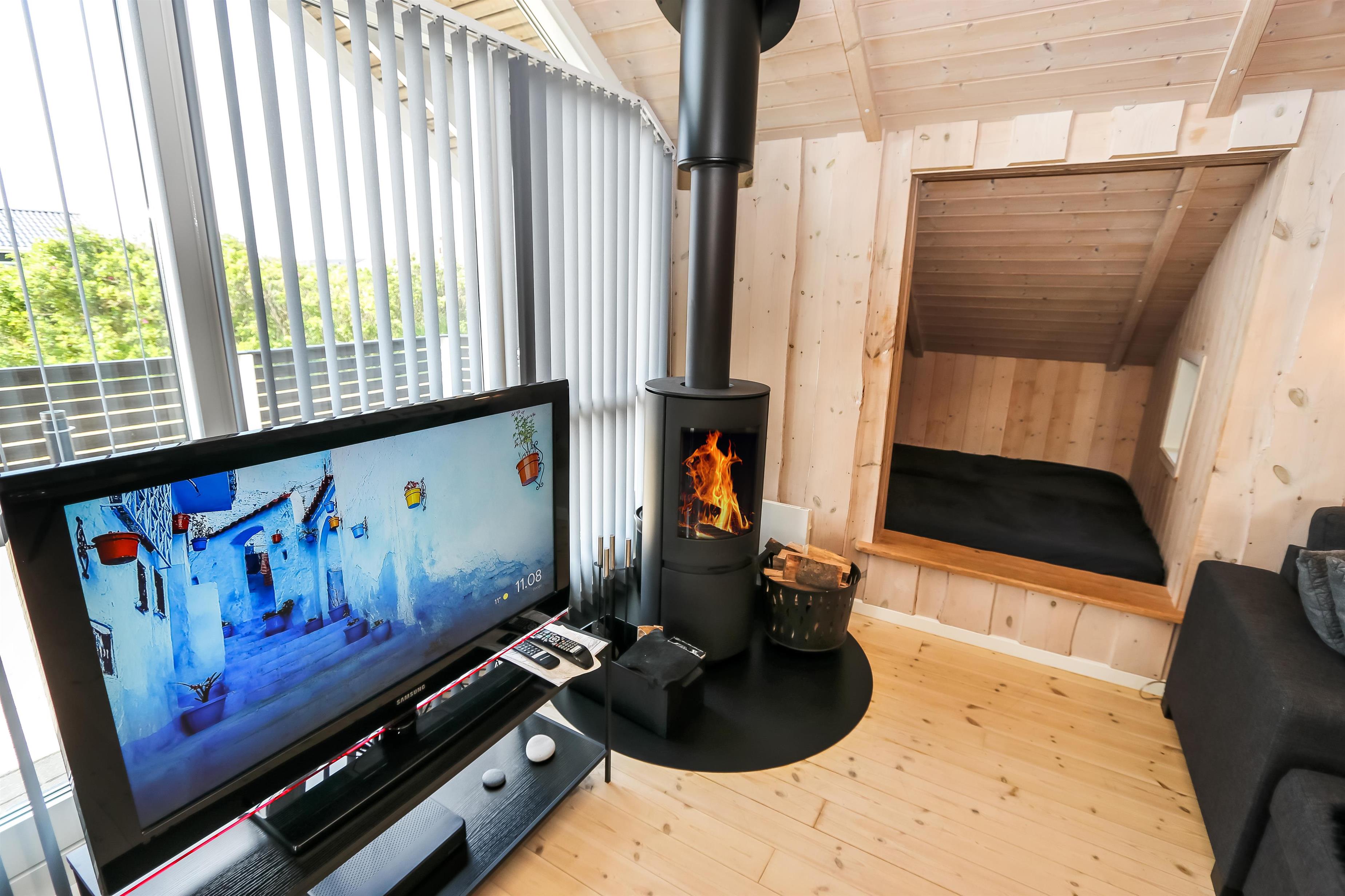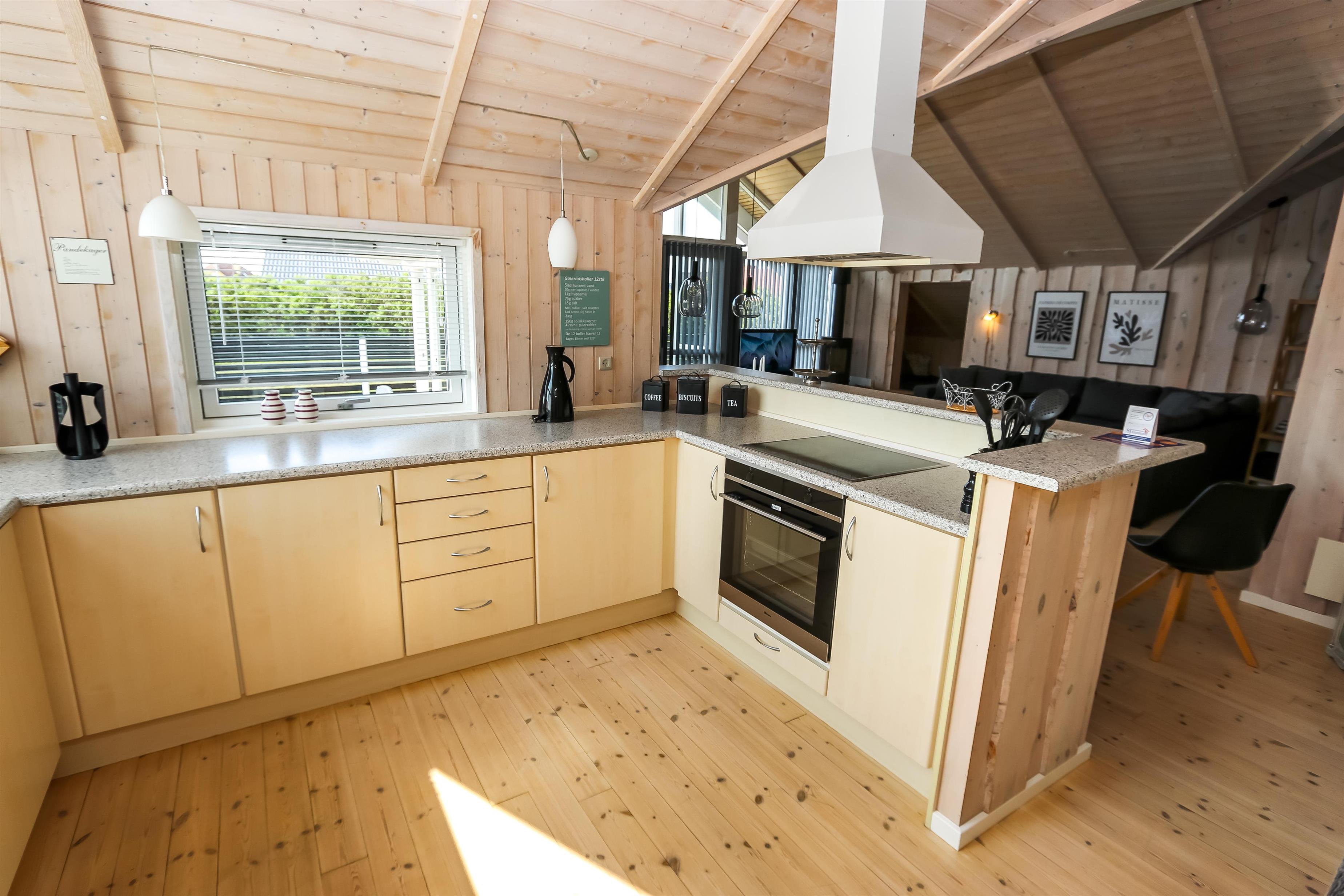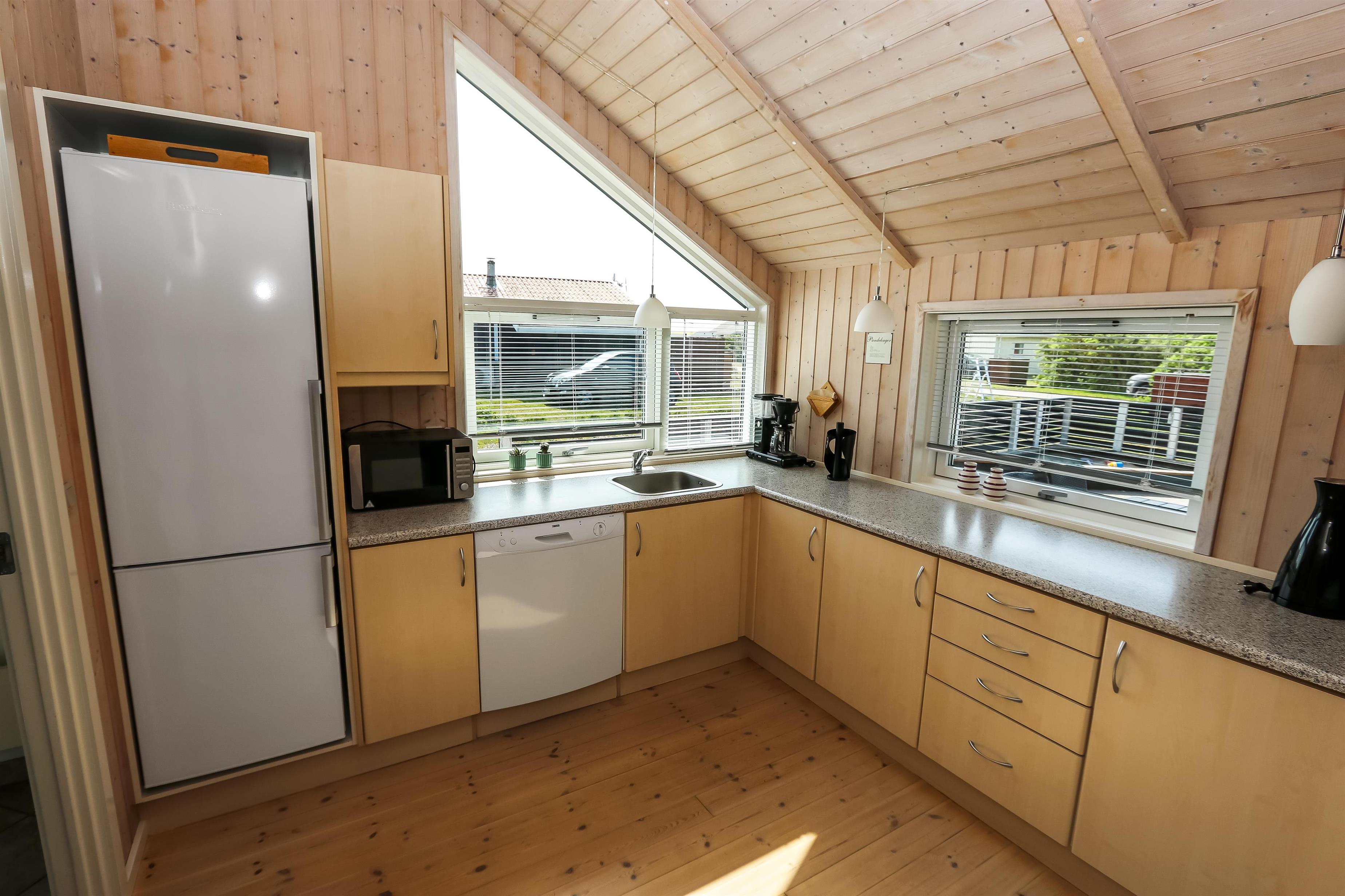 Godt udnyttet feriehus på 96 m2. Huset er flot indrettet og man mærker straks den helt specielle atmosfære. Der er lyse og venlige rum og husets kerne er et stort kombineret opholdsrum og køkkenhjørne. 3 gode soveværelser (1DS, 1DS, 2ES). Bryggers med god plads til overtøj og adgang til huset gæstetoilet med toilet, håndvask og bruser. Opholdsstuen har tv med tyske og danske kanaler, DVD/CD/ radio, hyggelig brændeovn og flotte kvalitets lædermøbler.Der er installeret varmepumpe i huset og det betyder at du som gæst kan spare en del på din elvarmeregning - varmepumpen leverer op til 4 gange så meget effekt som den bruger, det betyder at for hver kilowatt-time pumpen bruger yder den varme svarende til ca. 4 kW energien udnyttes dermed langt bedre. Køkkenhjørnet er veludstyret med bl.a. opvaskemaskine, keramisk kogeplade, indbygningsovn og køle/fryseskab samt alt i service og køkkengrej. Der er et Indbydende, stort og moderne badeværelse med spa, direkte adgang til sauna, bruseniche, toilet, gulvvarme. Vaskemaskine / tørretumbler. Der er barneseng og højstol til de mindste. Rygning er ikke tilladt i huset. Husdyr er ikke tilladt. En sjælden feriebolig i høj kvalitet, med mange flotte detaljer.