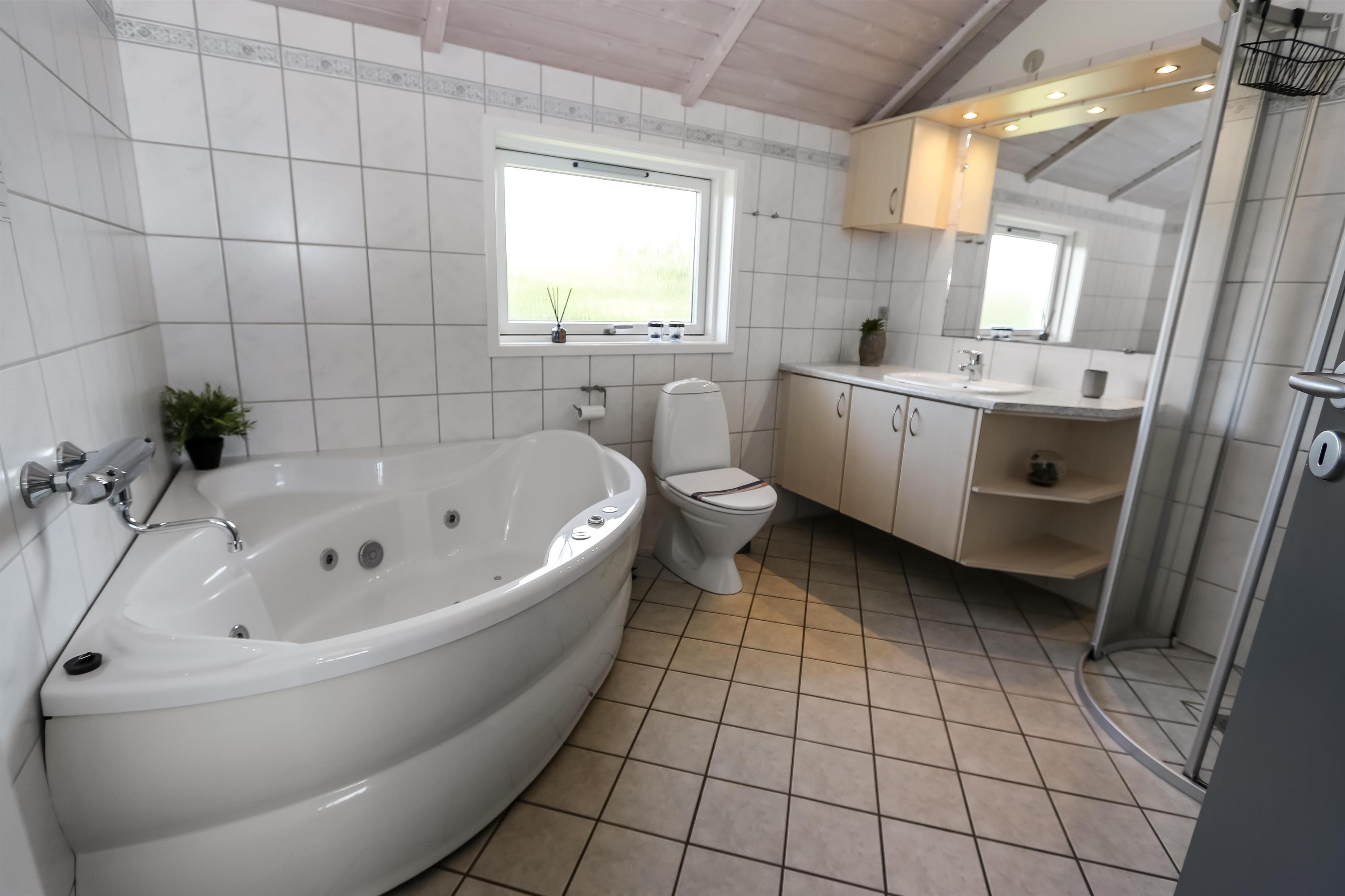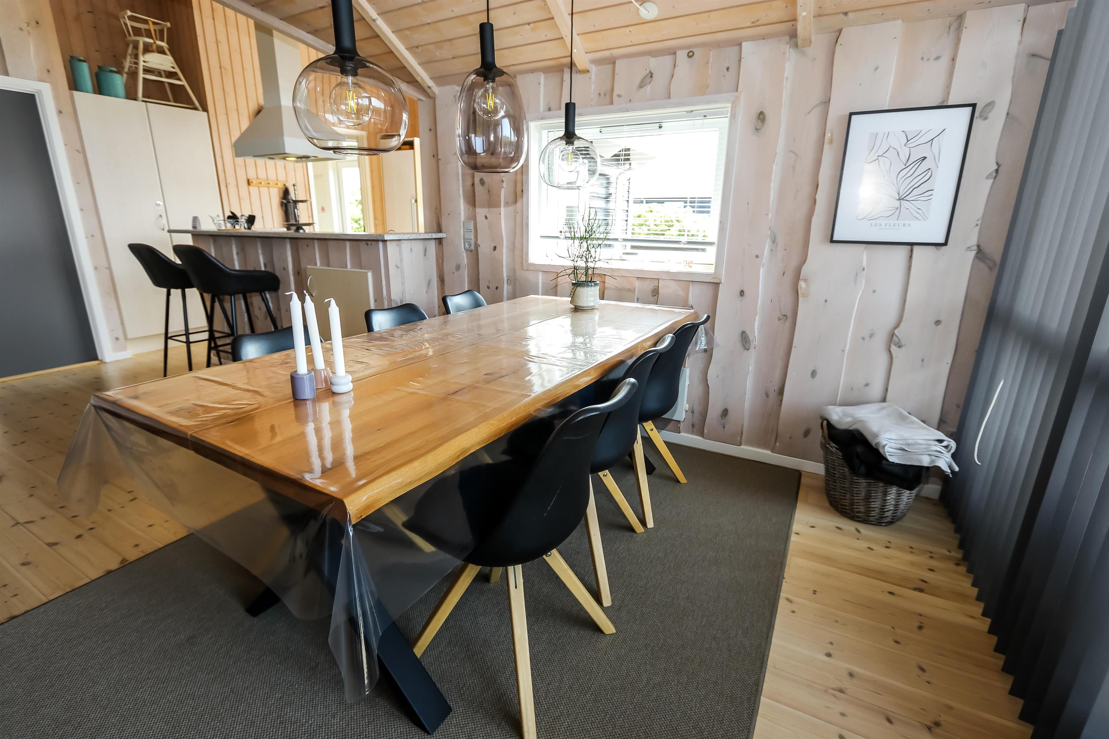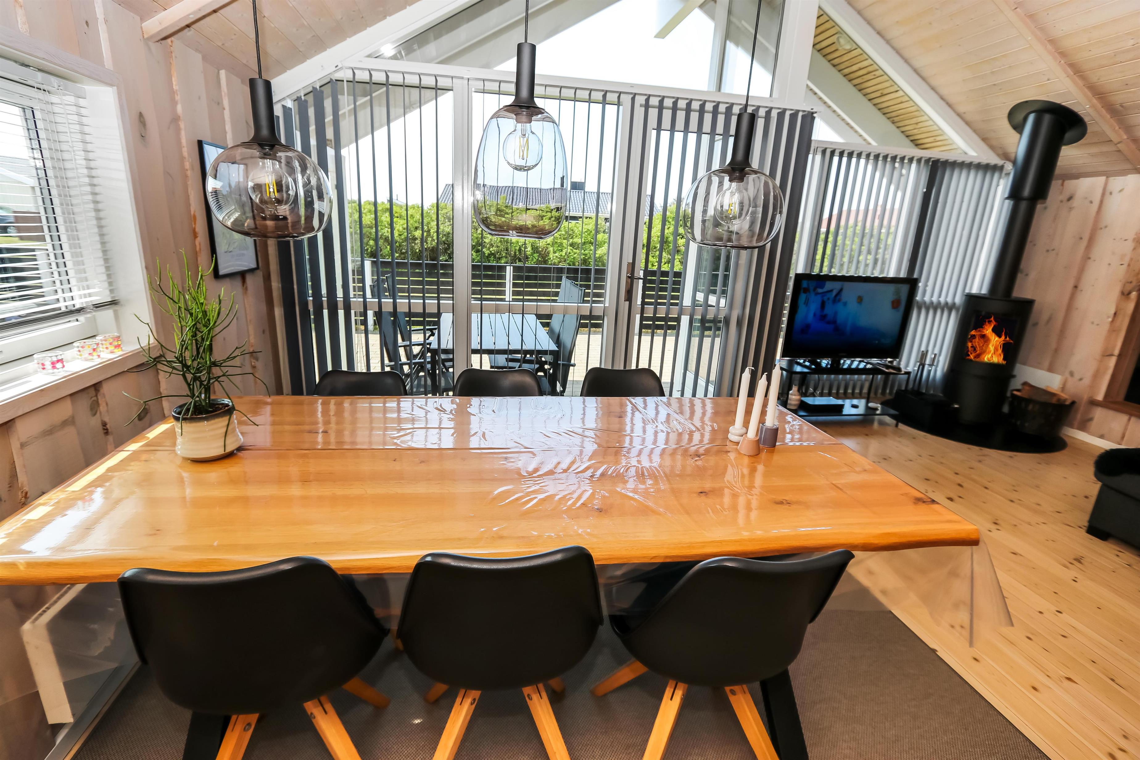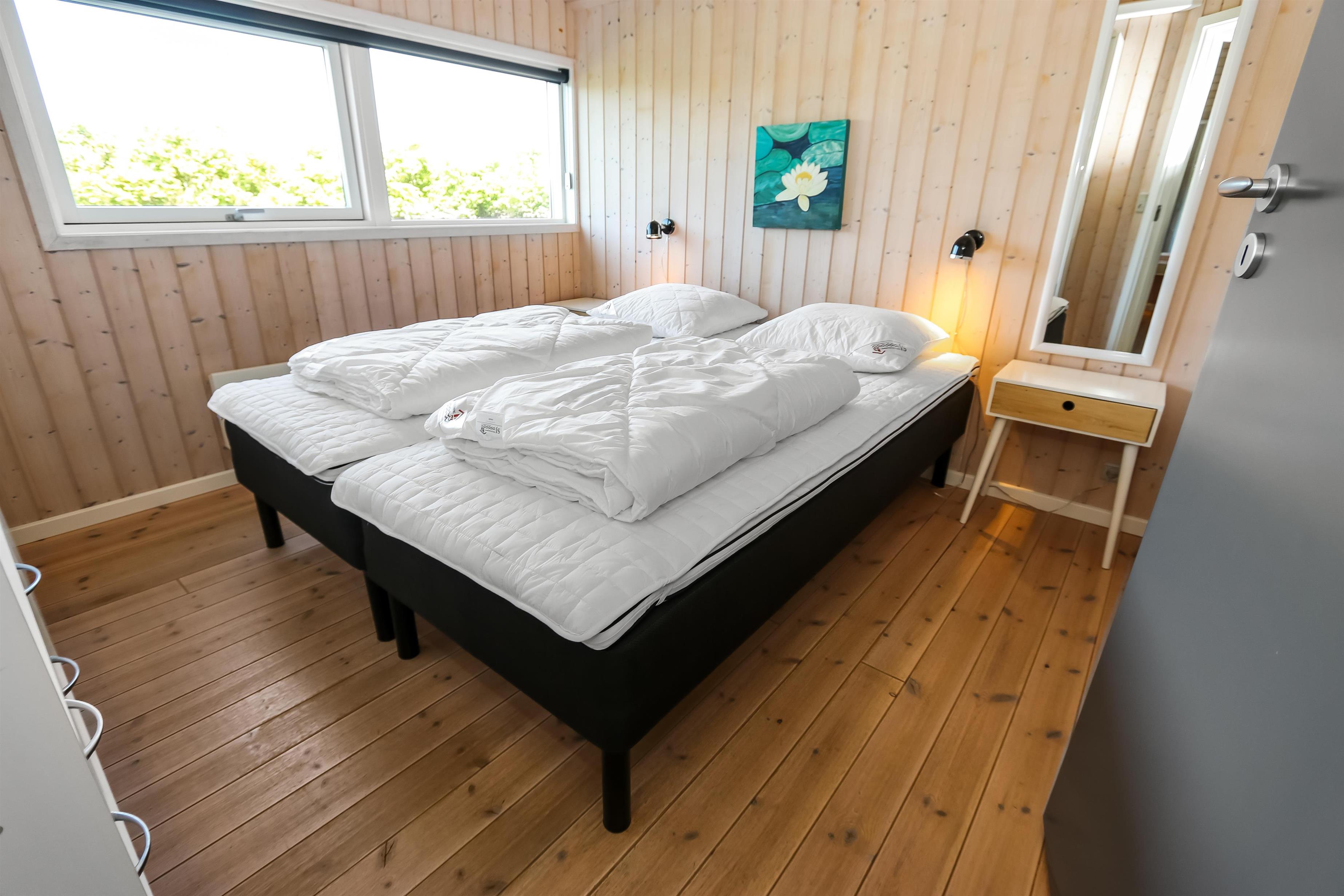 Godt udnyttet feriehus på 96 m2. Huset er flot indrettet og man mærker straks den helt specielle atmosfære. Der er lyse og venlige rum og husets kerne er et stort kombineret opholdsrum og køkkenhjørne. 3 gode soveværelser (1DS, 1DS, 2ES). Bryggers med god plads til overtøj og adgang til huset gæstetoilet med toilet, håndvask og bruser. Opholdsstuen har tv med tyske og danske kanaler, DVD/CD/ radio, hyggelig brændeovn og flotte kvalitets lædermøbler.Der er installeret varmepumpe i huset og det betyder at du som gæst kan spare en del på din elvarmeregning - varmepumpen leverer op til 4 gange så meget effekt som den bruger, det betyder at for hver kilowatt-time pumpen bruger yder den varme svarende til ca. 4 kW energien udnyttes dermed langt bedre. Køkkenhjørnet er veludstyret med bl.a. opvaskemaskine, keramisk kogeplade, indbygningsovn og køle/fryseskab samt alt i service og køkkengrej. Der er et Indbydende, stort og moderne badeværelse med spa, direkte adgang til sauna, bruseniche, toilet, gulvvarme. Vaskemaskine / tørretumbler. Der er barneseng og højstol til de mindste. Rygning er ikke tilladt i huset. Husdyr er ikke tilladt. En sjælden feriebolig i høj kvalitet, med mange flotte detaljer.